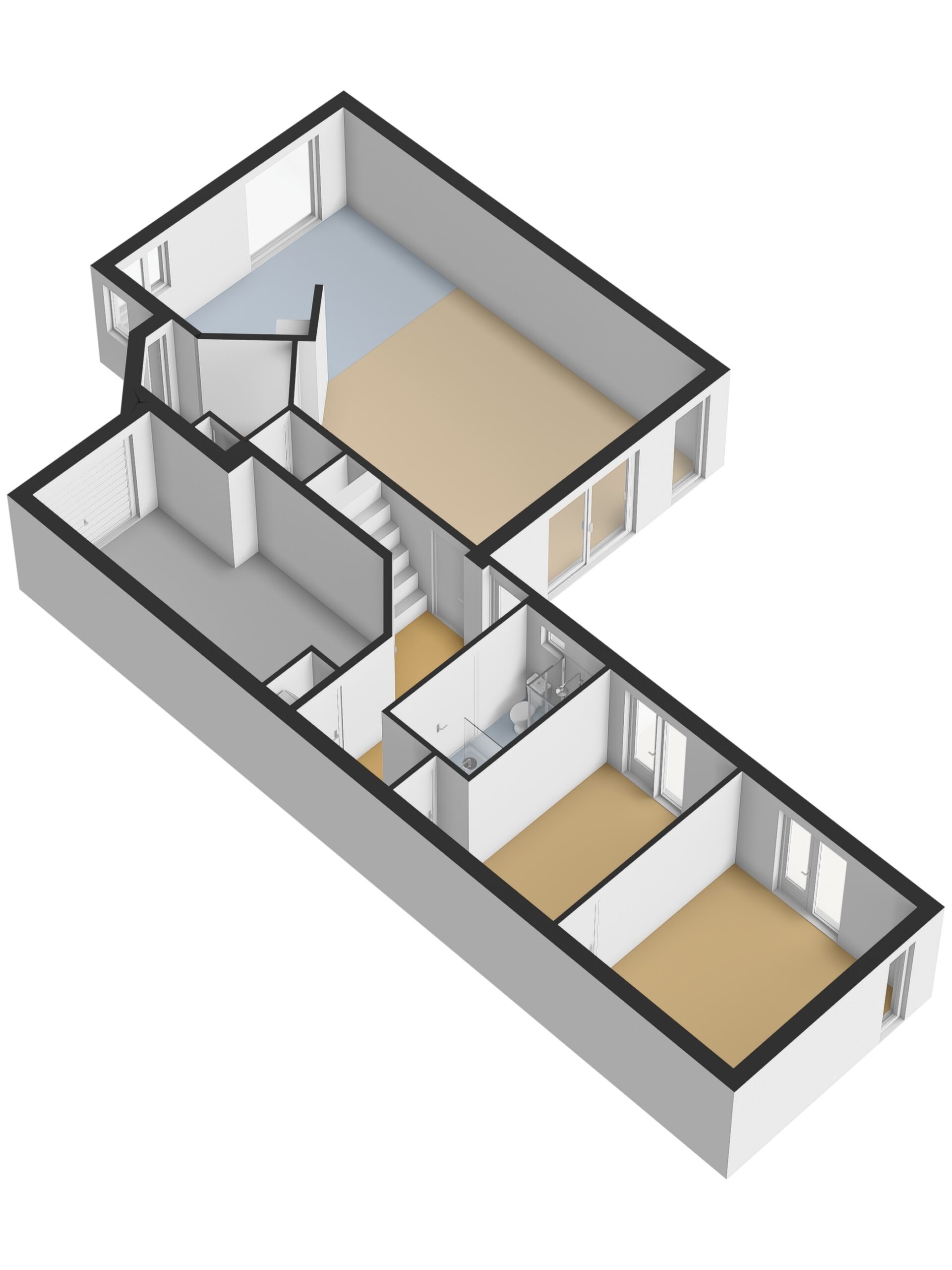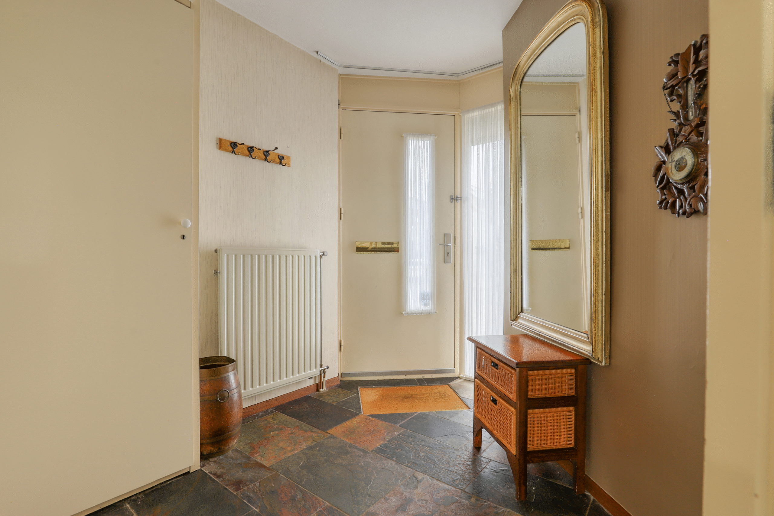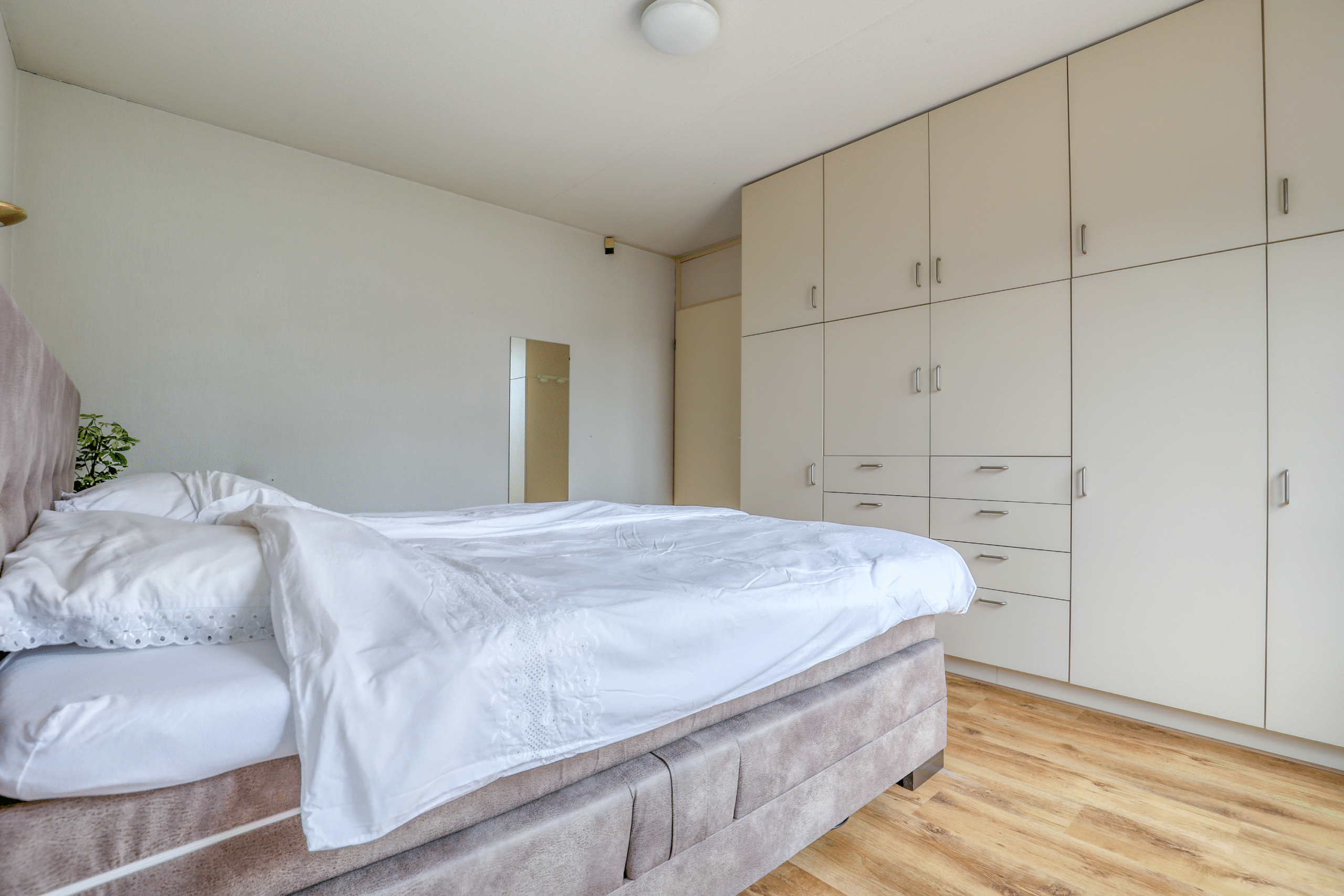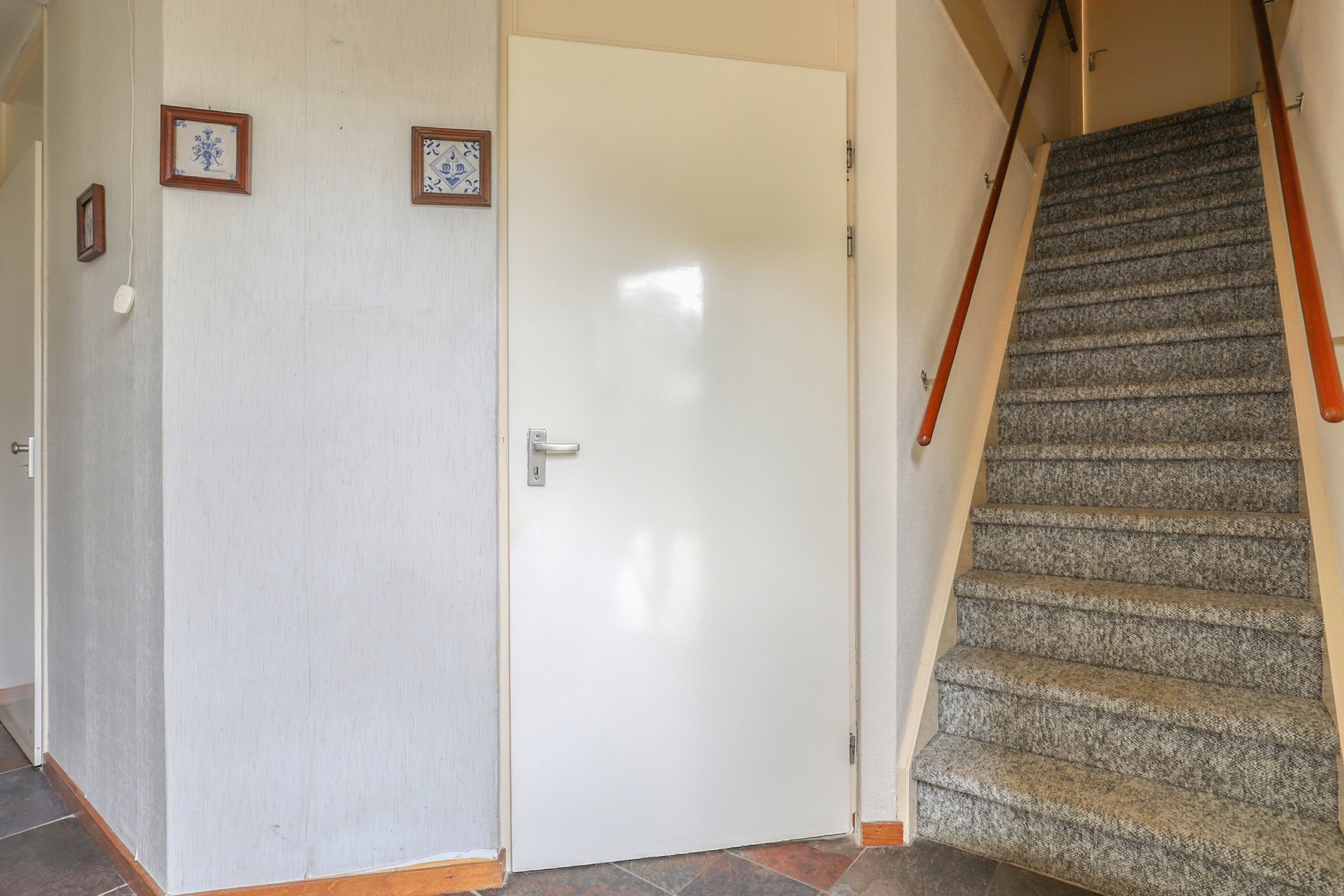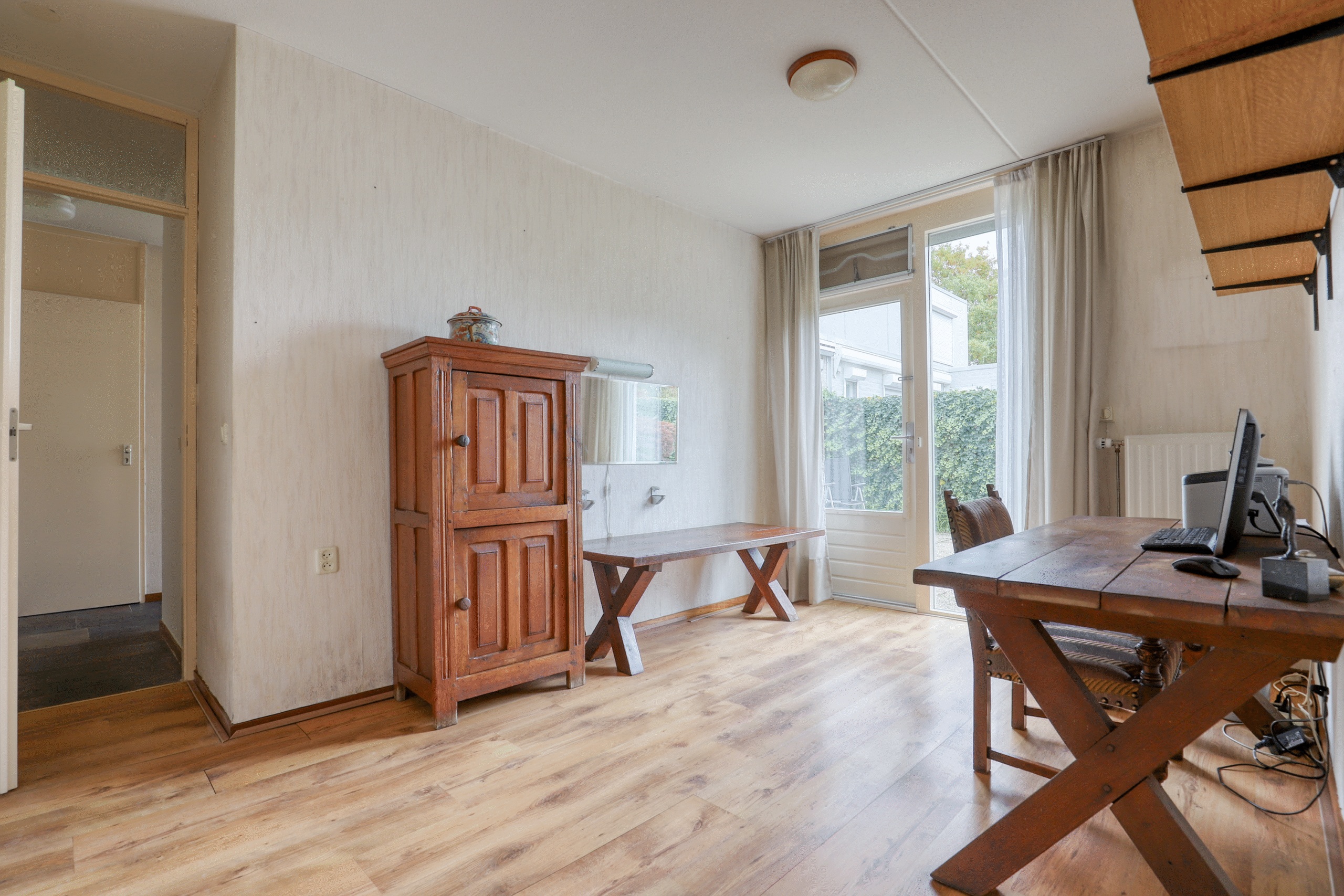 Via de vaste trap bereik je de eerste verdieping met een derde slaapkamer, voorzien van wastafelmeubel. Deze ruimte is perfect te gebruiken als logeerkamer, werkkamer of hobbyruimte.
