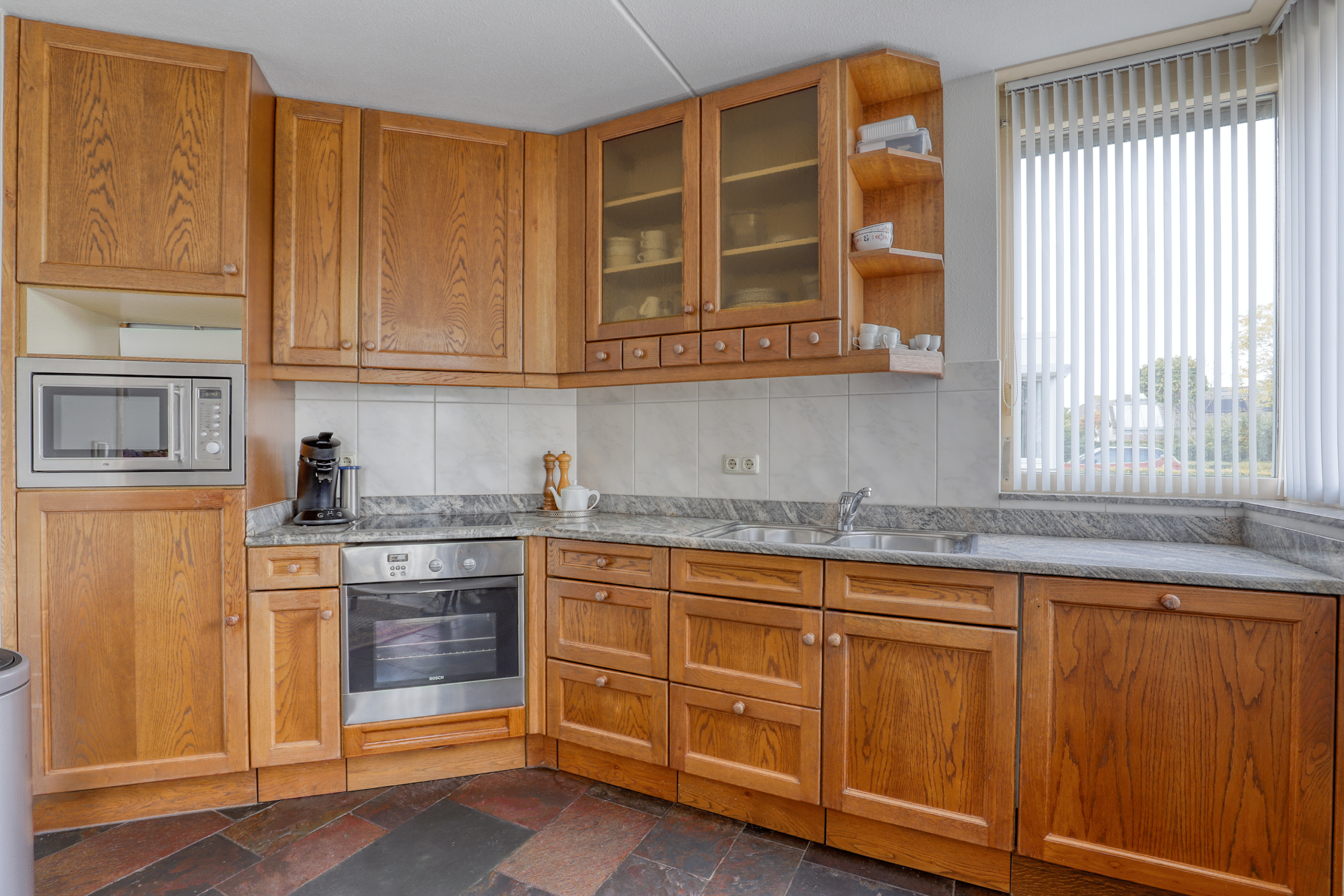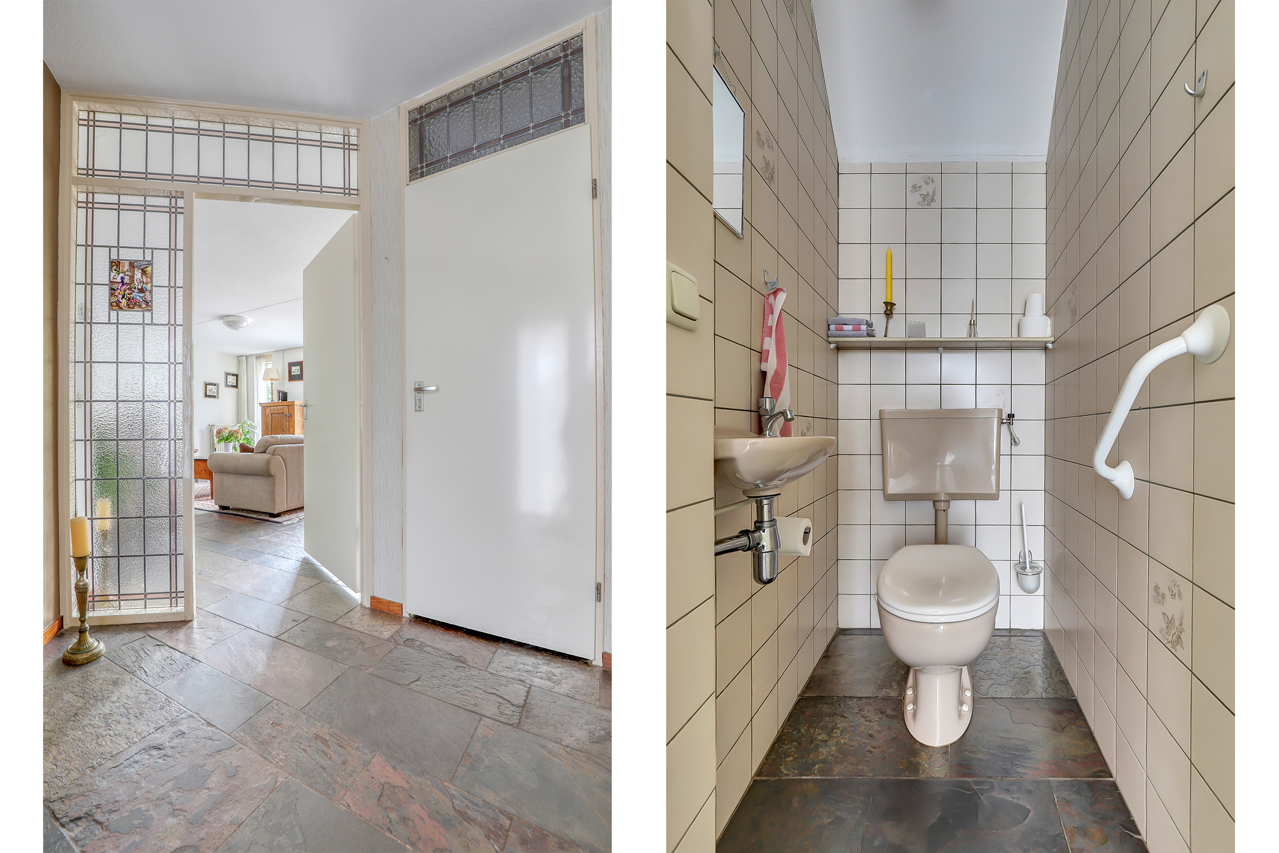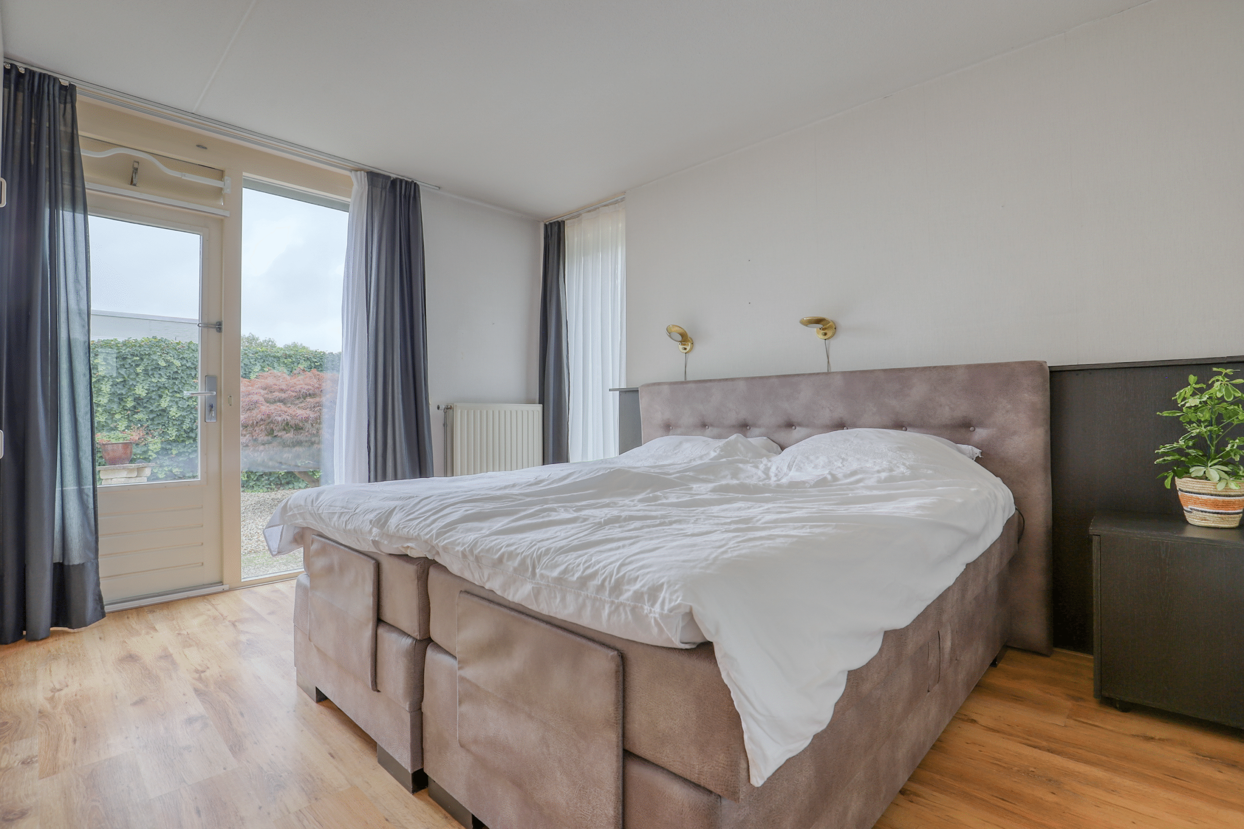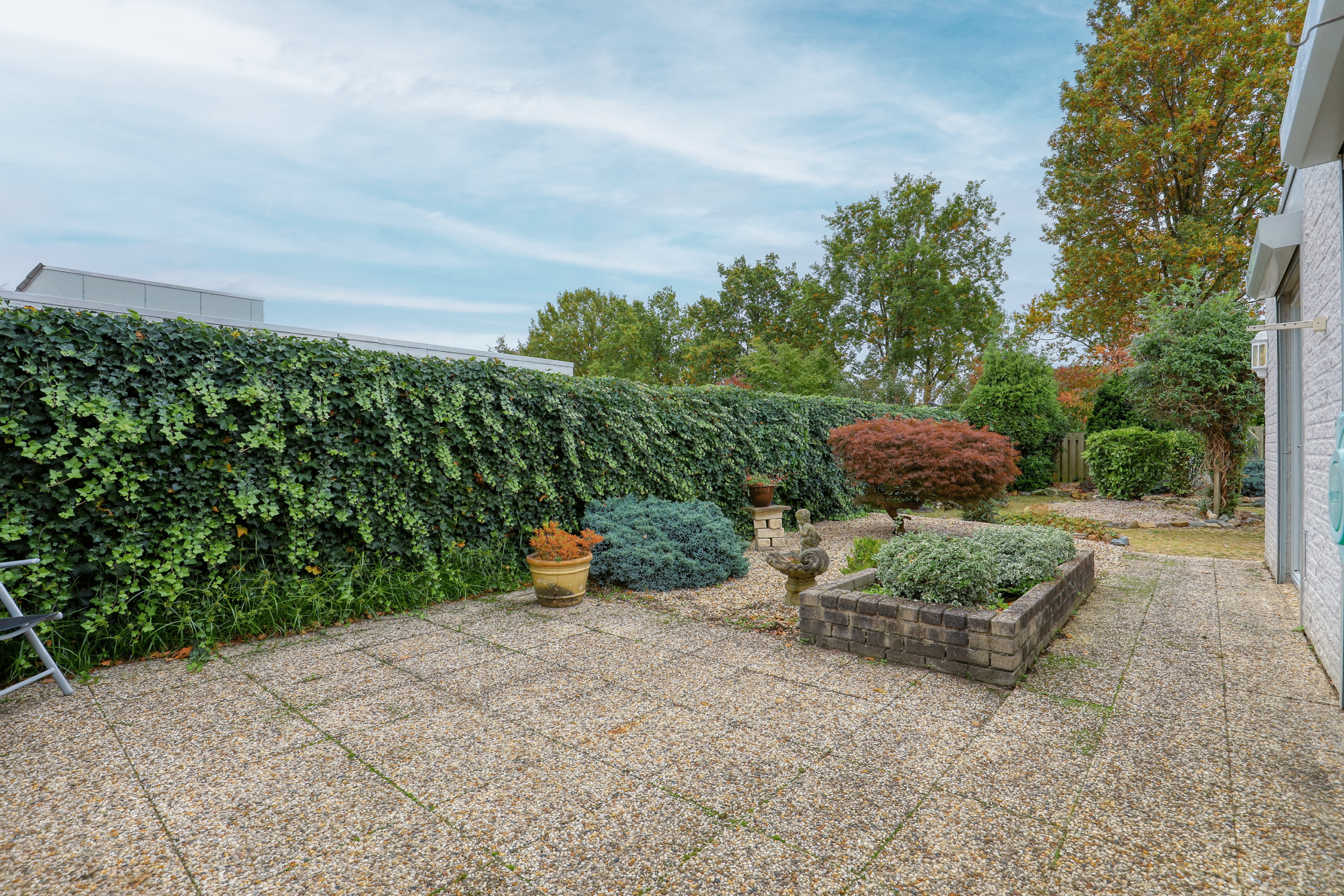 De woning is praktisch ingedeeld en volledig ingericht op gelijkvloers wonen. Vanuit de overdekte entree kom je in de ruime hal met meterkast (met klikgroepen en glasvezelaansluiting) en toilet met fontein. Vanuit de hal is er toegang naar de ruime woonkamer met kunststof schuifpui (geplaatst in 2020), welke toegang biedt tot het zonnige terras in de achtertuin. De halfopen keuken beschikt over diverse inbouwapparatuur, o.a. een dubbele spoelbak, oven, magnetron, koelkast en keramische kookplaat. De woonkamer, keuken en gangen zijn voorzien van een leistenen vloer. Vanuit de gang is er een vaste trapopgang naar de eerste verdieping, deur naar de achtertuin en toegang tot de badkamer, slaapkamers en de inpandige garage. De twee ruime slaapkamers beschikken beide over een laminaatvloer, toegangsdeur naar de achtertuin en (deels elektrische) rolluiken. De badkamer beschikt over een douchecabine, inloopdouche (2015), toilet, dubbele wastafelmeubel, verwarming en is geheel betegeld in een lichte kleurstelling. Tevens is er aan de voorzijde van de woning een ruime inpandige garage gesitueerd, voorzien van verwarming, elektrische segmentdeur naar de oprit, tegelvloer en opstelplaats voor wasmachine en droger. De CV- ketel (AWB 2003) is netjes in een vaste kast gesitueerd.