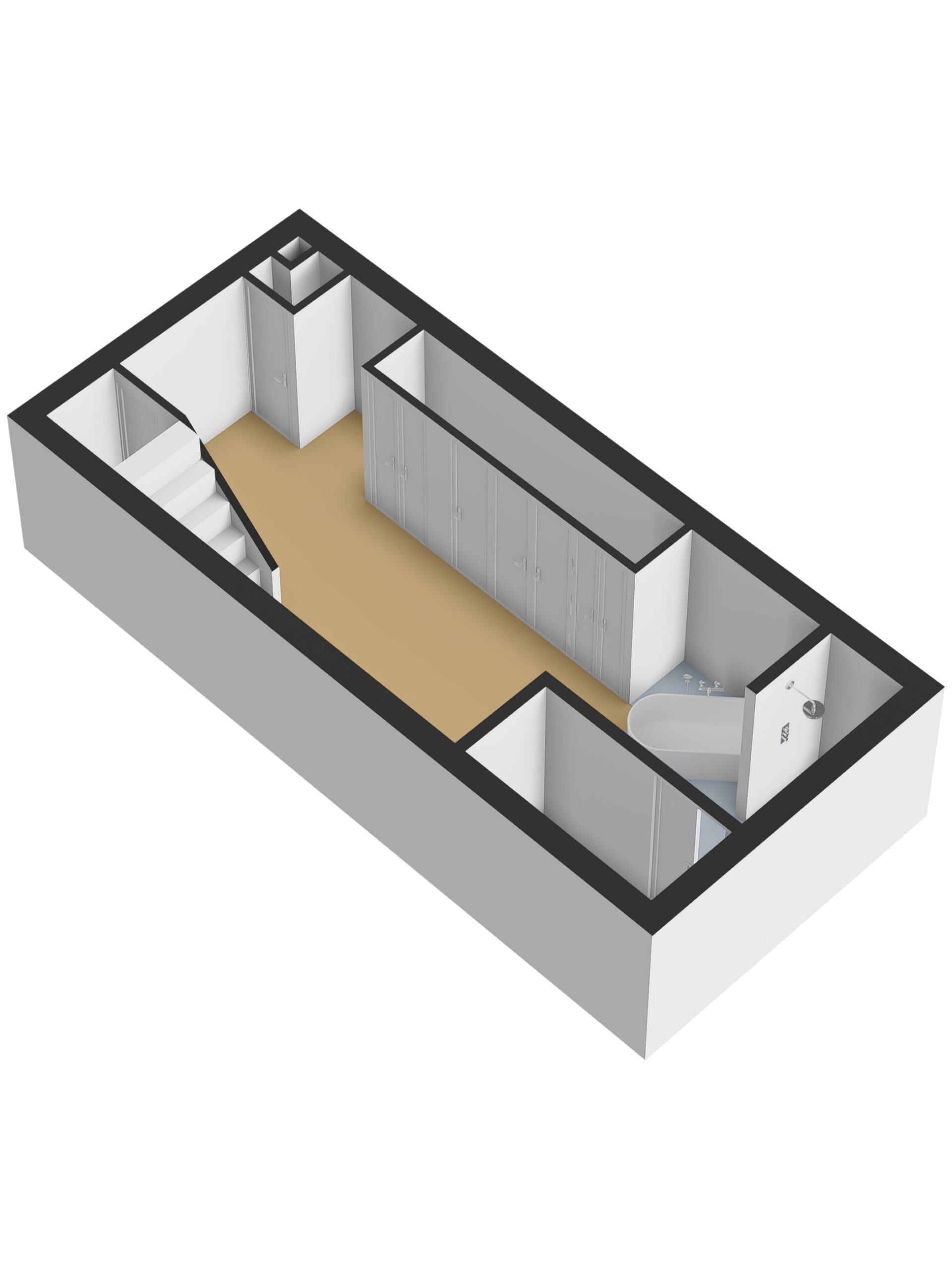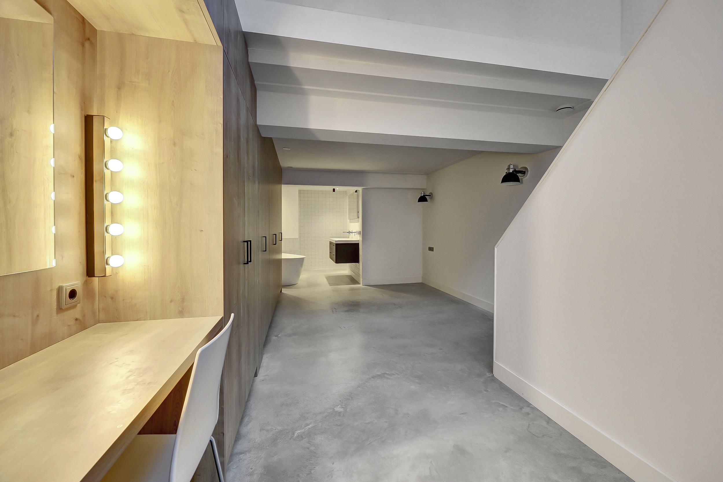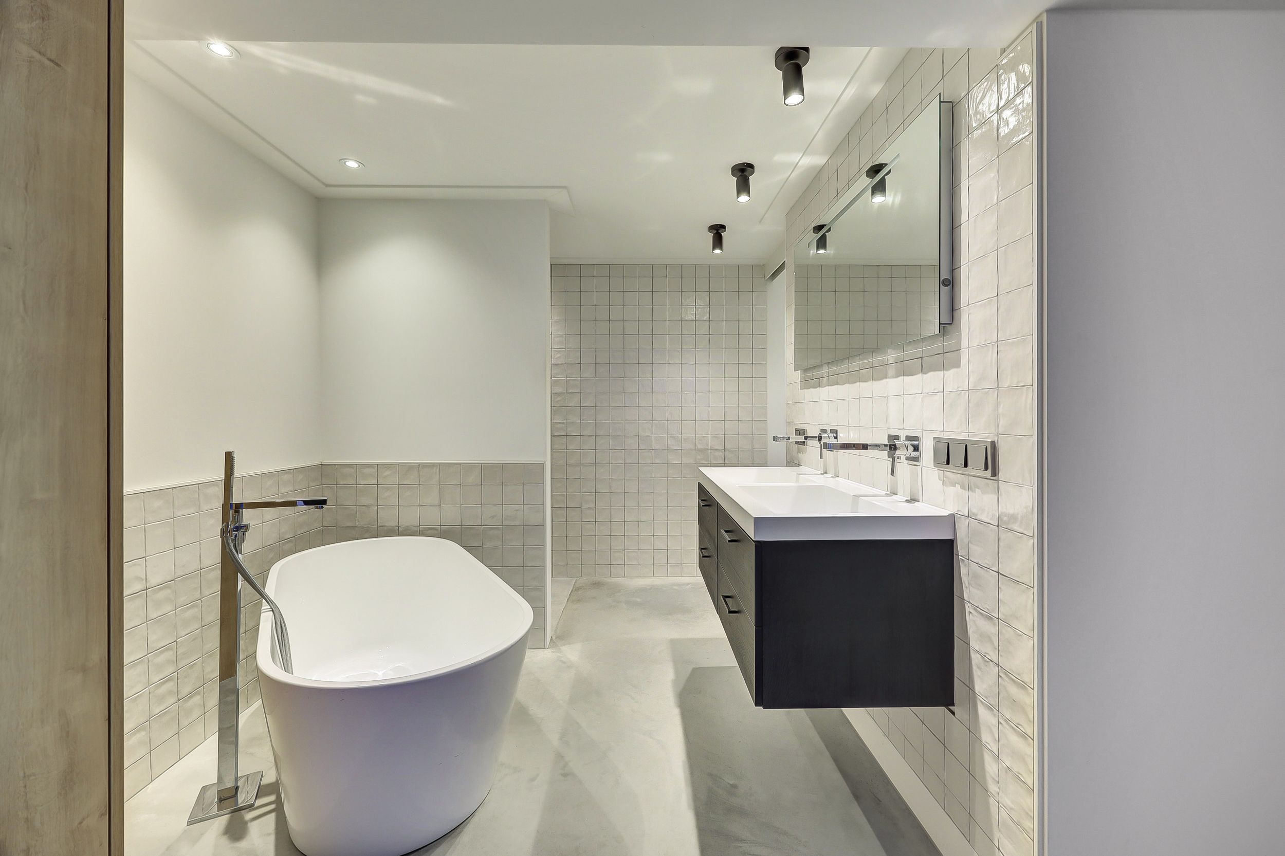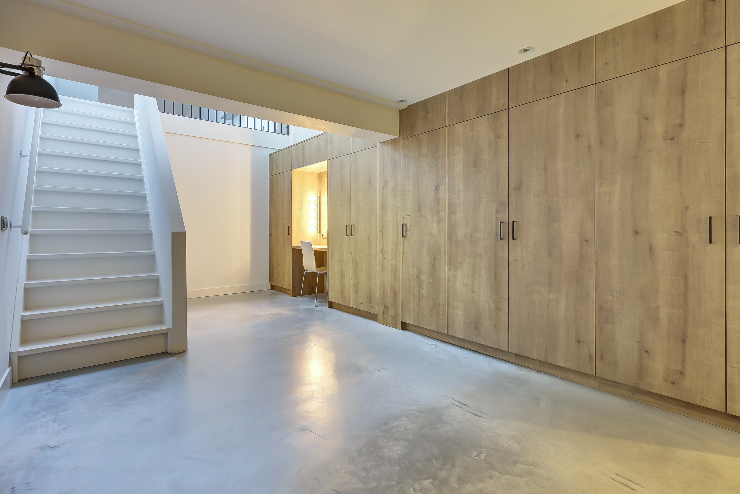 In het souterrain bevindt zich de slaapkamer. Ook de badkamer ligt op deze verdieping en is modern uitgevoerd met een inloopdouche, vrijstaand ligbad en een dubbele wastafel met meubel. Achter de badkamer is nog een praktische bergruimte aanwezig. Daarnaast is er op meerdere plekken in de woning extra opbergruimte, onder andere onder de trap en in de luxe vaste kastenwand met kaptafel.
