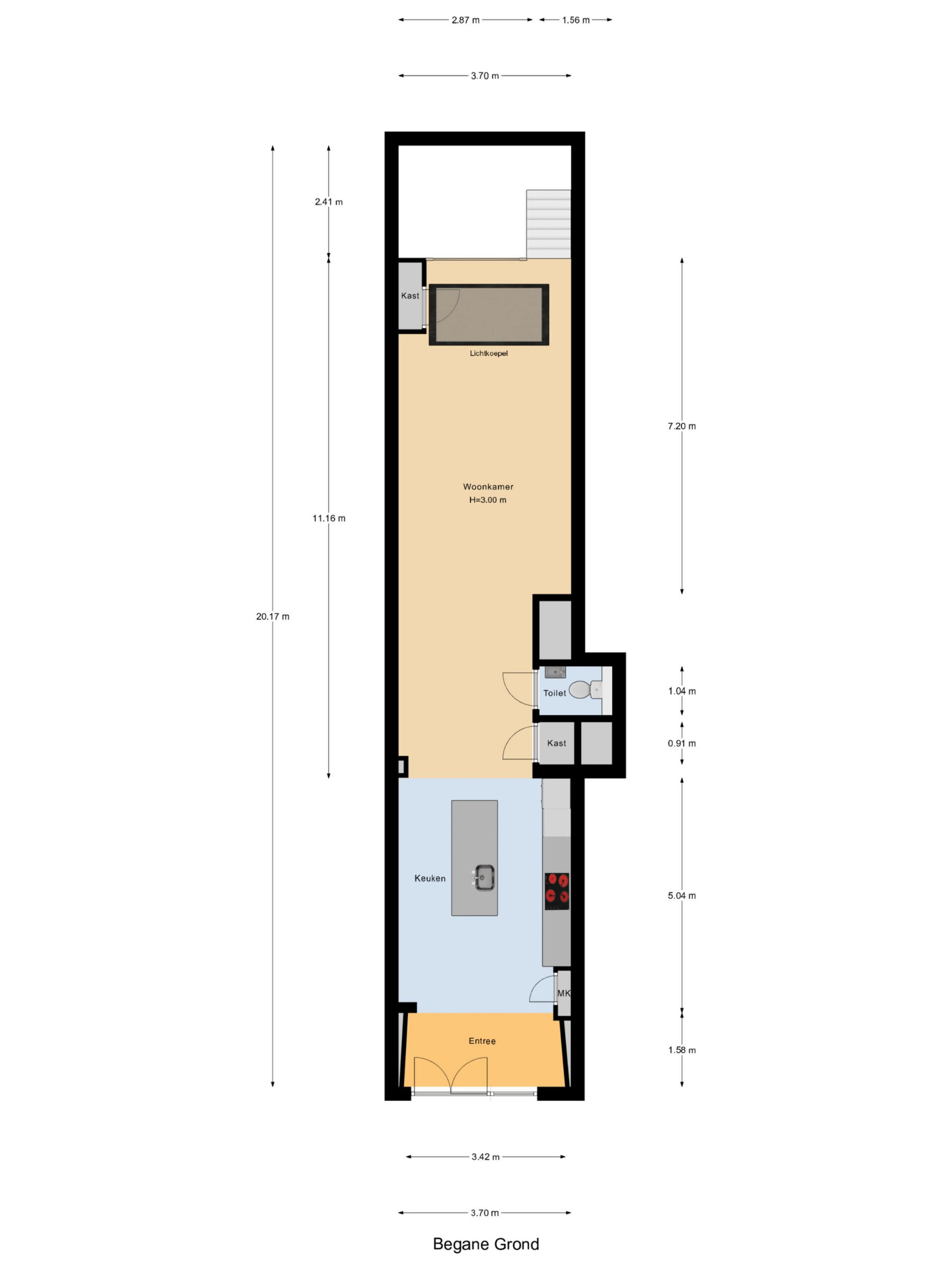 De woning is verdeeld over twee woonlagen. Het souterrain zorgt voor extra leefruimte en geeft de woning een speelse indeling, waardoor het geheel ruimer aanvoelt dan je op het eerste gezicht verwacht. De woonkamer vormt een prettige plek om te zitten en gasten te ontvangen. De moderne keuken met spoeleiland en Siemens apparatuur sluit hier goed op aan en maakt het geheel geschikt om samen te koken en te tafelen. Op de begane grond bevindt zich daarnaast een aparte wasruimte en een ruim toilet.
