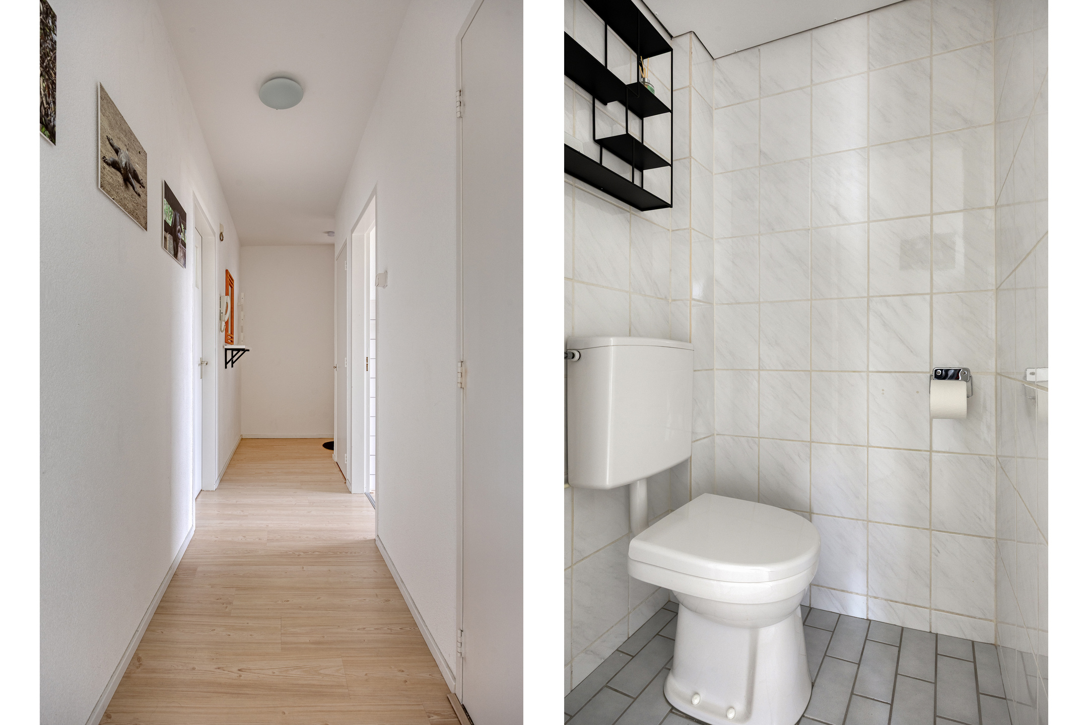 Via het portiek bereik je de tweede verdieping, waar dit appartement is gelegen. De hal vormt het centrale punt van de woning en geeft toegang tot vrijwel alle vertrekken.