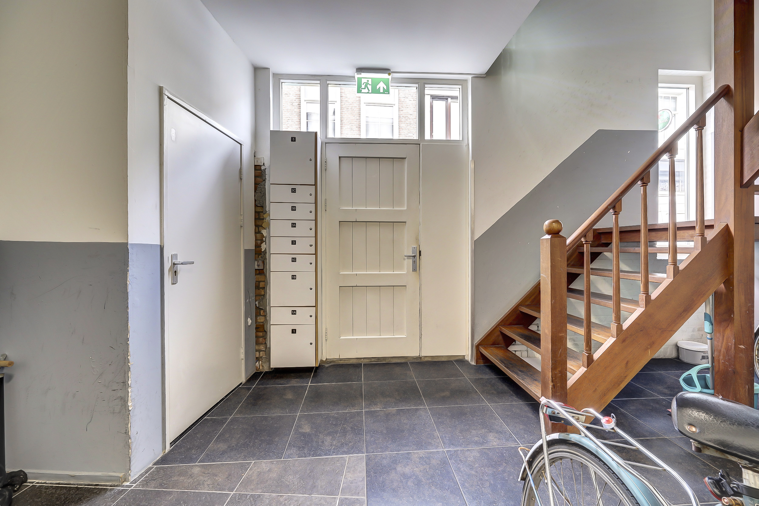 Gezamenlijke entree met ruimte voor het stallen van fietsen en trapopgang naar de appartementen.
