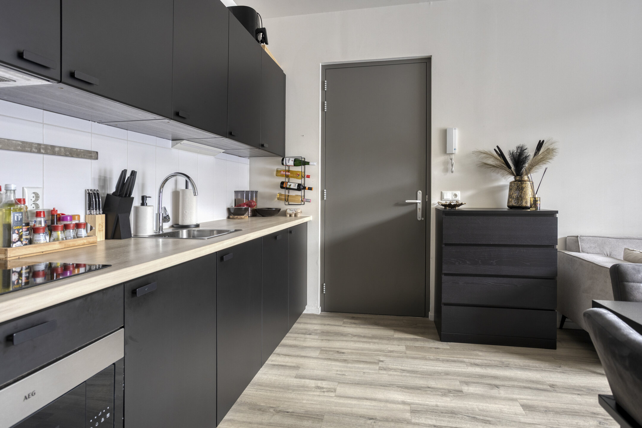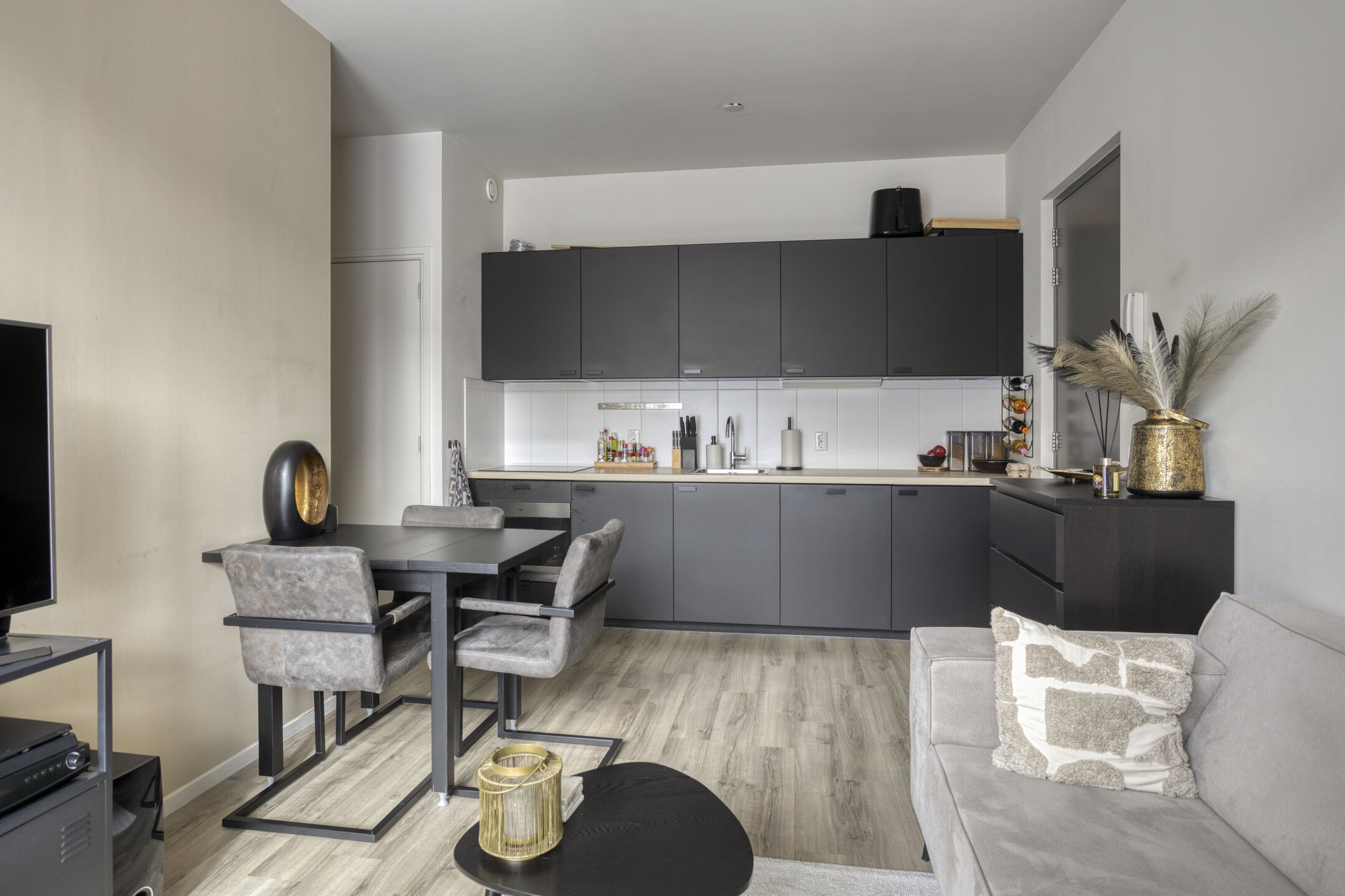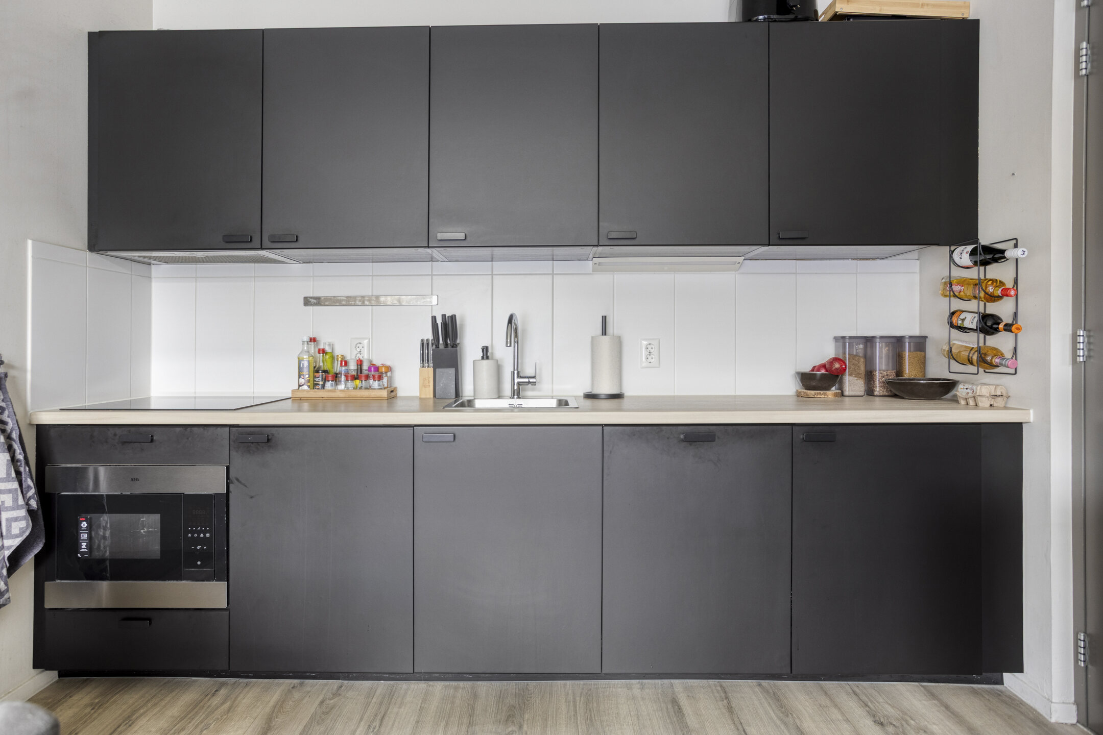 De open keuken is praktisch ingericht en uitgerust met inbouwapparatuur, waaronder een vaatwasser, spoelbak, combi-oven, 4-pits inductiekookplaat en een koelkast. Aangrenzend bevindt zich een handige bergkast met opstelling voor witgoed, de mechanische ventilatie en de eigen cv-ketel (Nefit, eigendom).