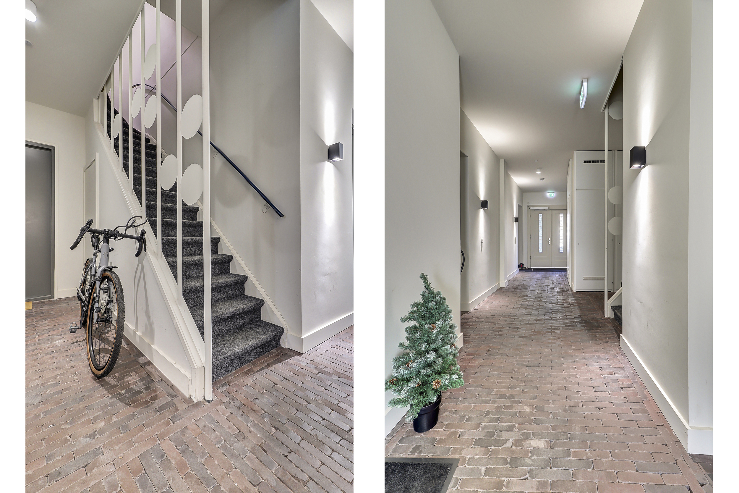 De gezamenlijke entree van dit karakteristieke pand, dat recent volledig is gerenoveerd en verdeeld in meerdere appartementen. Het appartement is gelegen op de eerste verdieping en beschikt over een eigen meterkast op de gezamenlijke hal, voorzien van water, gas, elektra en glasvezel.