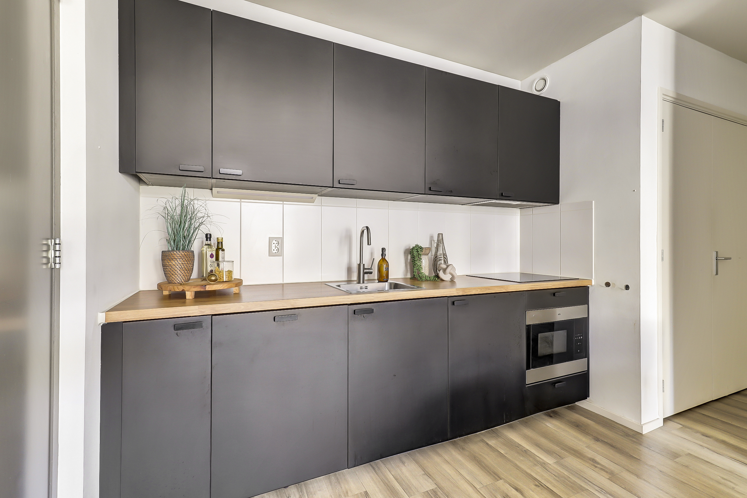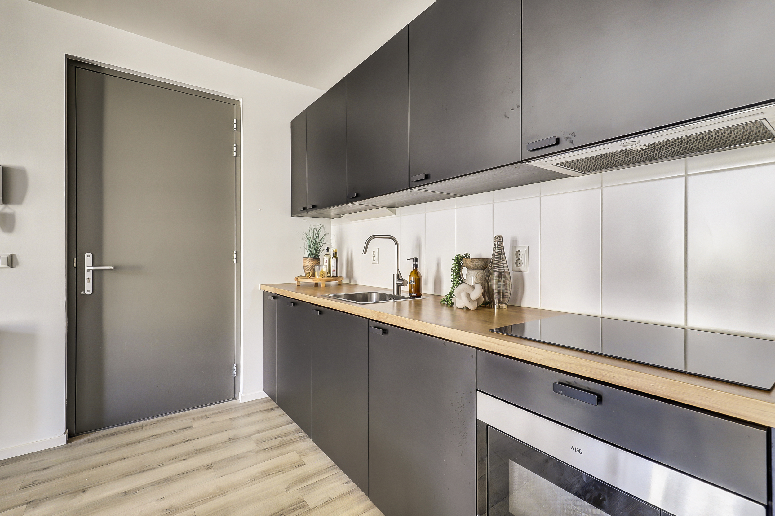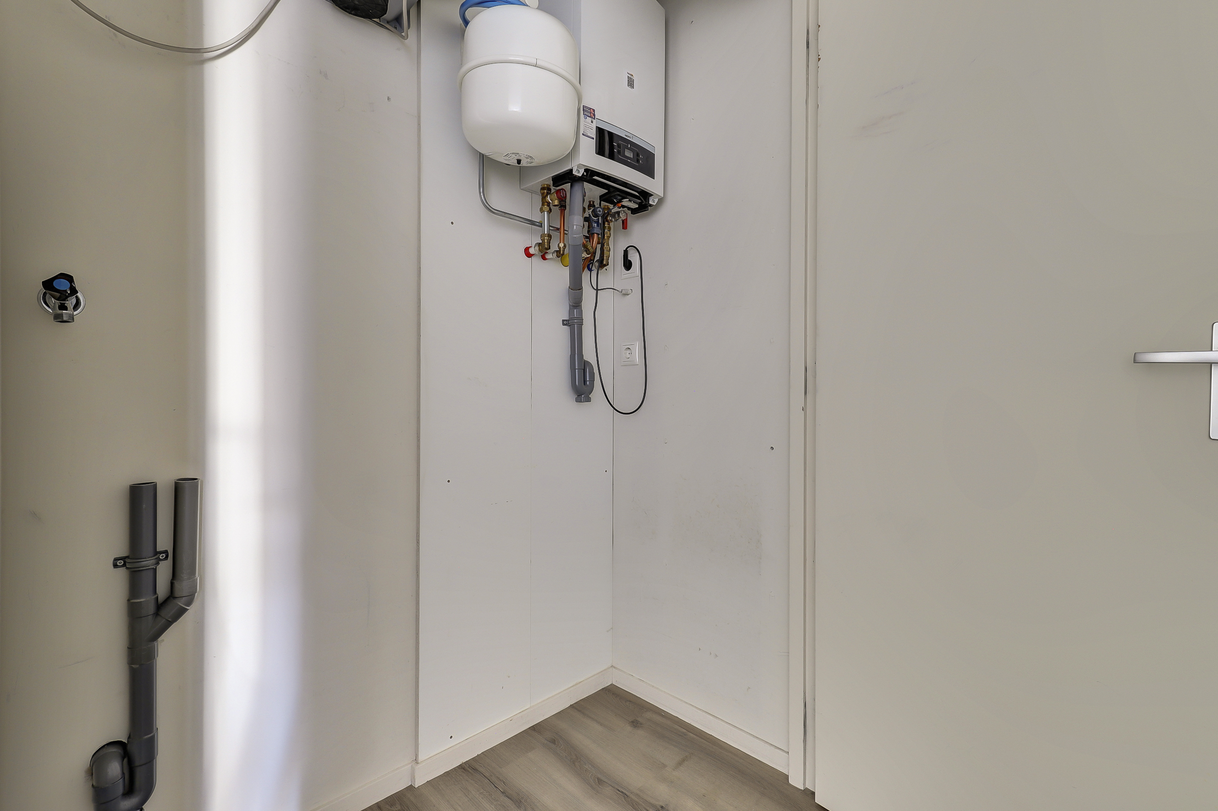 De open keuken is praktisch ingericht en uitgerust met diverse inbouwapparatuur, waaronder een vaatwasser, spoelbak, combi-oven, 4-pits inductiekookplaat en een koelkast met vriesvak. Aangrenzend bevindt zich een handige bergkast met opstelling voor witgoed, de mechanische ventilatie en de eigen cv-ketel (Nefit, eigendom).