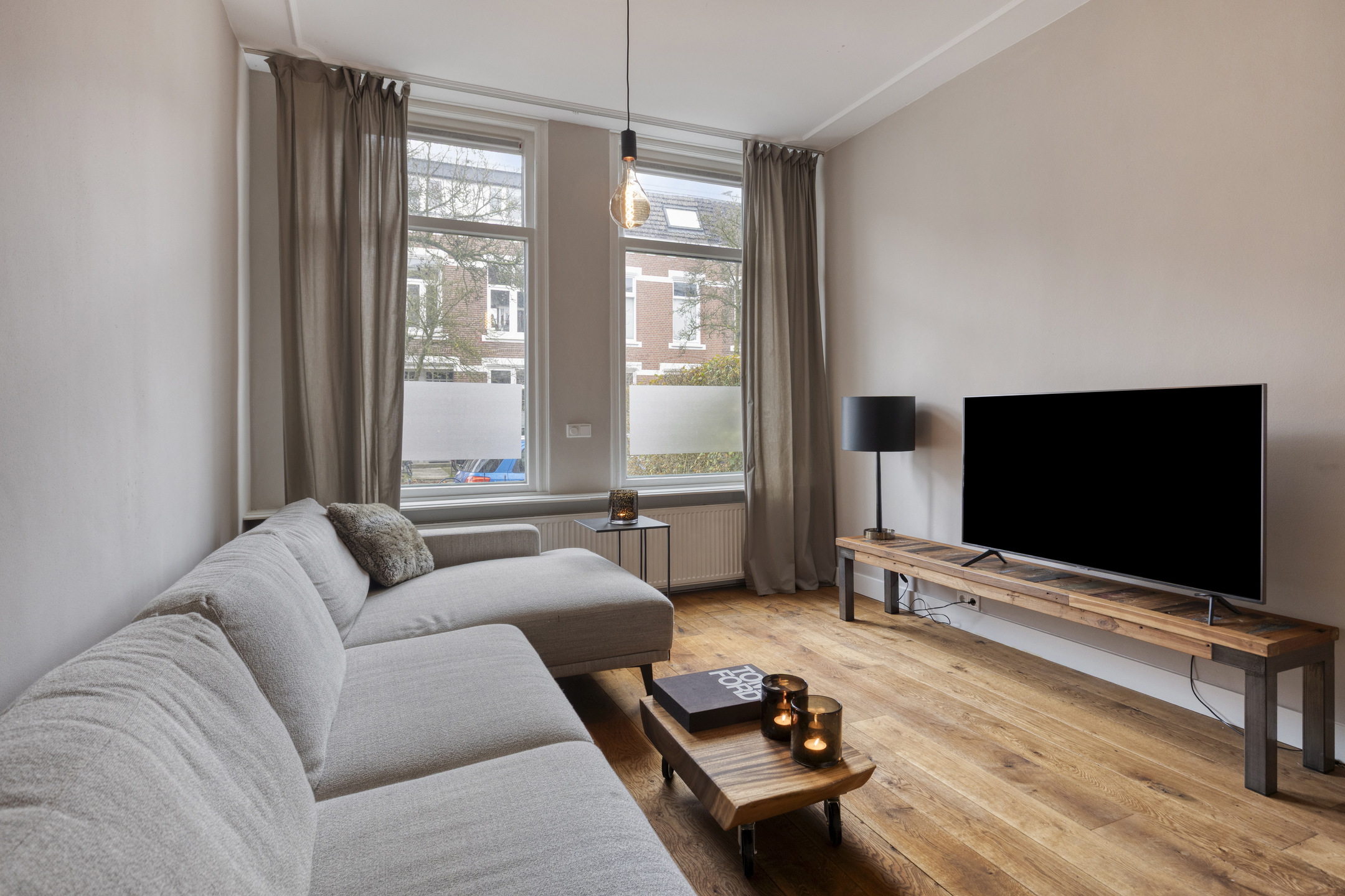 Deze goed onderhouden benedenwoning combineert het karakter van een woning uit 1905 met het comfort van nu. Bij binnenkomst ervaar je direct de prettige sfeer en het gevoel van ruimte, dankzij de hoge plafonds, brede eikenhouten vloer en grote raampartijen.