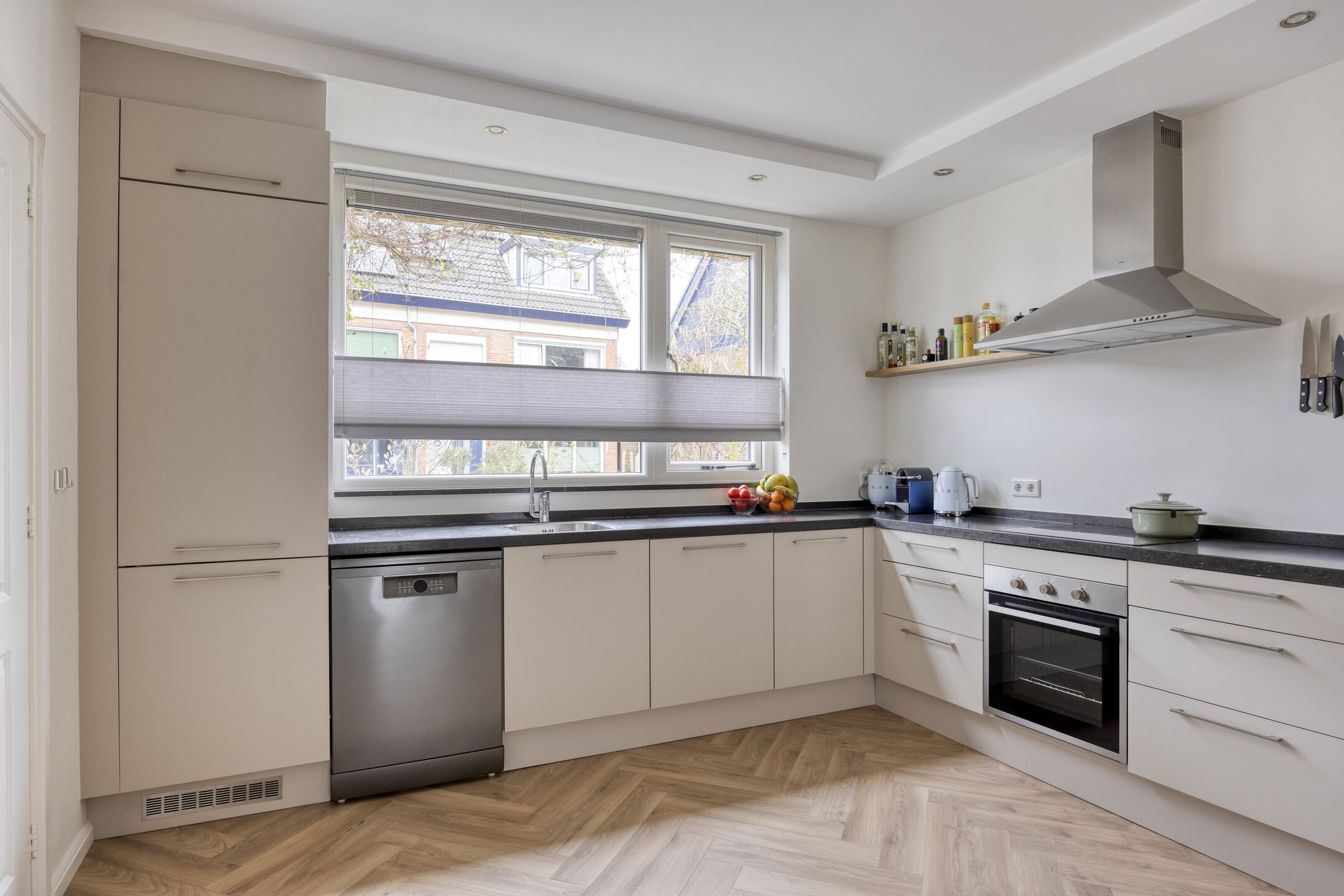- Voorzieningen Rolluiken, buitenzonwering, airconditioning, dakraam, glasvezel kabel, zonnepanelen, natuurlijke ventilatie