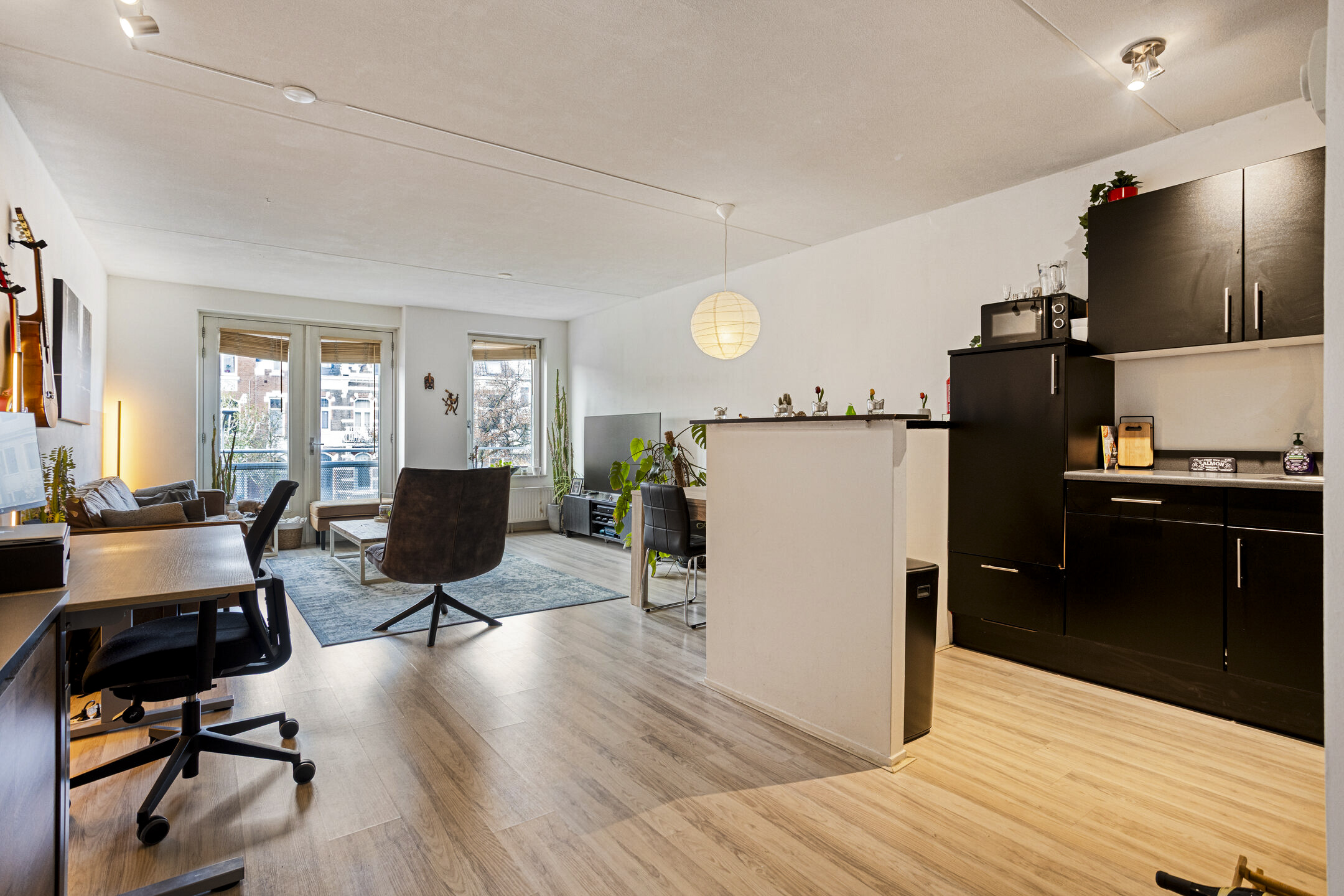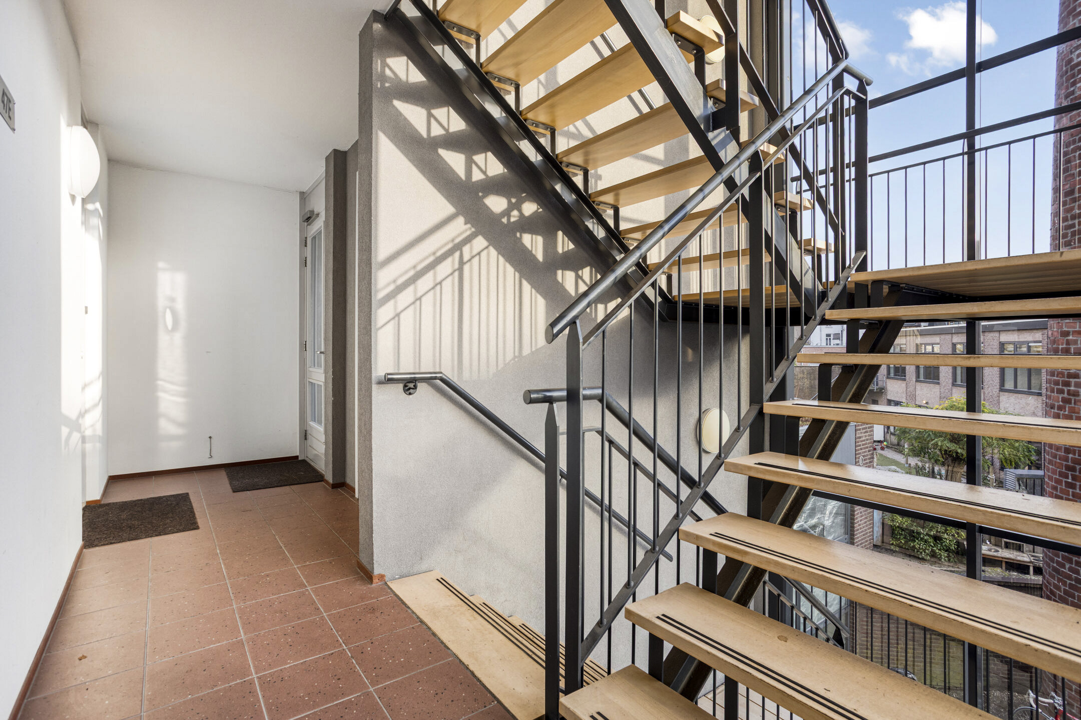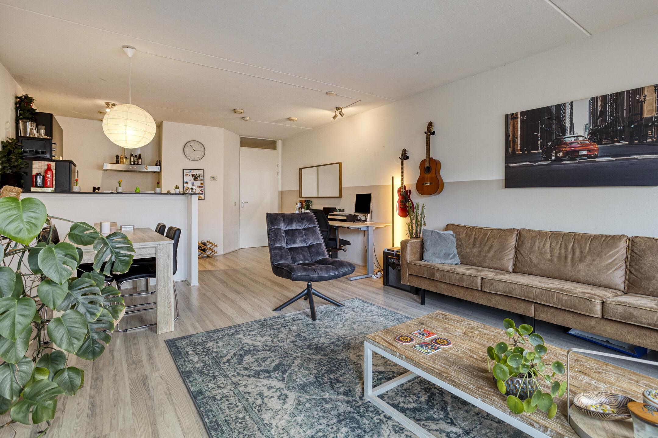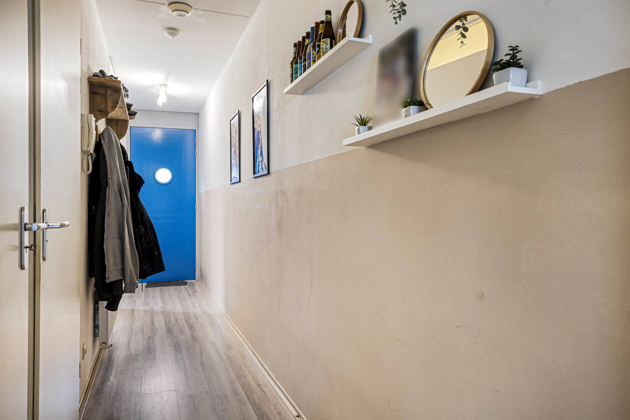 Via de centrale entree bereik je het appartement op de galerij. De hal geeft toegang tot alle vertrekken en creëert direct overzicht. De woonkamer valt op door het ruime en lichte karakter en beschikt over een frans balkon, waardoor de ruimte prettig met buiten in verbinding staat.