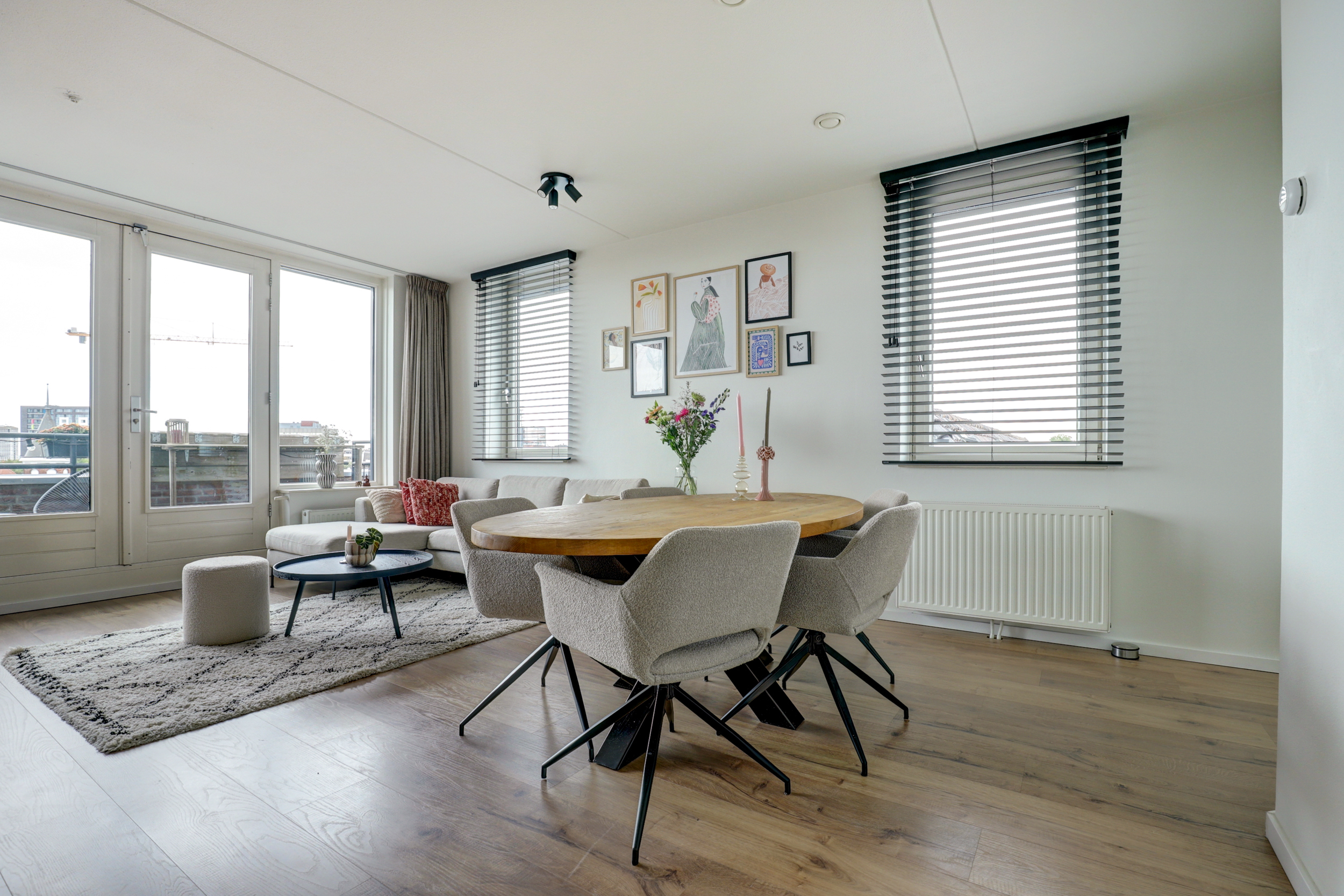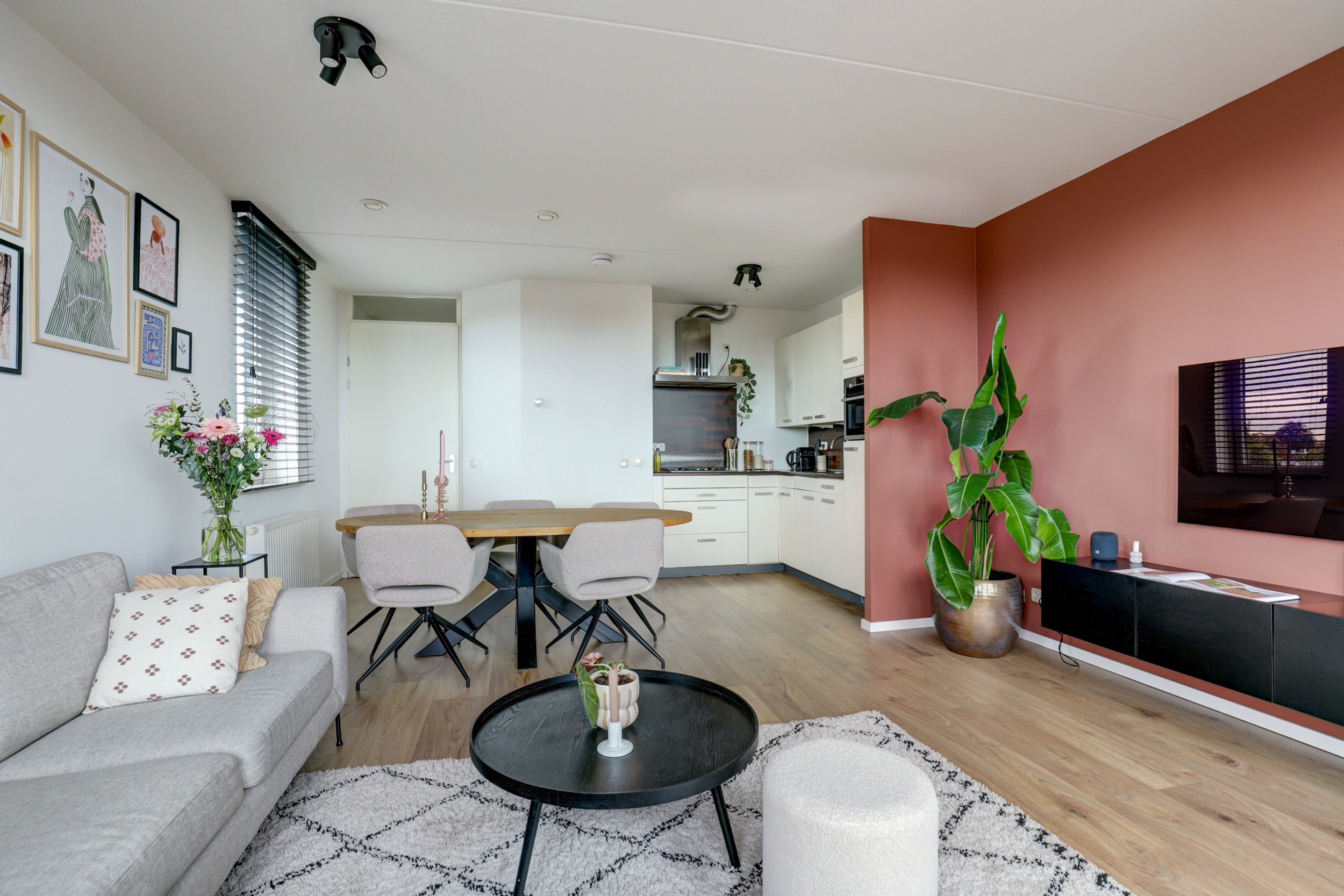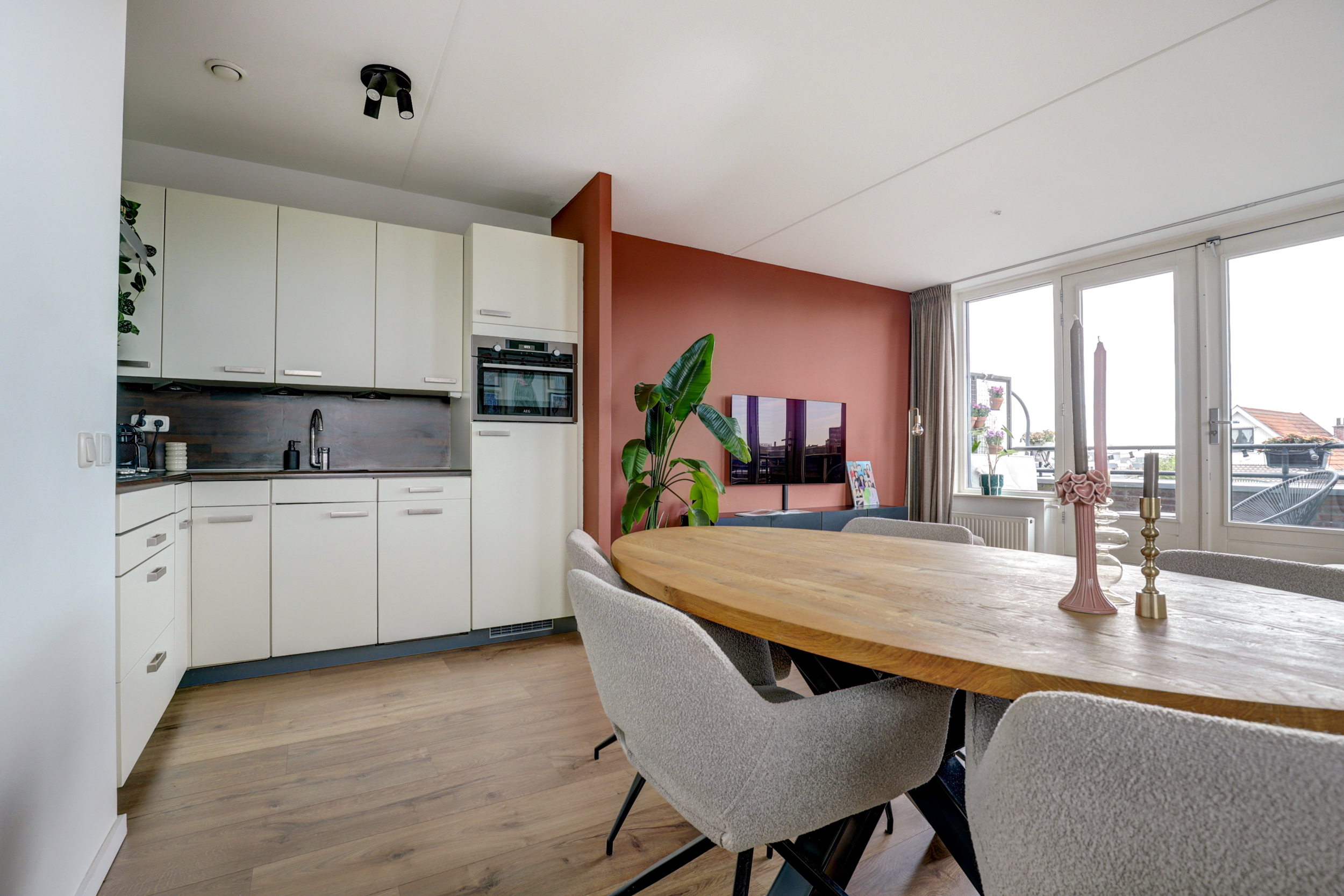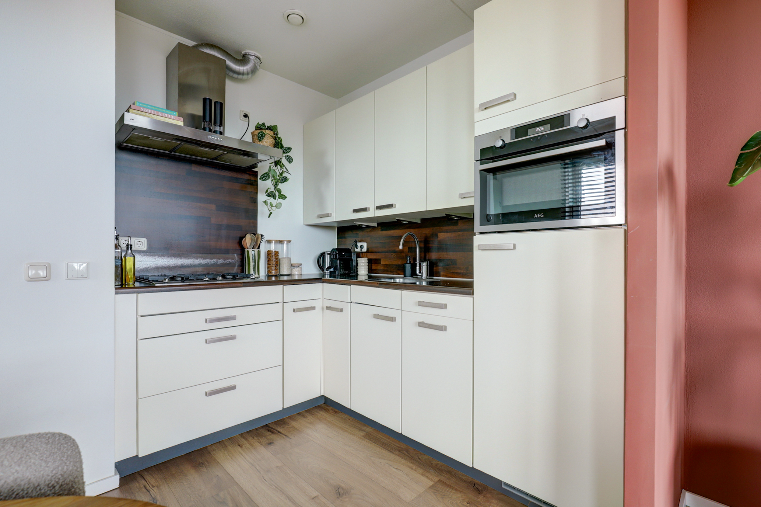 De vloer is in 2021 volledig vernieuwd met modern laminaat, wat bijdraagt aan een frisse en verzorgde uitstraling. De semi-open keuken is praktisch ingericht en netjes afgewerkt, waardoor koken en samen eten eenvoudig en aangenaam is.
