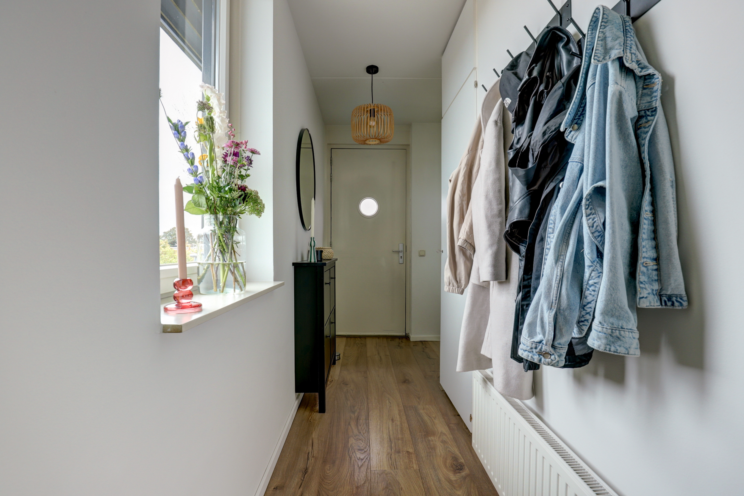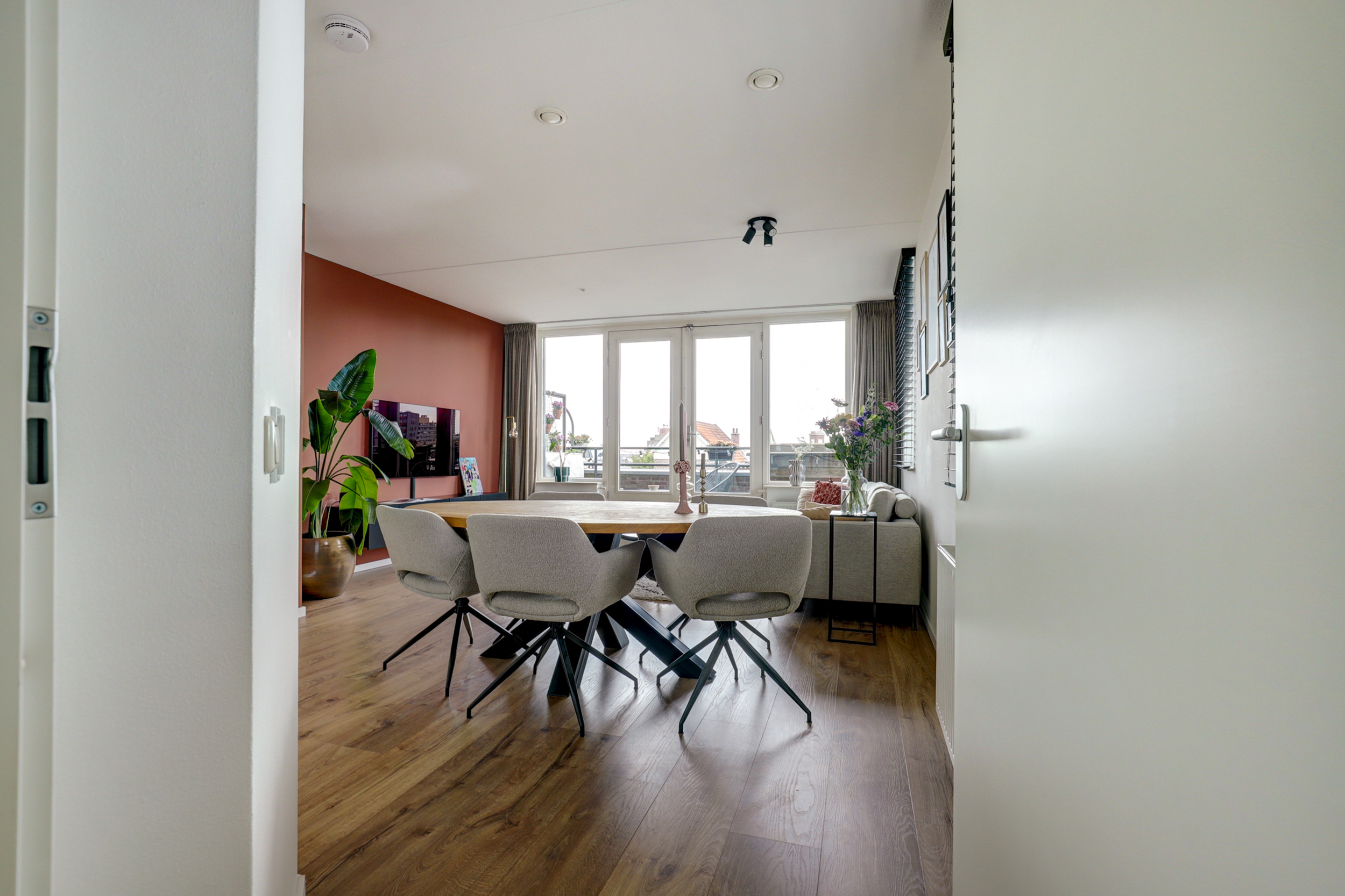 Bij binnenkomst word je verwelkomd door een ruime hal die toegang biedt tot alle vertrekken. De woonkamer van ca. 30 m² is bijzonder licht dankzij de grote raampartijen en biedt directe toegang tot het balkon, waar je op elk moment van de dag van de zon en het uitzicht kunt genieten.