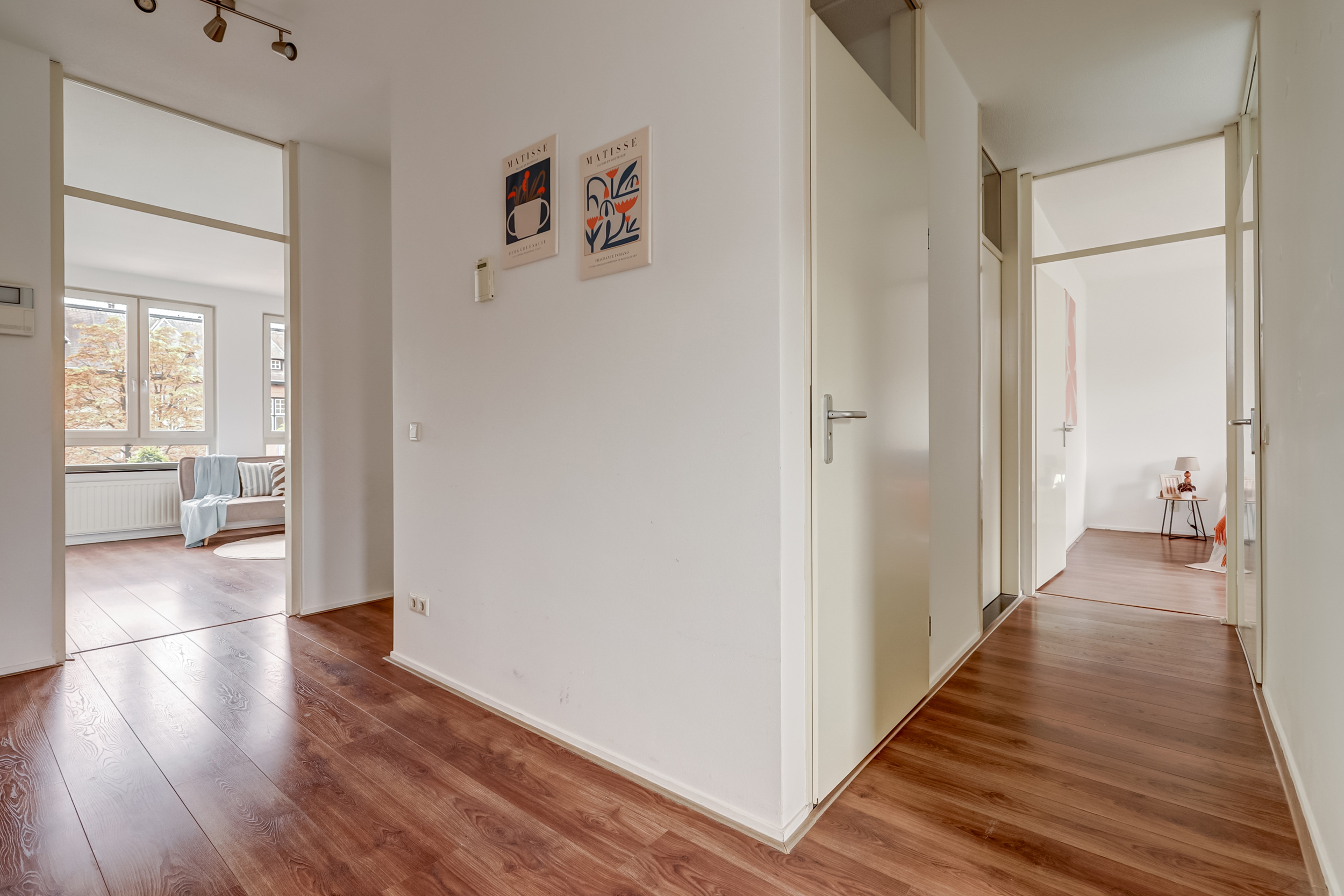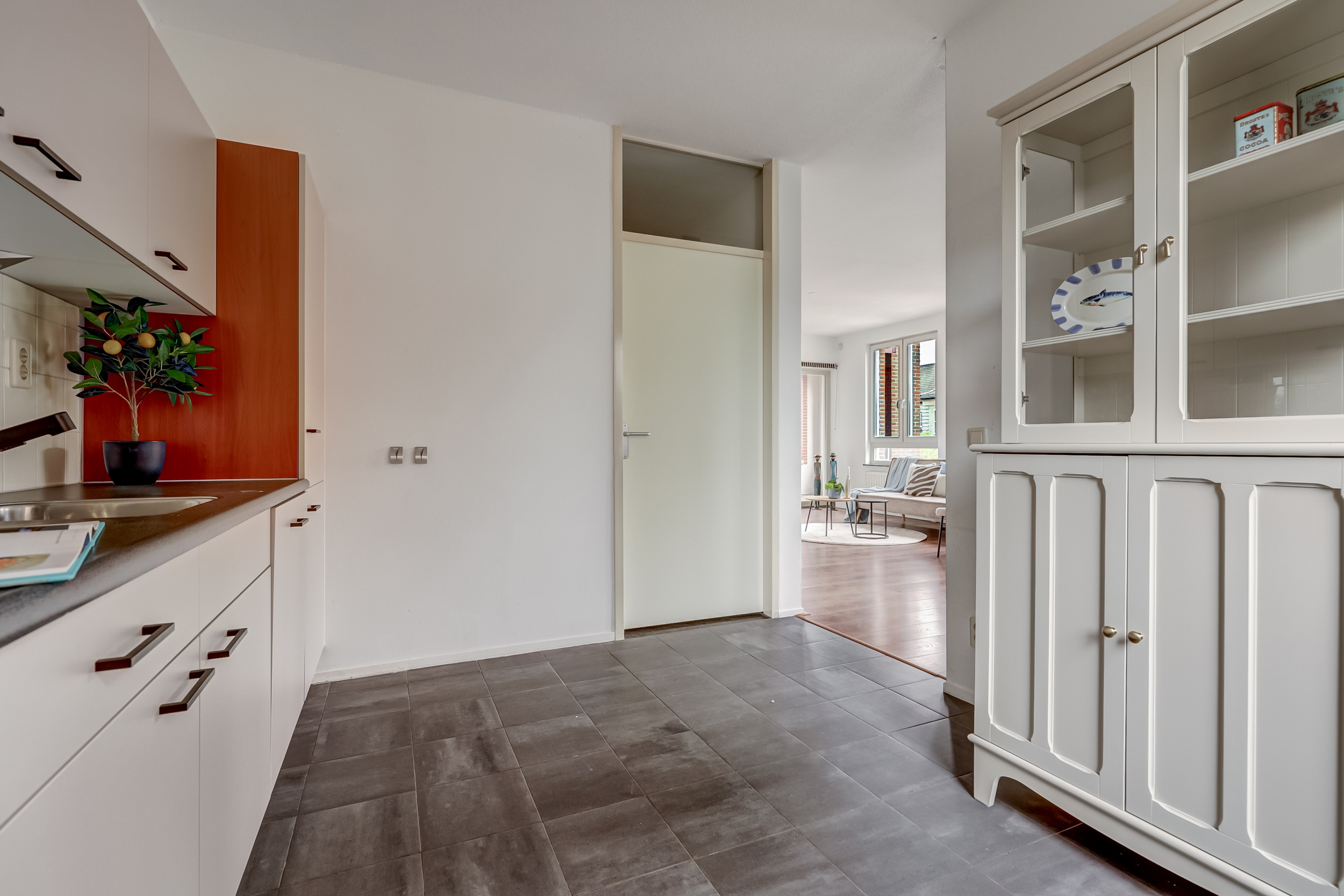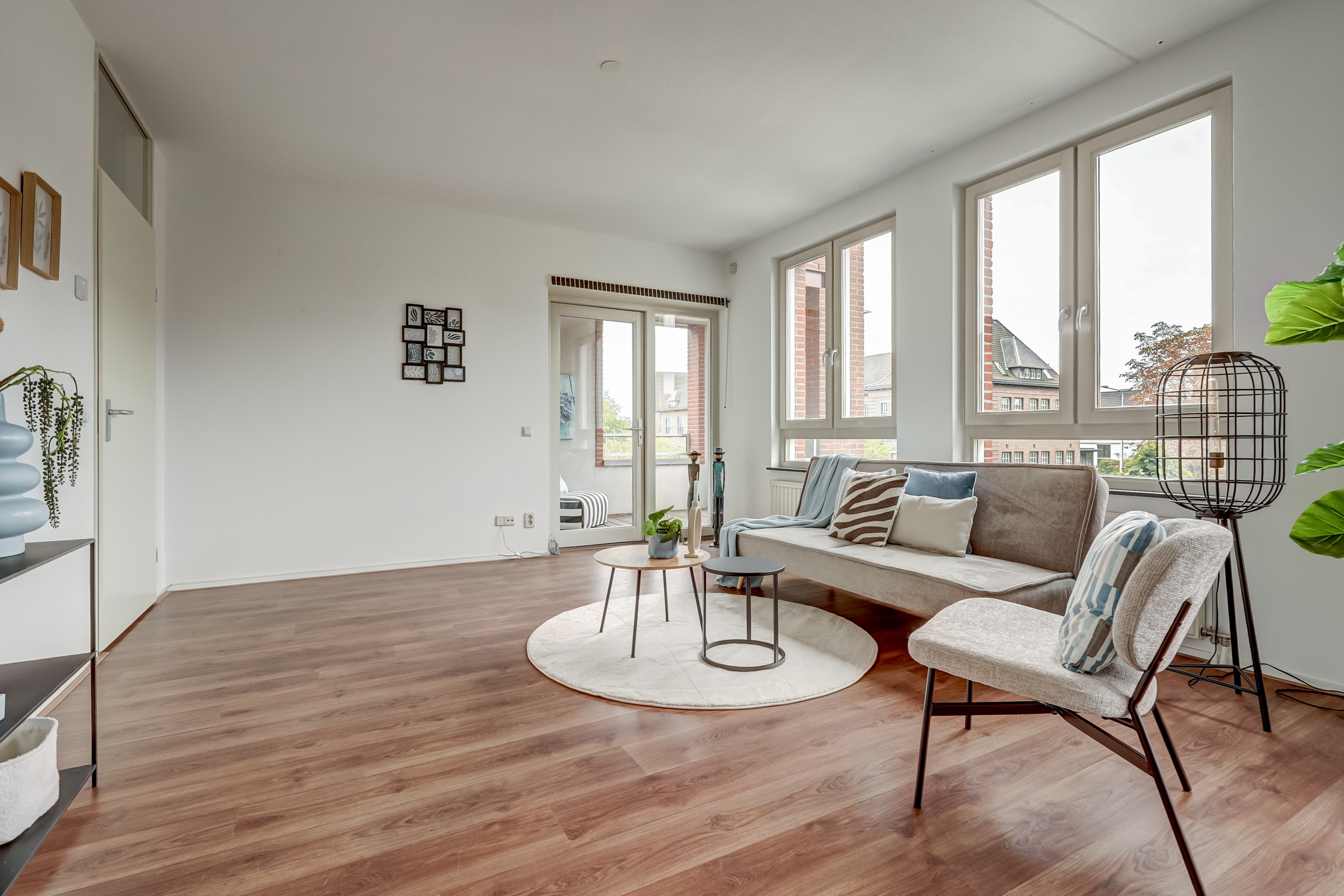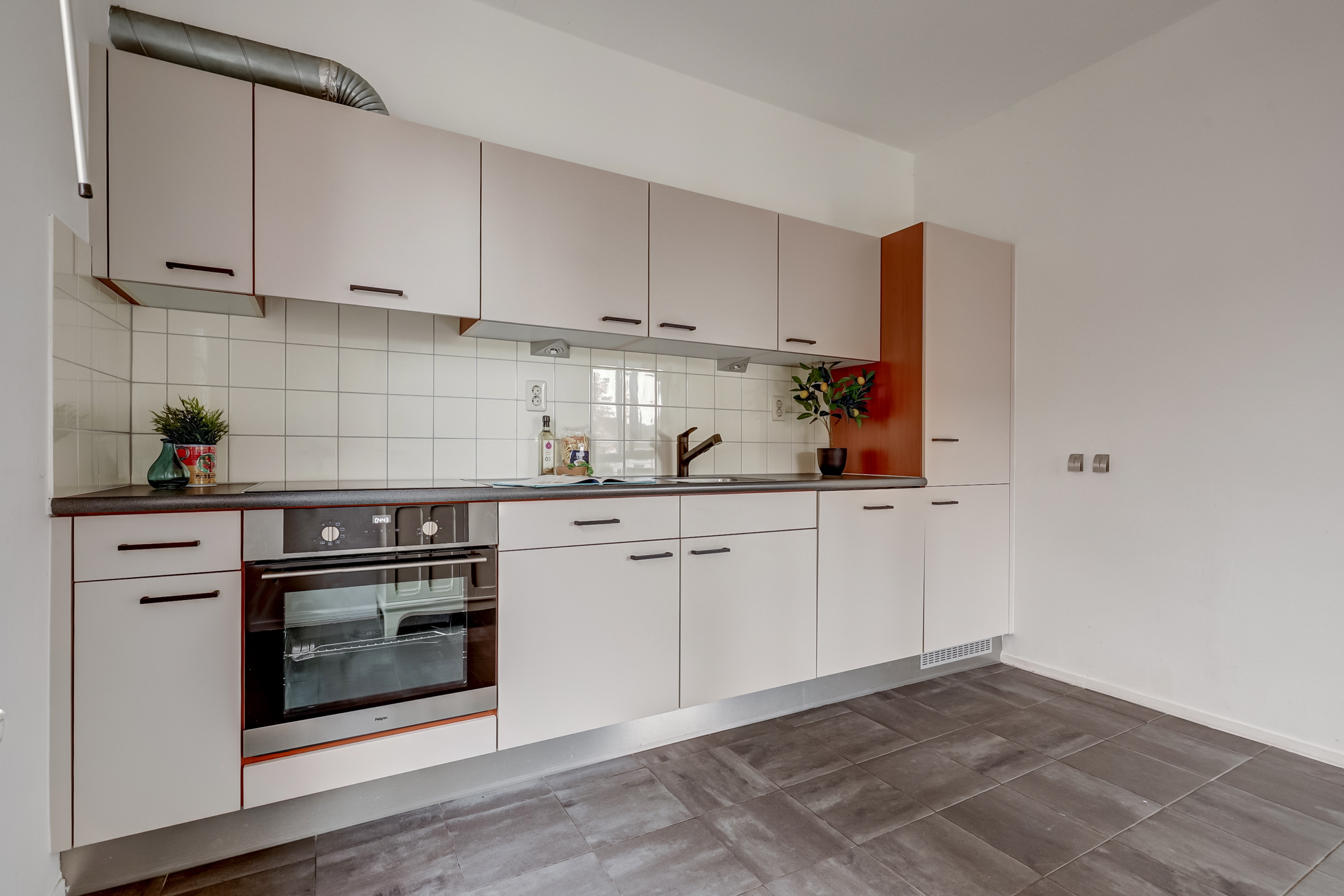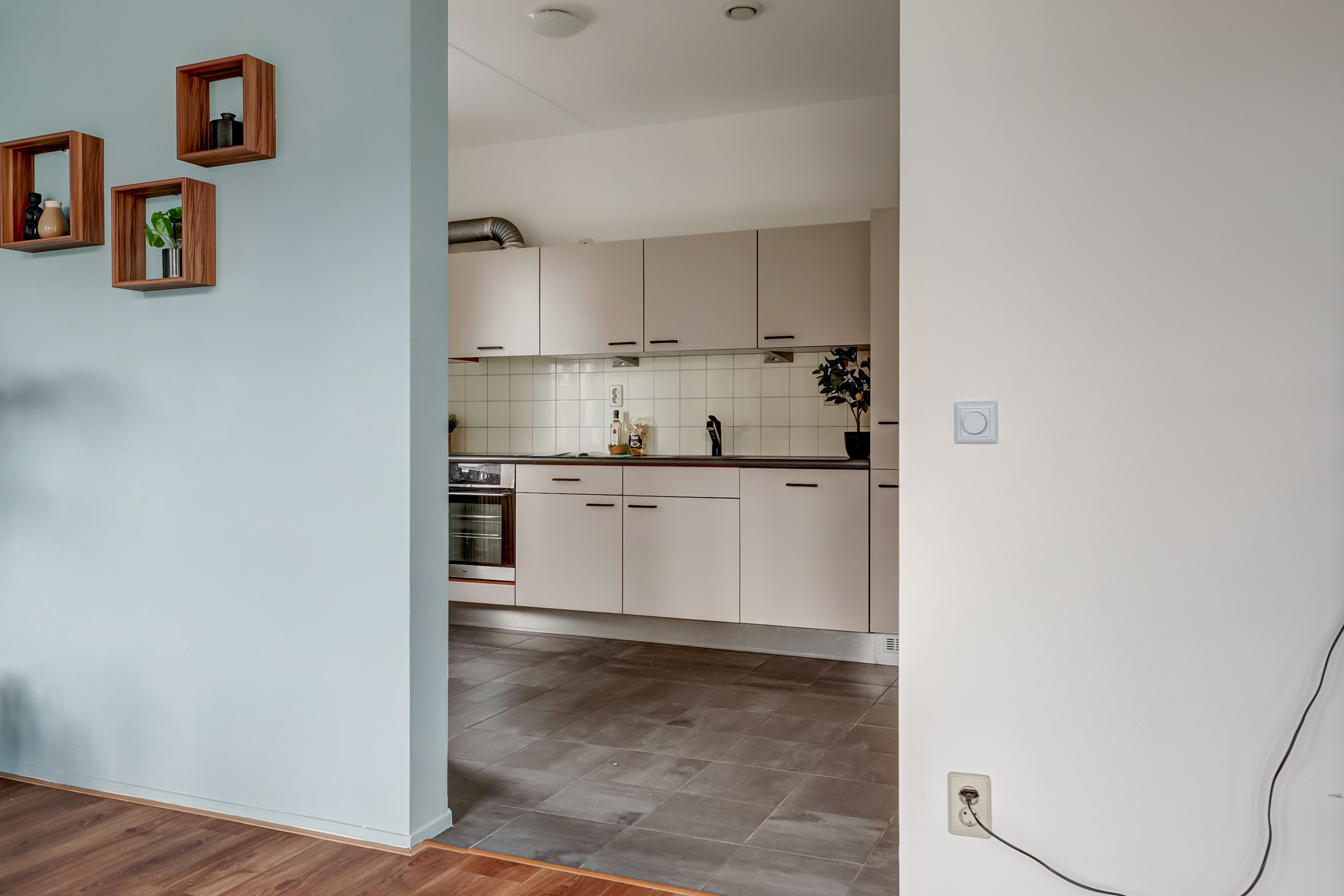 De aan de voorzijde gelegen ruime woonkamer strekt zich uit over de volledige breedte van het appartement en beschikt over grote raampartijen die zorgen voor veel daglicht. Vanuit de woonkamer heb je toegang tot het balkon op het zuidwesten, waar je ’s middags en ’s avonds van de zon kunt genieten. De royale halfopen keuken is voorzien van diverse inbouwapparatuur en sluit praktisch aan op de leefruimte. Vanuit de keuken krijg je toegang tot de grote berging met wasmachine-aansluiting, cv-installatie (Intergas 2023), mechanische ventilatie-unit én extra opbergruimte. Hoe handig is dat?!