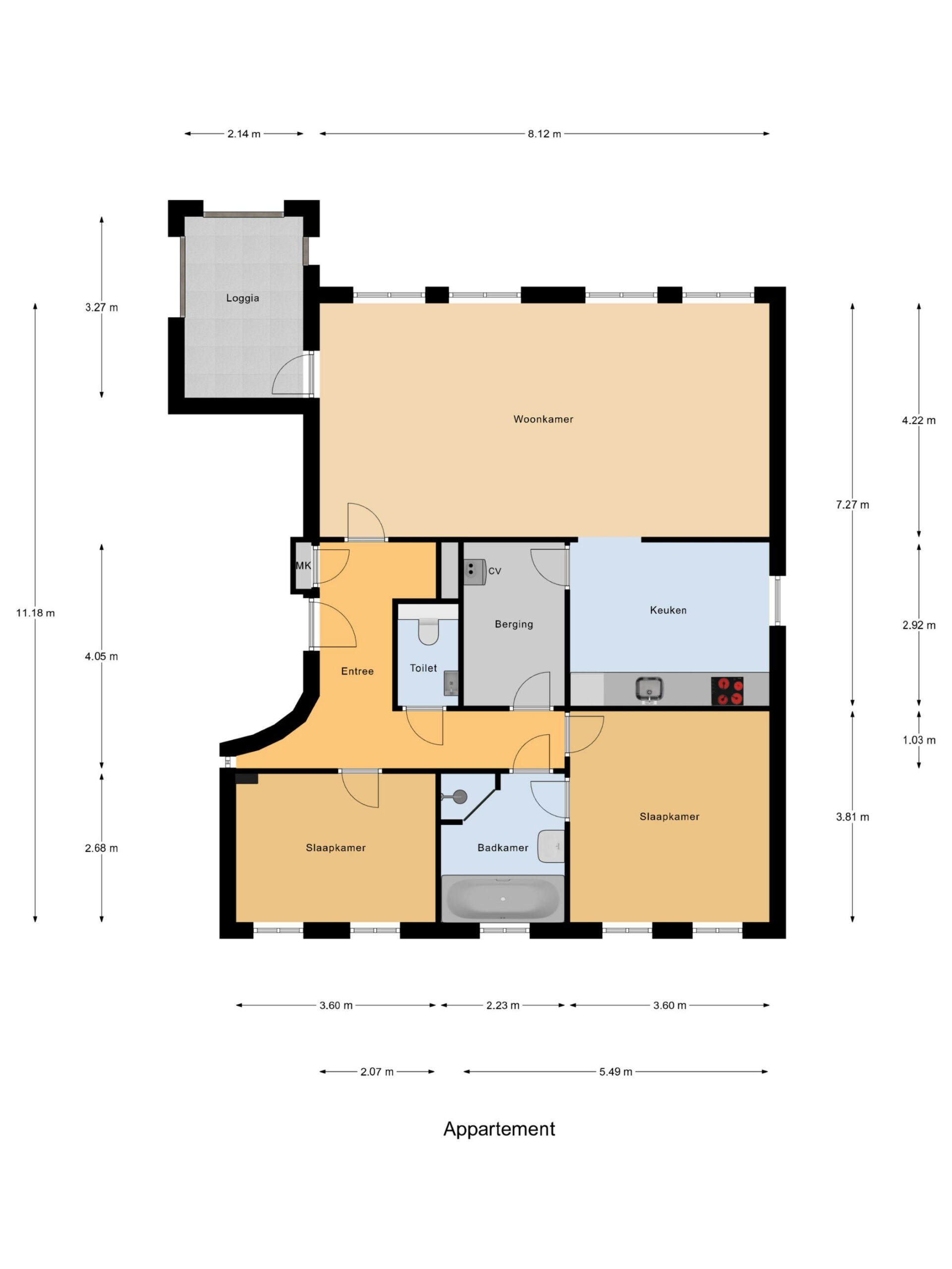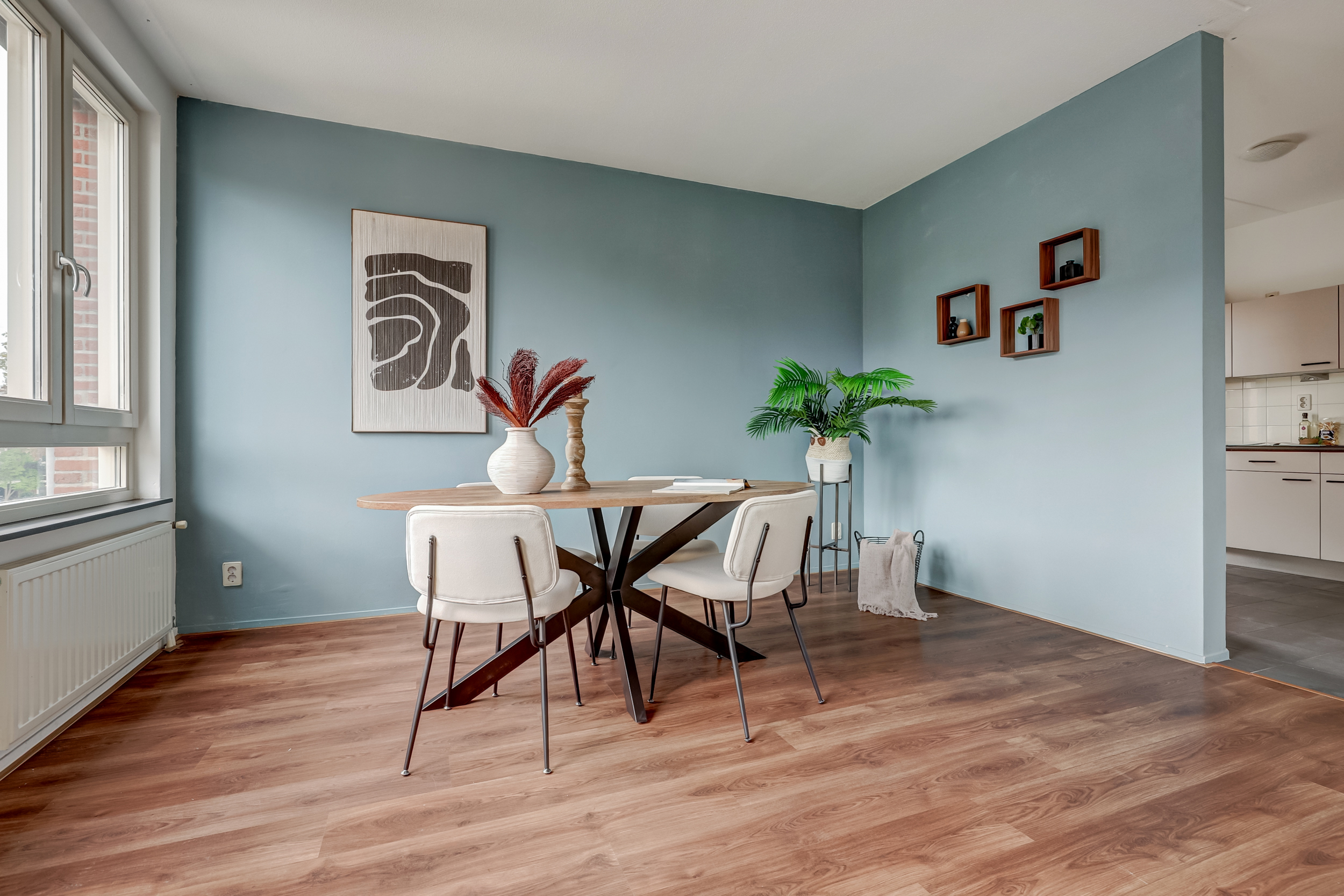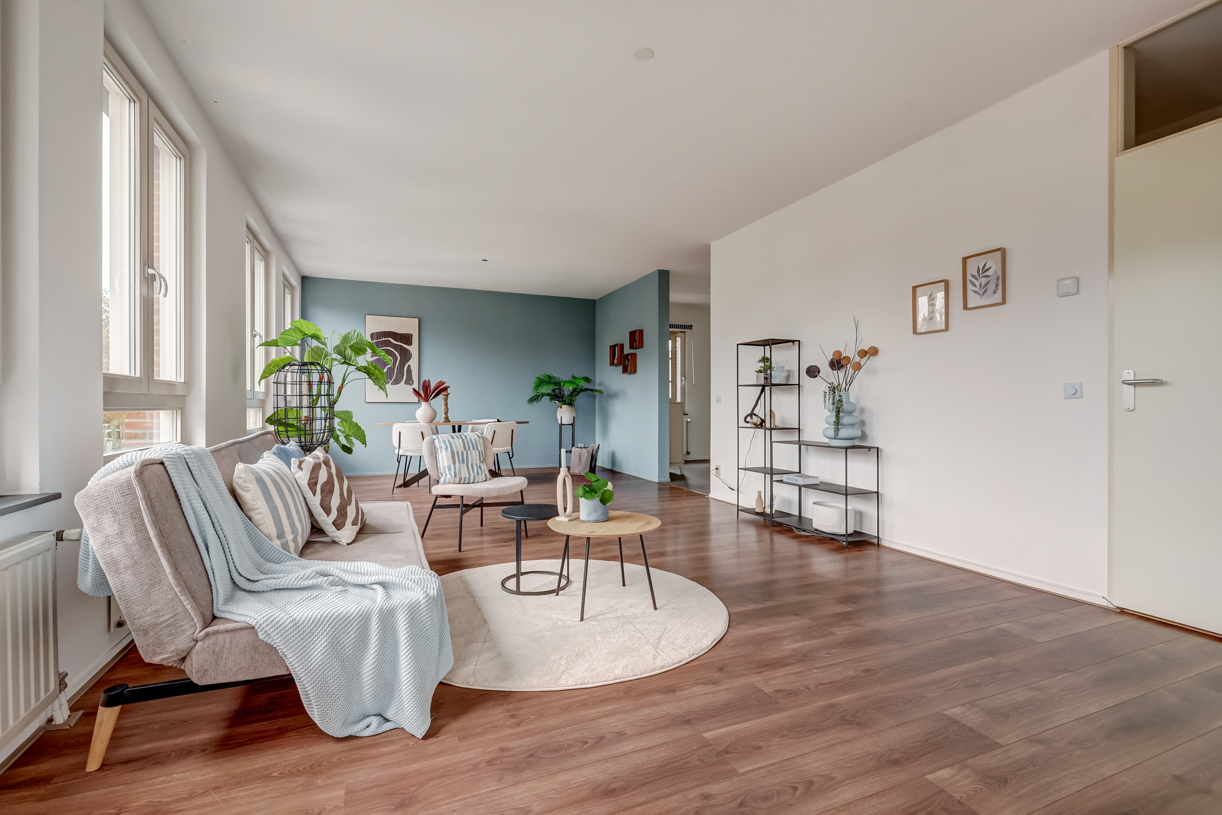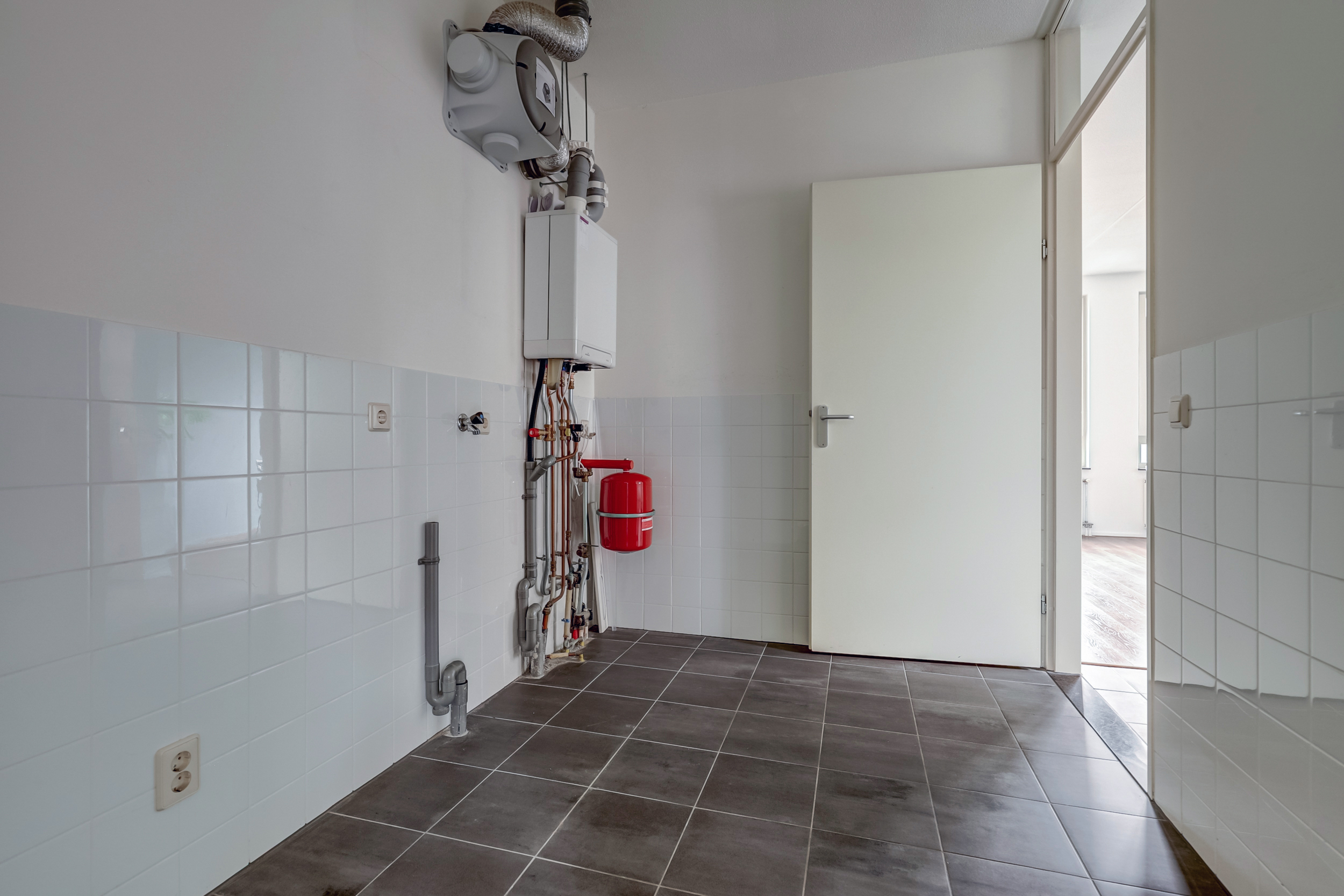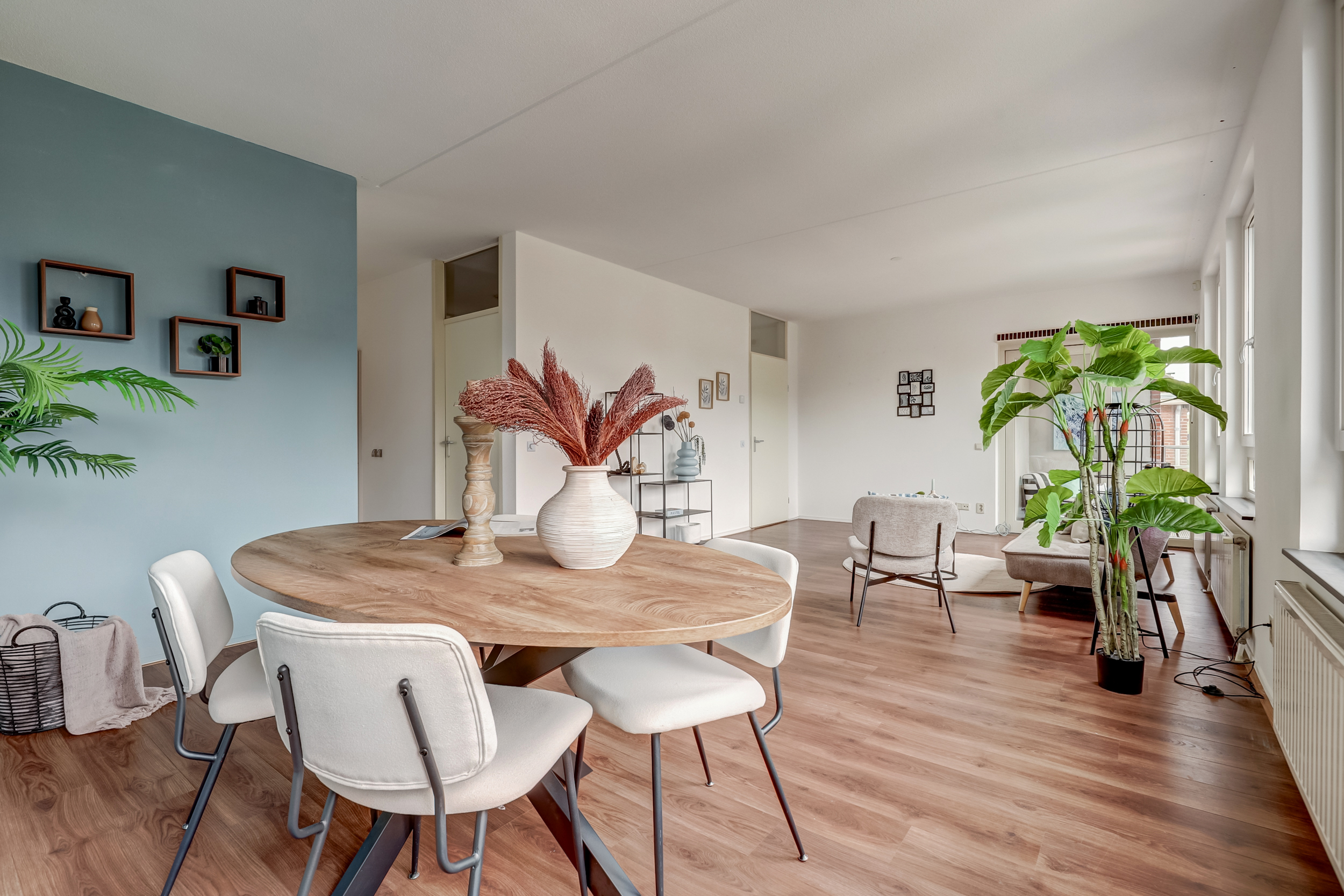 De aan de voorzijde gelegen ruime woonkamer strekt zich uit over de volledige breedte van het appartement en beschikt over grote raampartijen die zorgen voor veel daglicht. Vanuit de woonkamer heb je toegang tot het balkon op het zuidwesten, waar je ’s middags en ’s avonds van de zon kunt genieten. De royale halfopen keuken is voorzien van diverse inbouwapparatuur en sluit praktisch aan op de leefruimte. Vanuit de keuken krijg je toegang tot de grote berging met wasmachine-aansluiting, cv-installatie (Intergas 2023), mechanische ventilatie-unit én extra opbergruimte. Hoe handig is dat?!