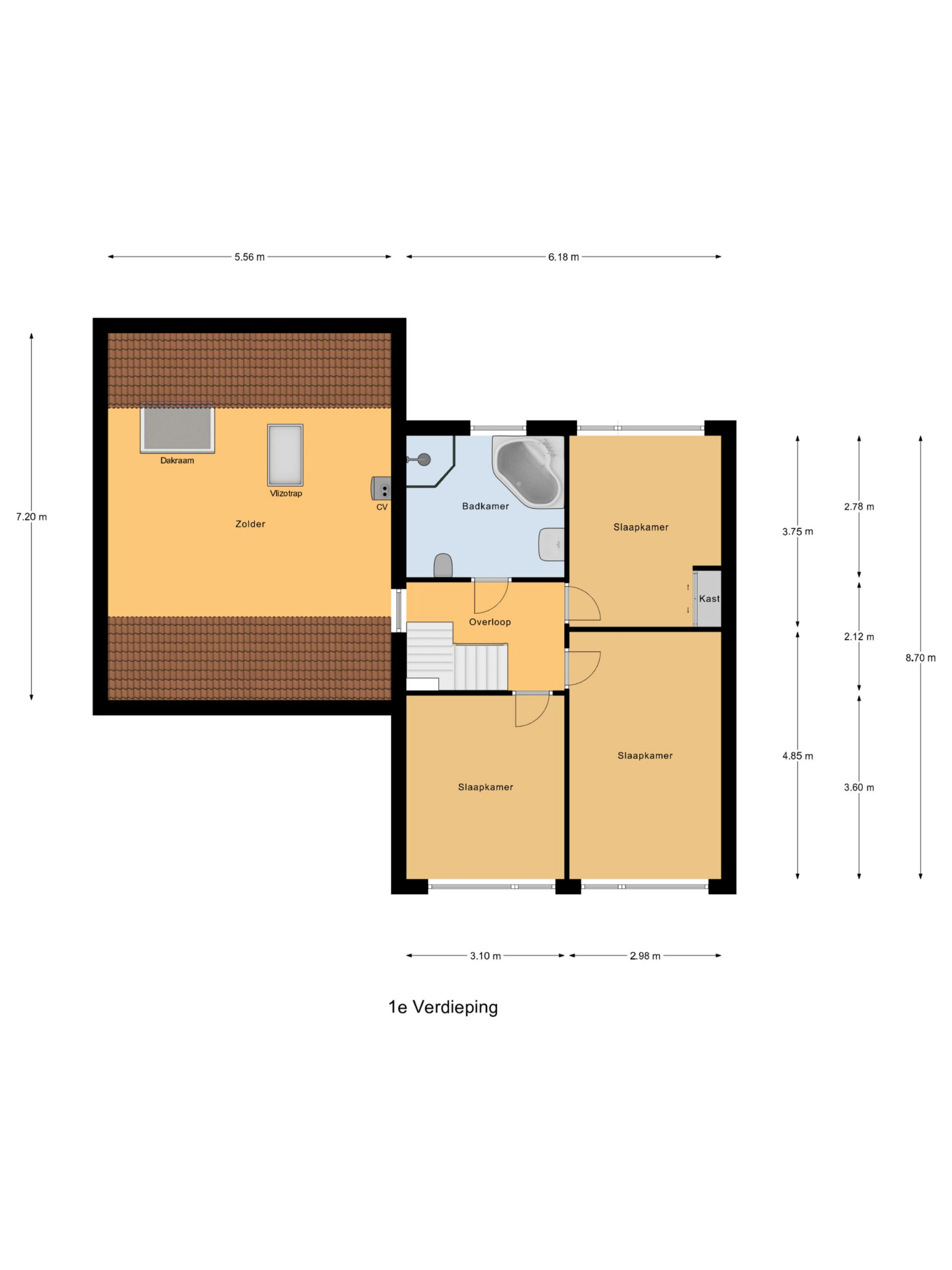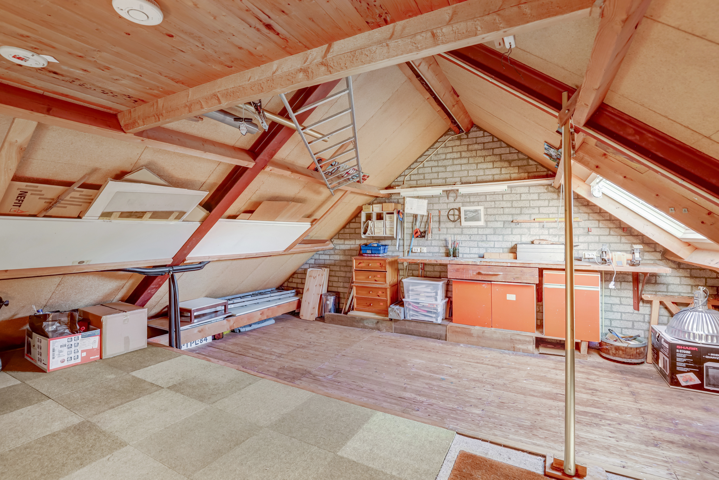 De zolder biedt veel gebruiksmogelijkheden. Op de overloop is extra bergruimte aanwezig en de vierde slaapkamer is vergroot met een dakkapel, wat zorgt voor royaal daglicht en extra leefruimte. Ideaal als slaapkamer, werkplek of hobbykamer.