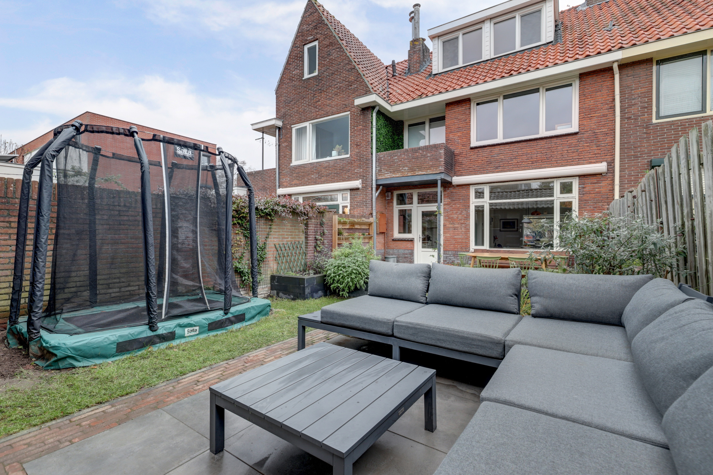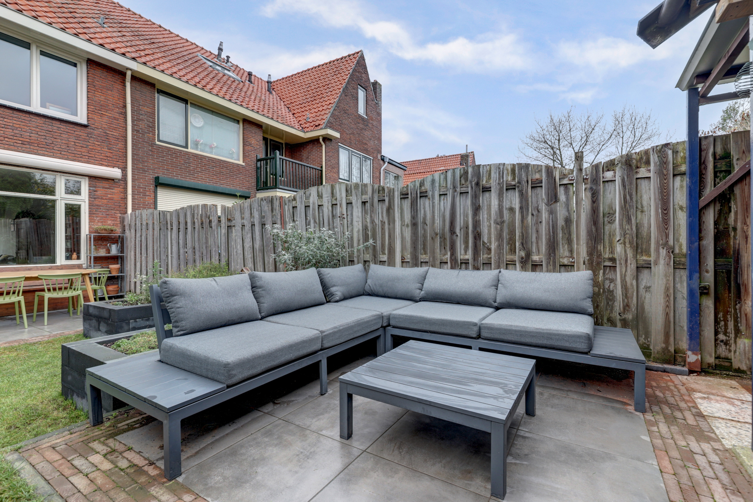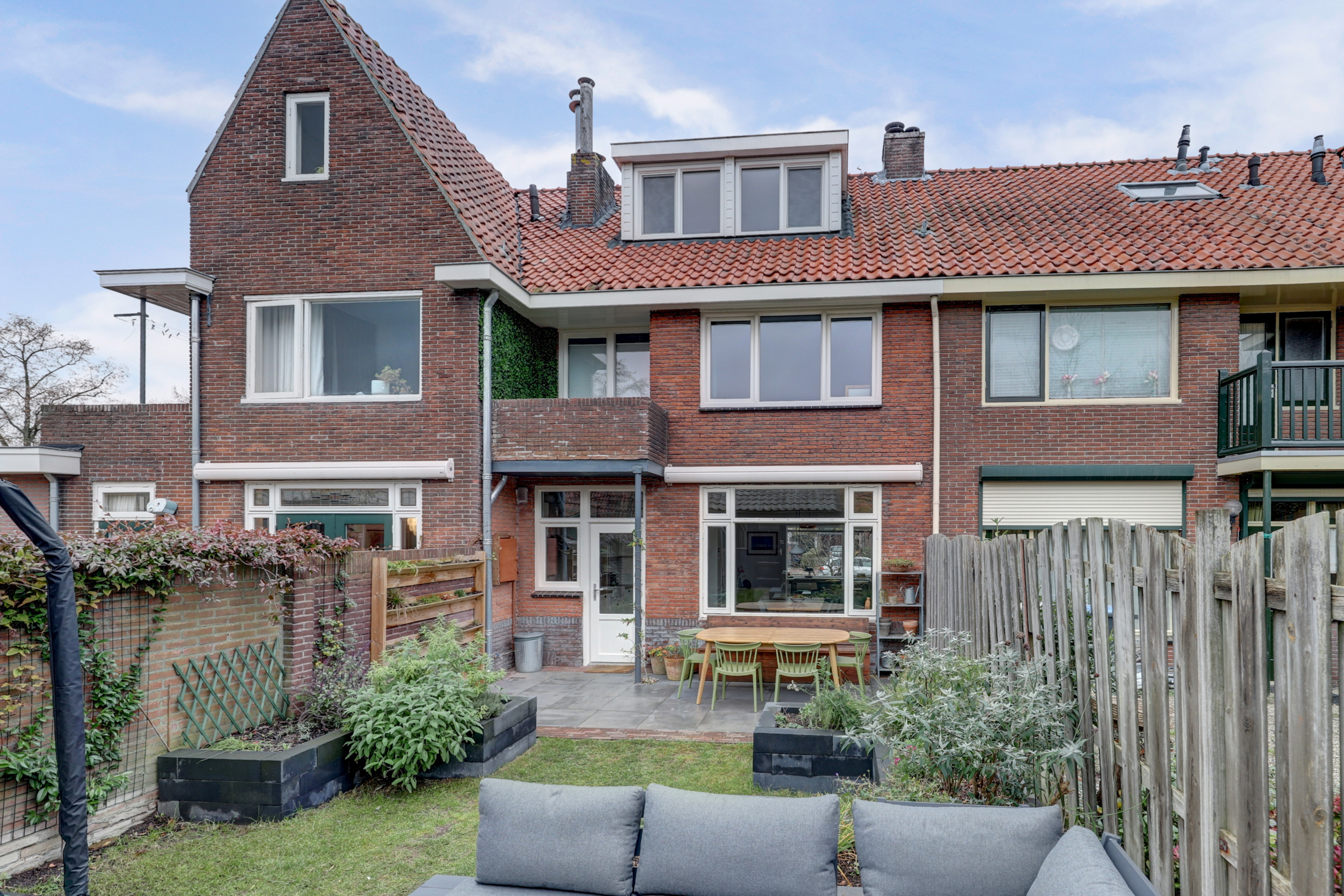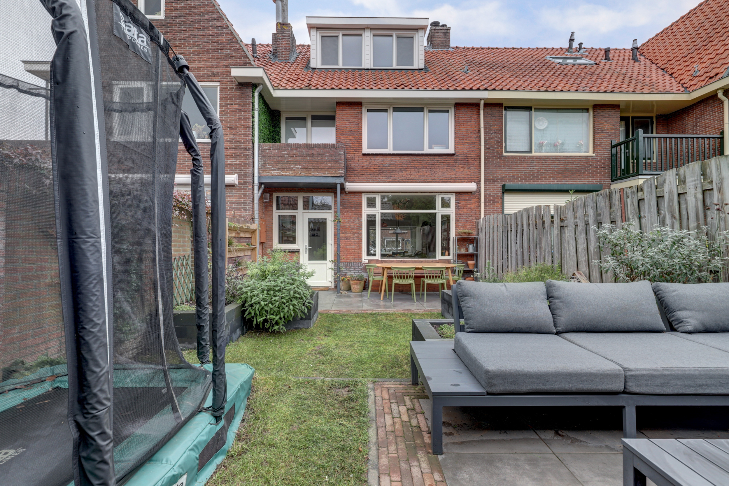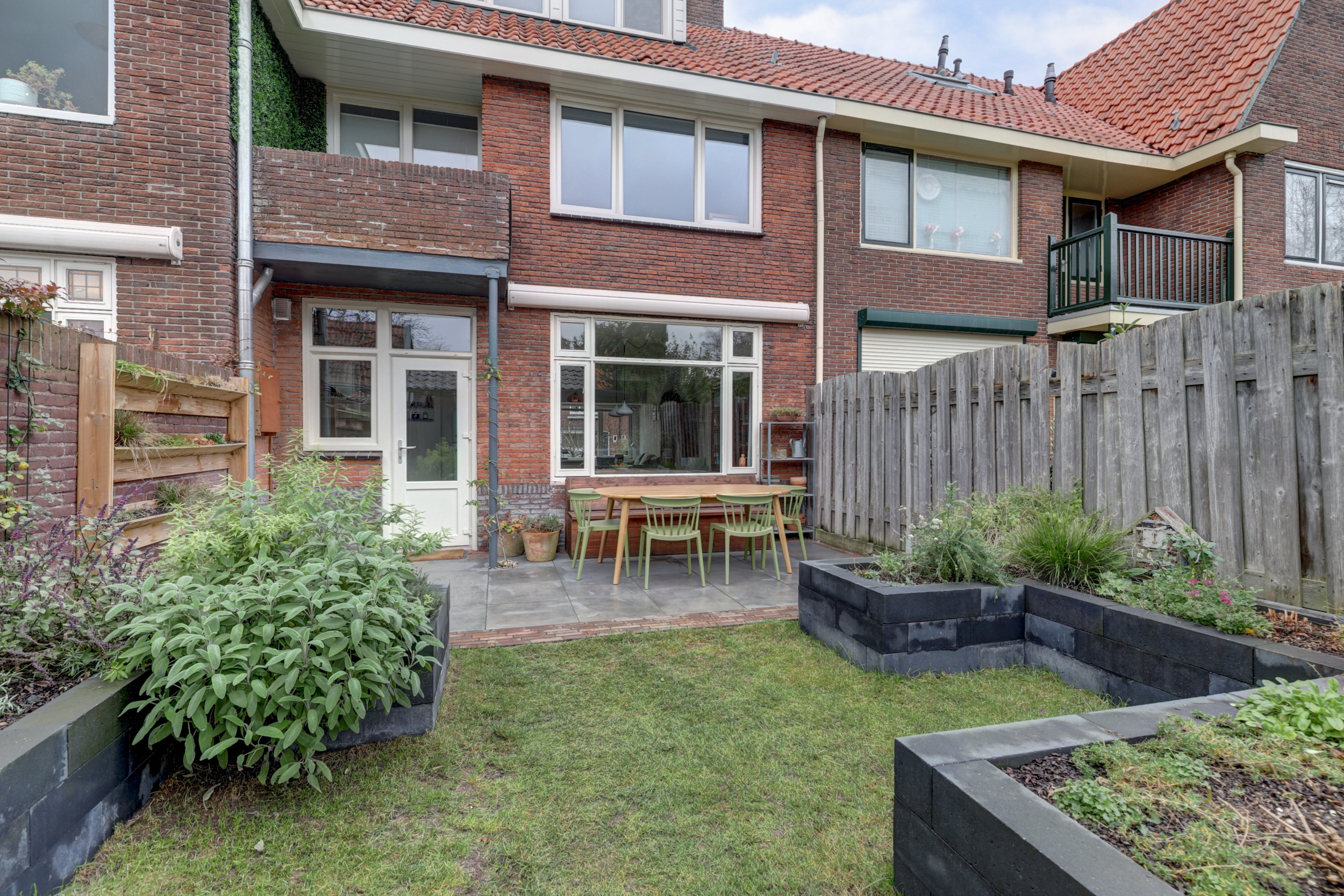 De achtertuin van ca. 55 m² is fraai aangelegd en gericht op het zuidoosten, met twee terrassen, groen, een zonnescherm, achterom en een vrijstaand houten schuurtje. De voortuin is eveneens vernieuwd en verzorgd aangelegd.