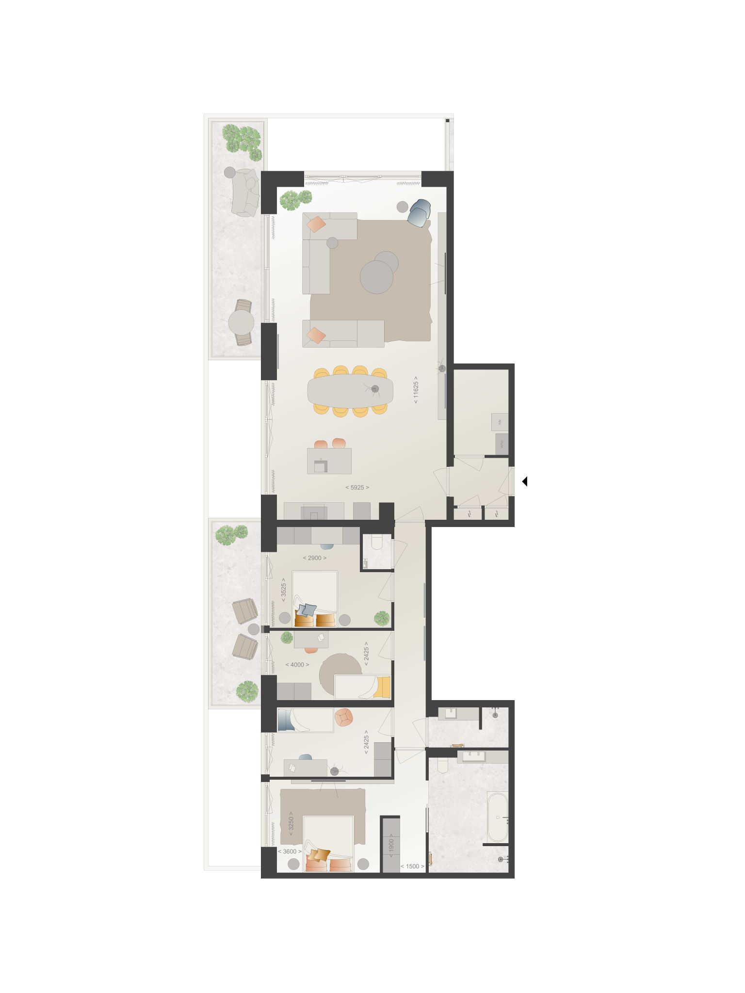 Kom binnen in Flint. Neem de trap of lift naar boven en stap binnen in de entreehal, met toegang tot de berging met plek voor de wasmachine en droger, van dit ruime appartement. De royale en lichte woonkamer en keuken staan in open verbinding met elkaar. Wat een ruimte! Door de grote ramen heb je van alle kanten lichtinval. Vanuit de woonruimte bereik je de gang. Hier vind je 4 slaapkamers, een separaat toilet en 2 luxe en complete badkamers. De eerste is voorzien van een ligbad, inloopdouche, toilet en dubbele wastafel, en de 2e badkamer heeft een douche en wastafel. Gebruik je een van de slaapkamers liever als thuiskantoor? Dat kan natuurlijk ook. Hier vier je het leven. Borrel met vrienden aan een lange eettafel of op een van de ruime balkons. Wat een uitzicht!