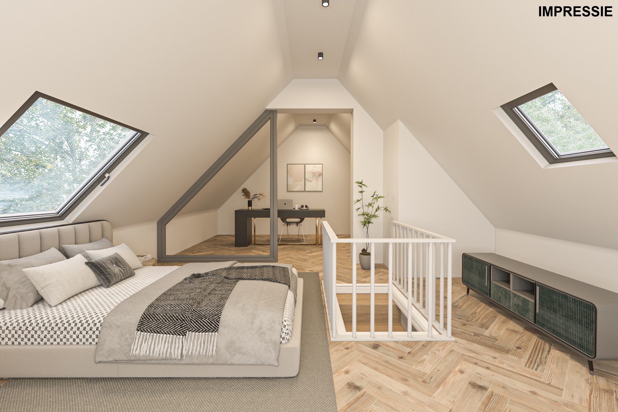 De zolderverdieping is bereikbaar via een vlizotrap en strekt zich uit over de gehele lengte van de woning. Dankzij het daglicht en de stahoogte is dit een volwaardige ruimte met volop potentie – ideaal als thuiswerkplek, logeerkamer of extra slaapkamers. Met een vaste trap maak je hier eenvoudig volwaardig woonoppervlak van.