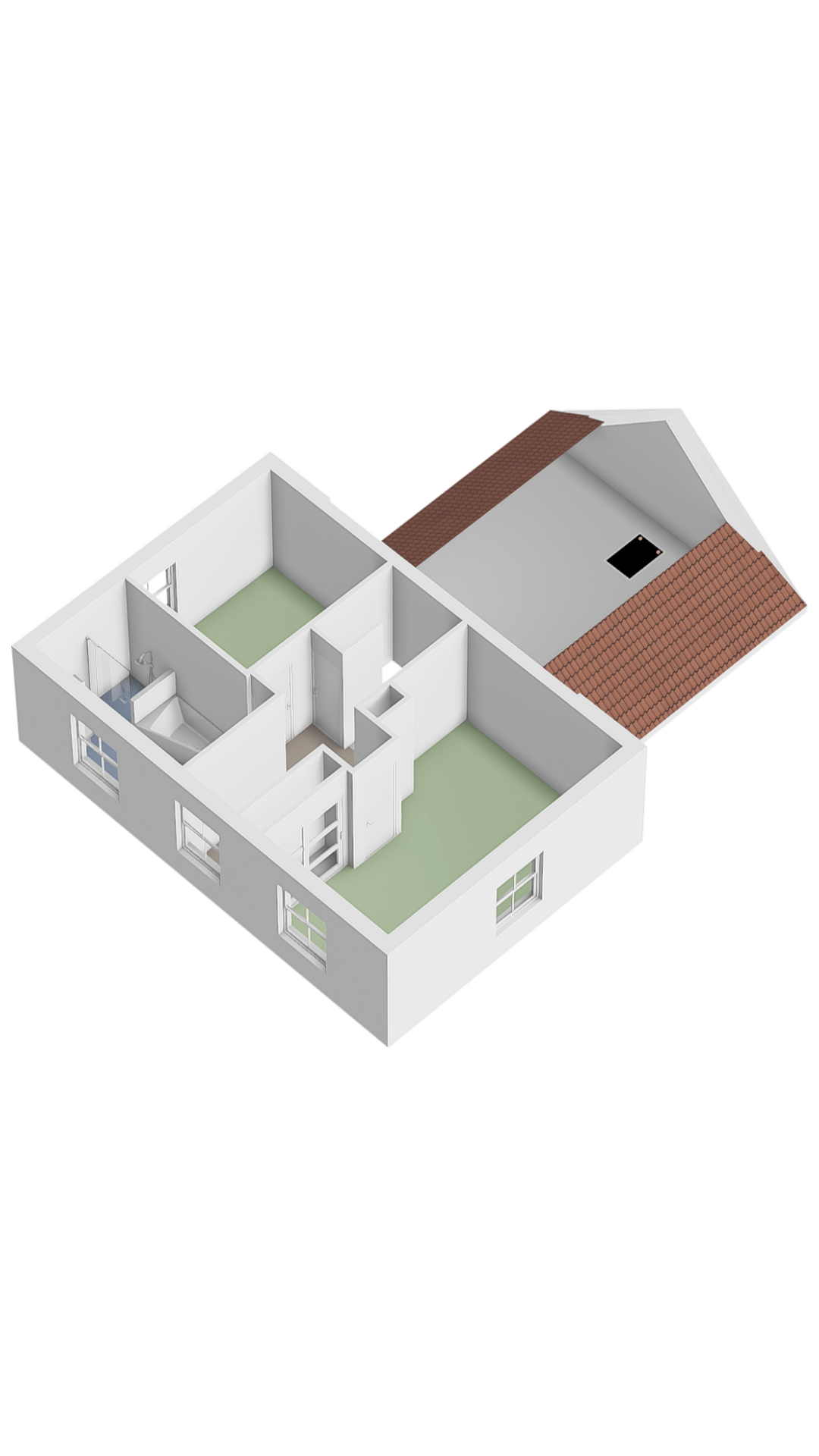 De tweede verdieping biedt nog eens twee slaapkamers. Dankzij de dakramen en de praktische knieschotten zijn dit prettige, lichte kamers met extra bergruimte.