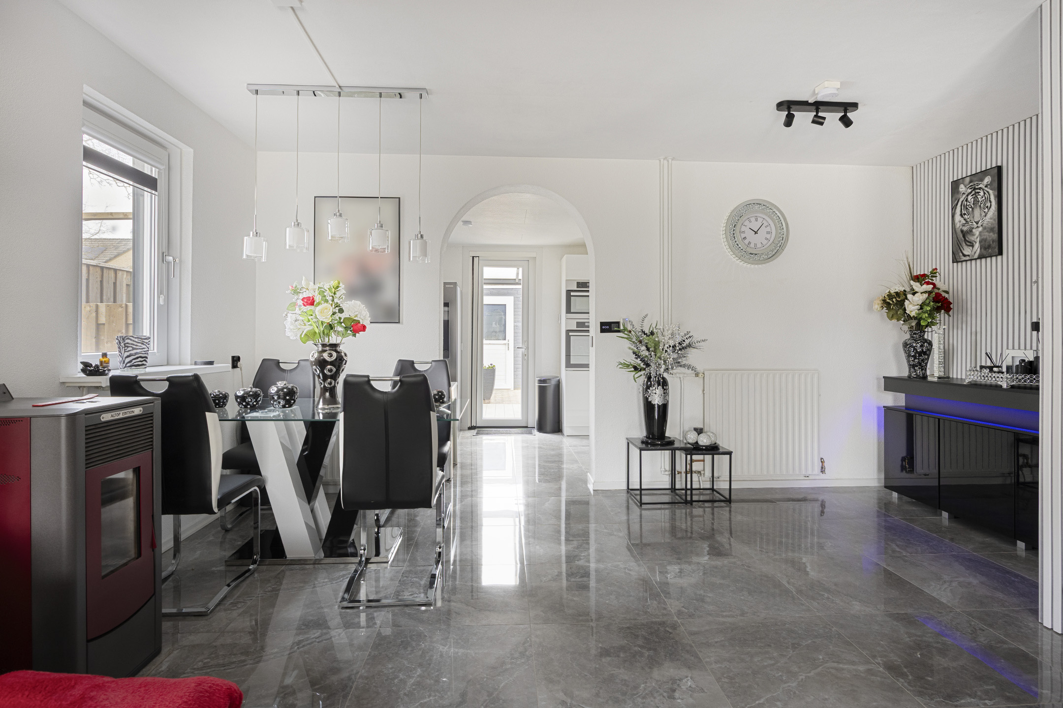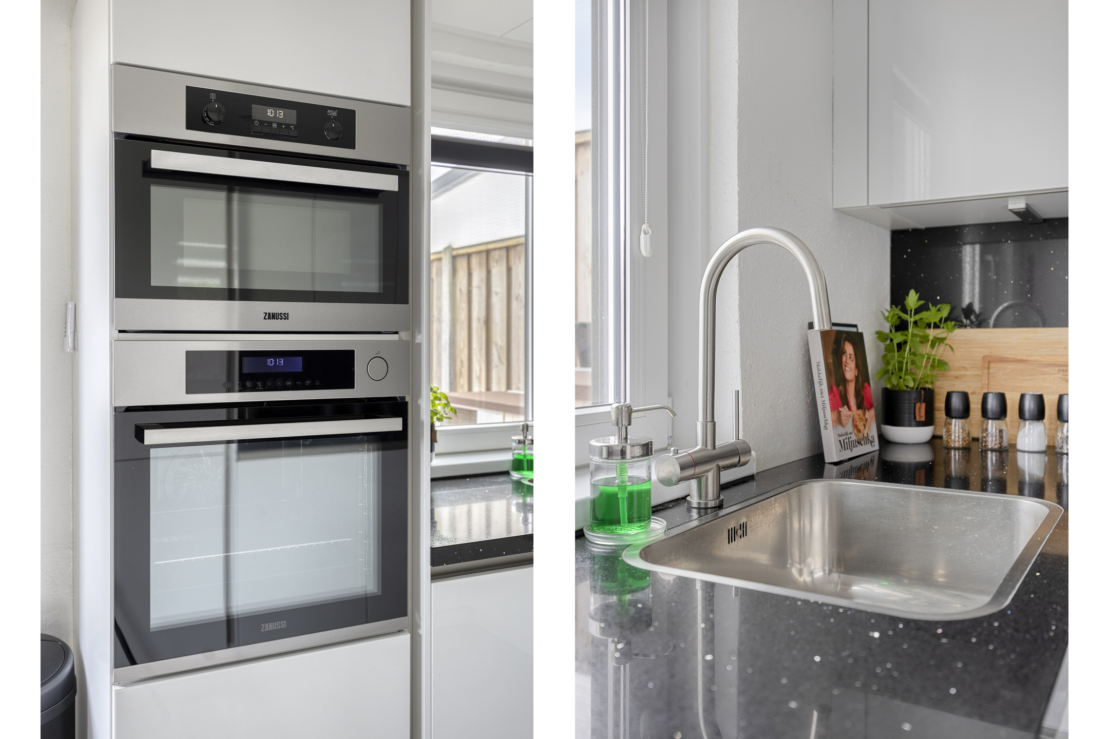 Binnen zie je direct dat er recent is geïnvesteerd. De woonkamer heeft een verzorgde uitstraling en sluit aan op een moderne keuken (2019), praktisch en stijlvol. De vernieuwde badkamer (2023) biedt extra comfort en is voorzien van een elektrische designradiator en heater.