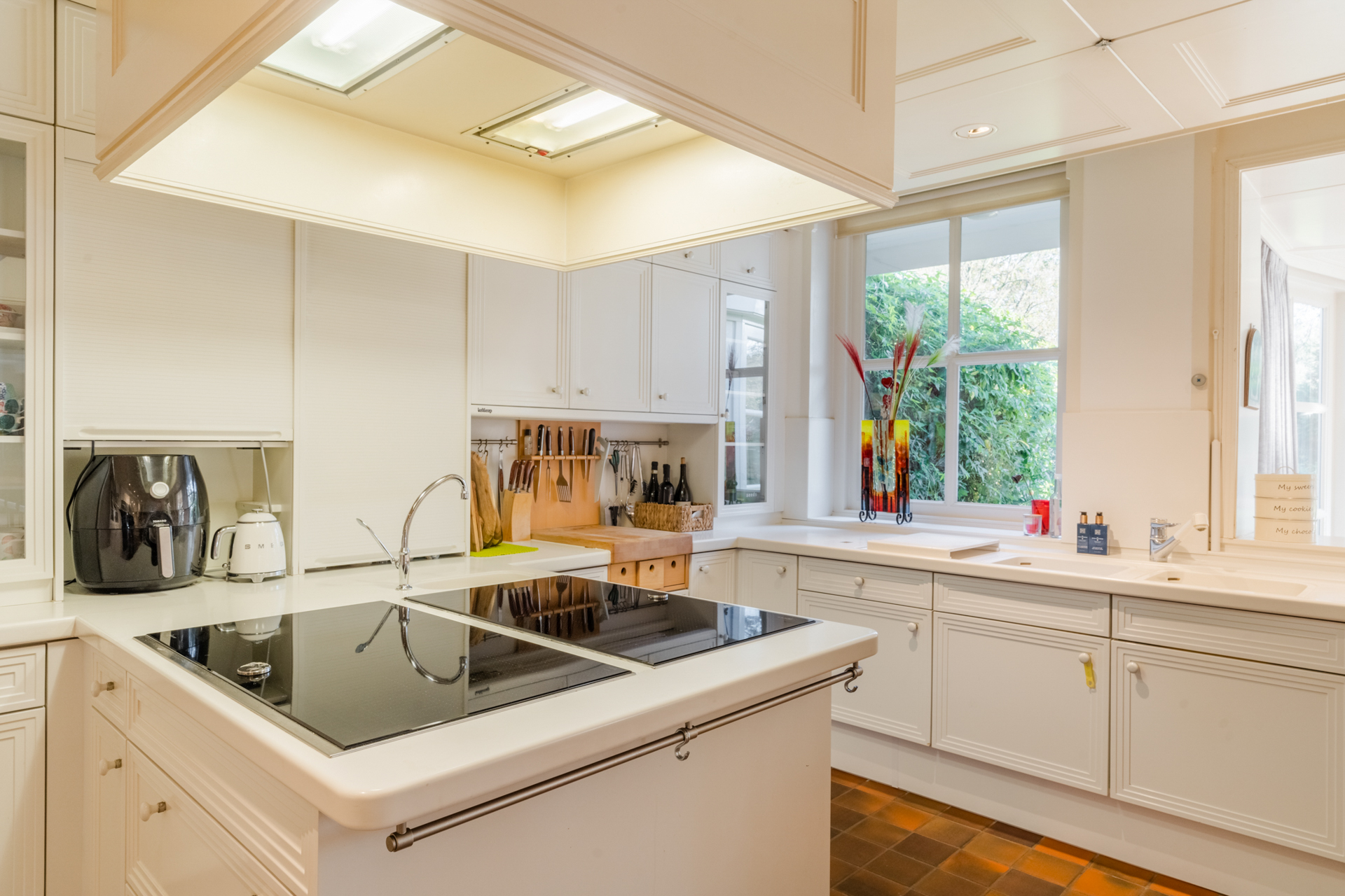 De Siematic-keuken is uitgerust met hoogwaardige apparatuur (Siemens, Miele) en biedt alles wat culinaire fijnproevers wensen – inclusief een wijnkoelkast.