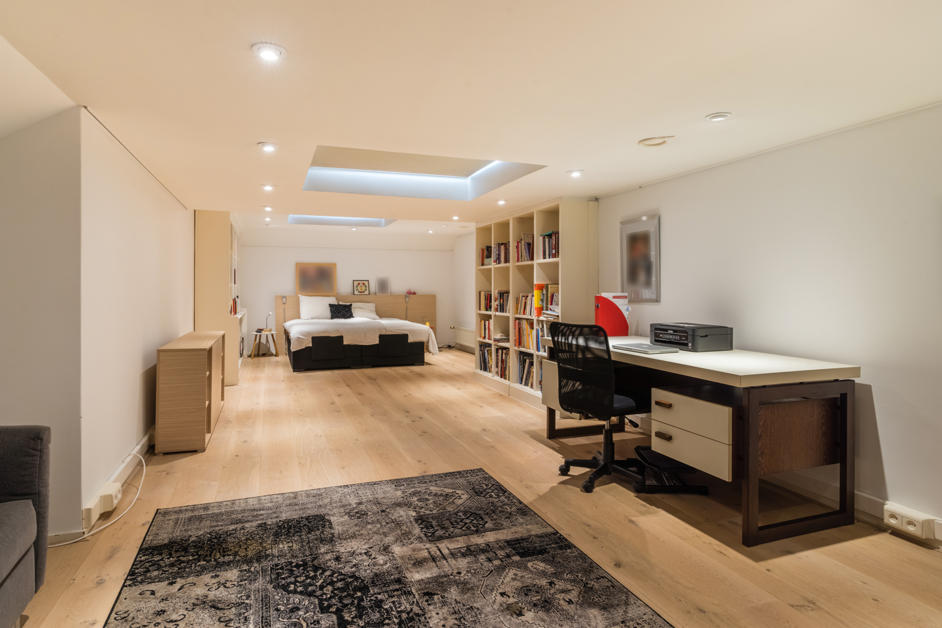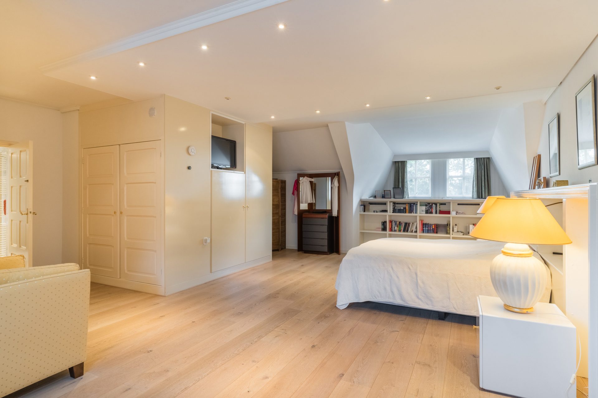 Door het hele huis zijn maatwerk kasten, ledverlichting en schilderlijsten voor kunstwerken geïntegreerd.
