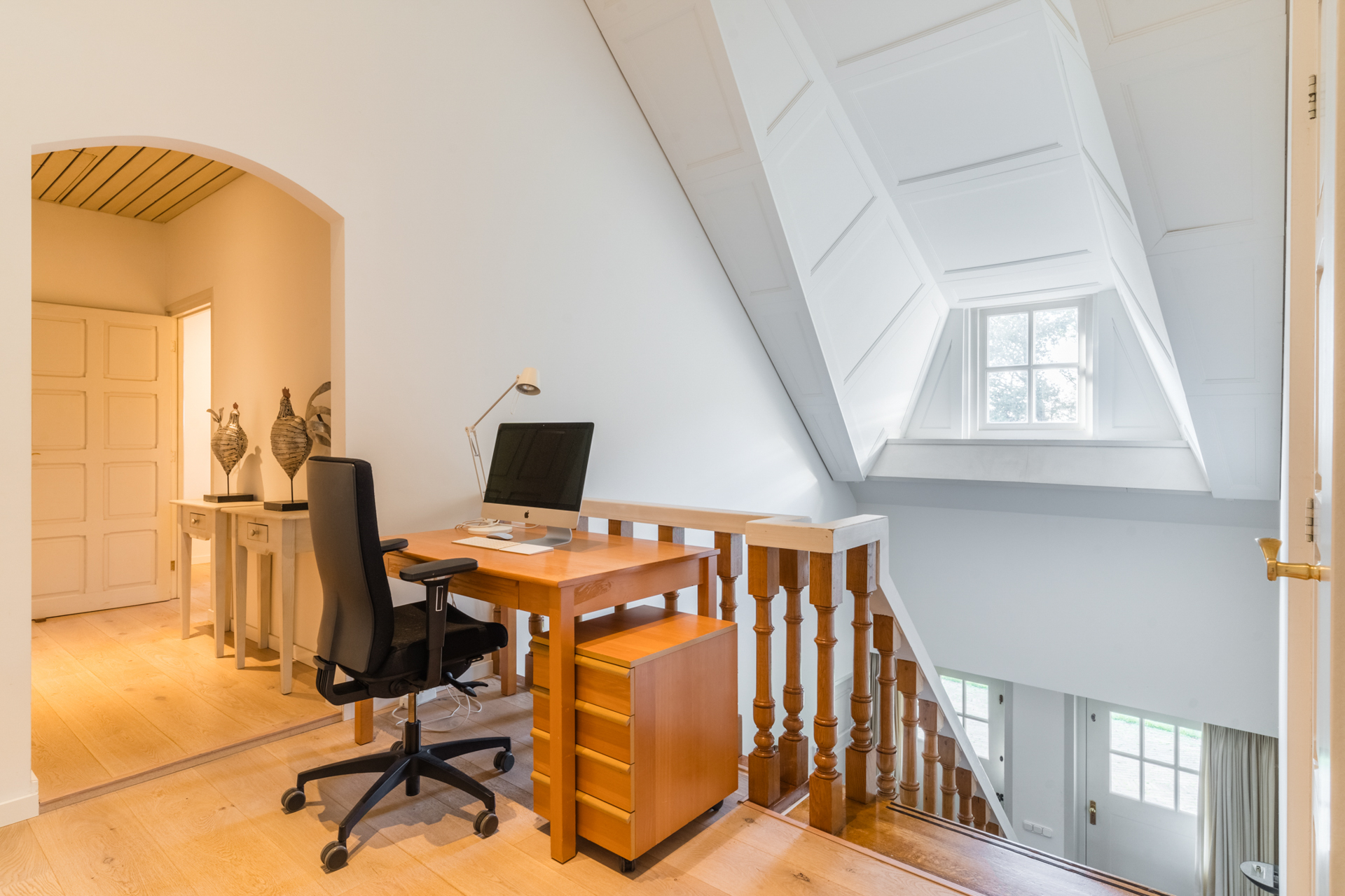 Een L-vormige woon- en eetkamer, drie slaapkamers, een kantoor en een luxe badkamer vormen een sfeervol geheel.