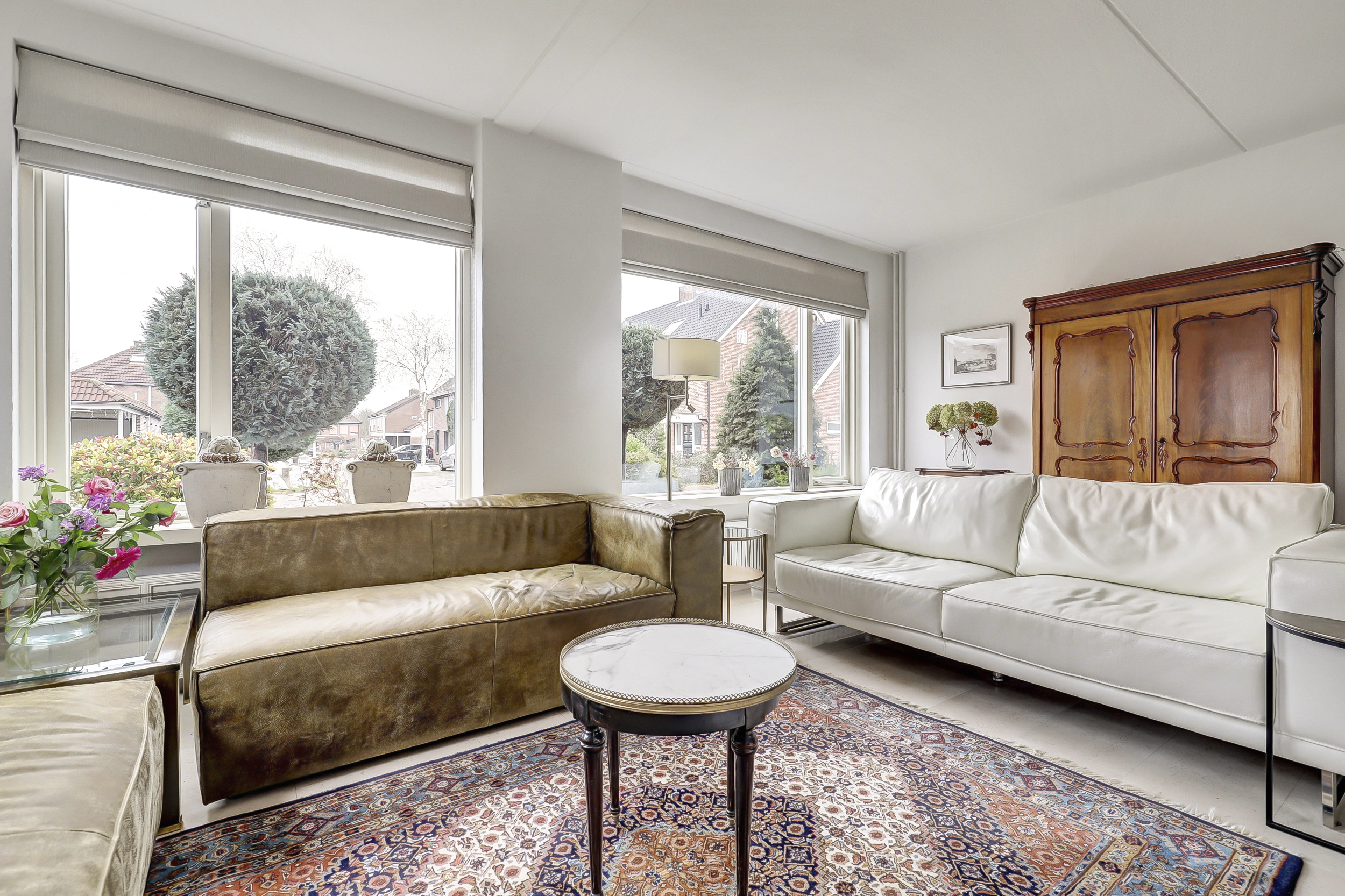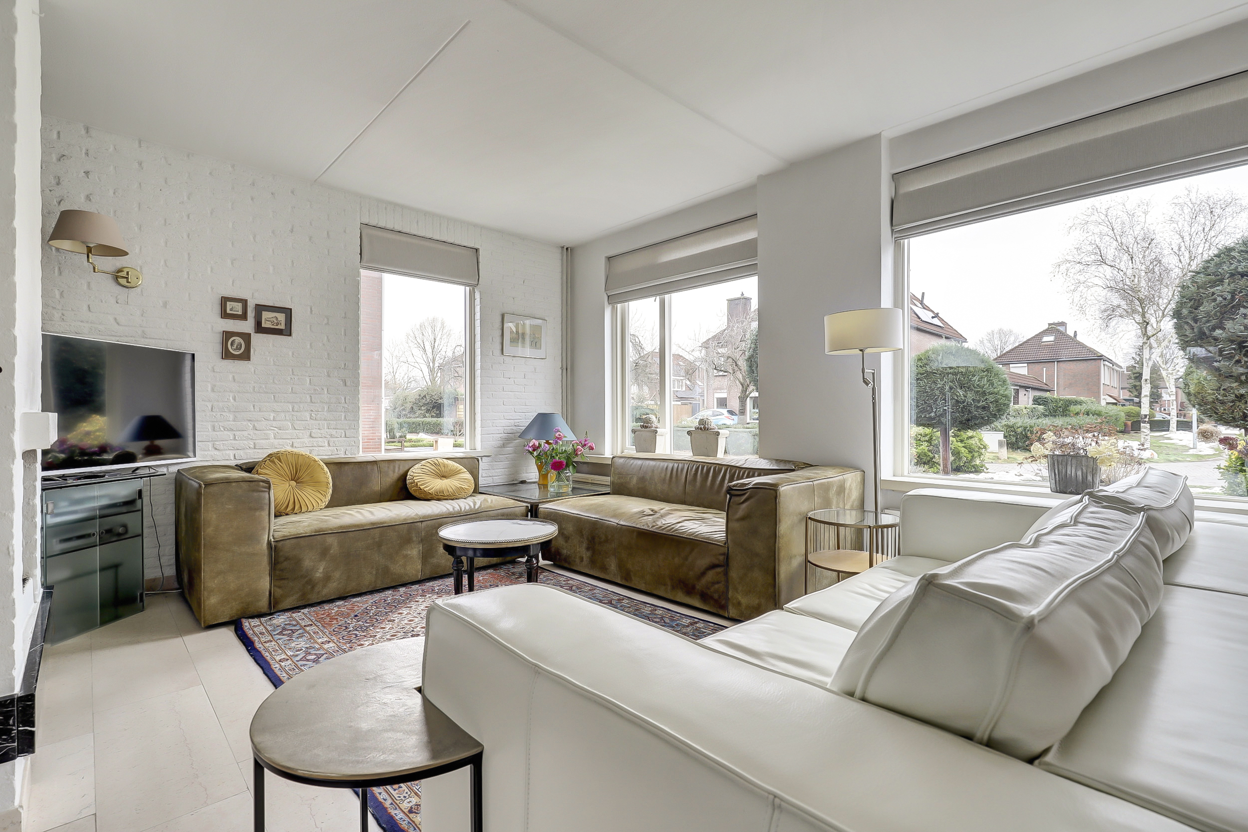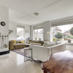 Uitgebouwde en lichte woonkamer met ramen aan meerdere zijden