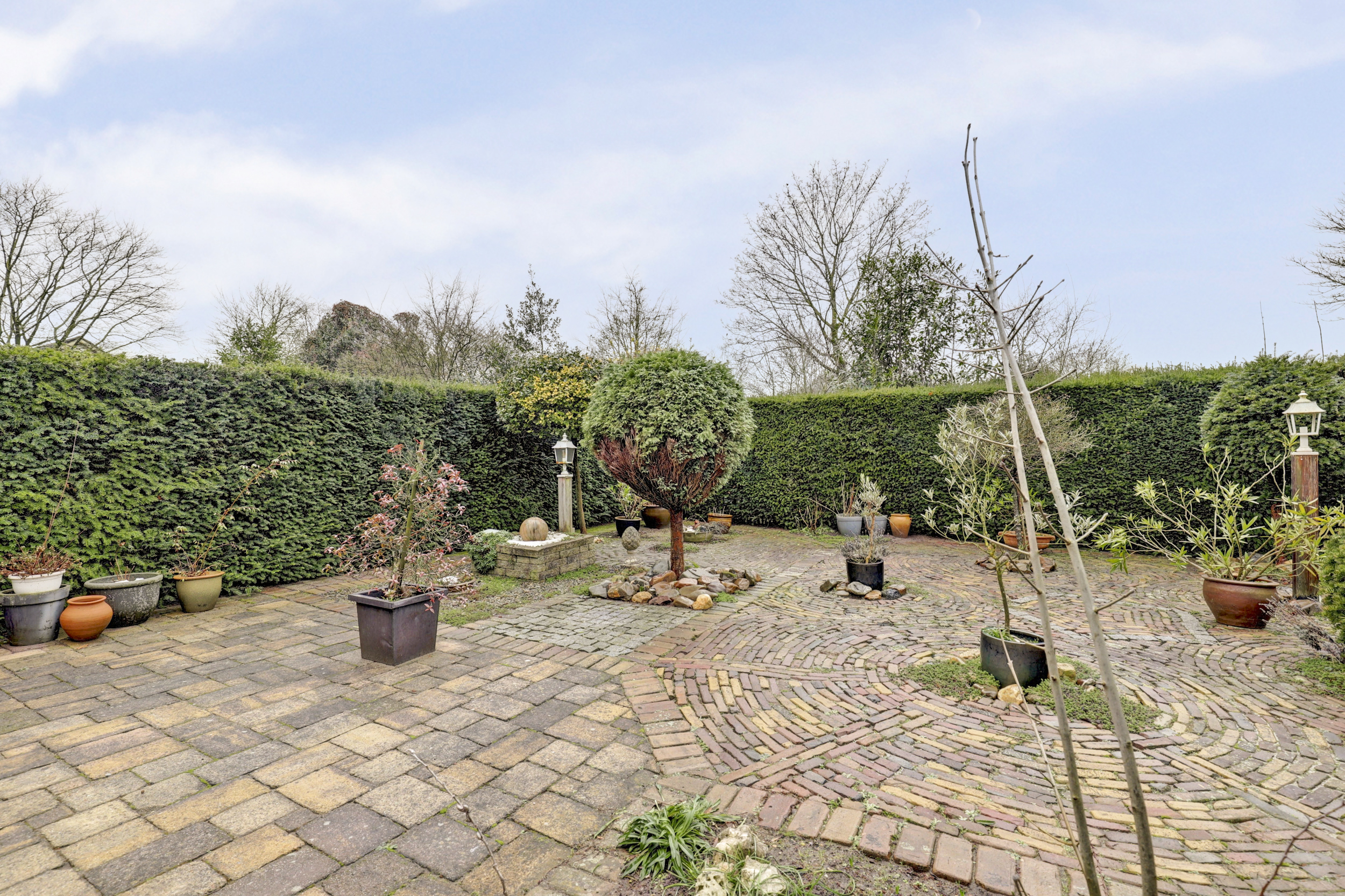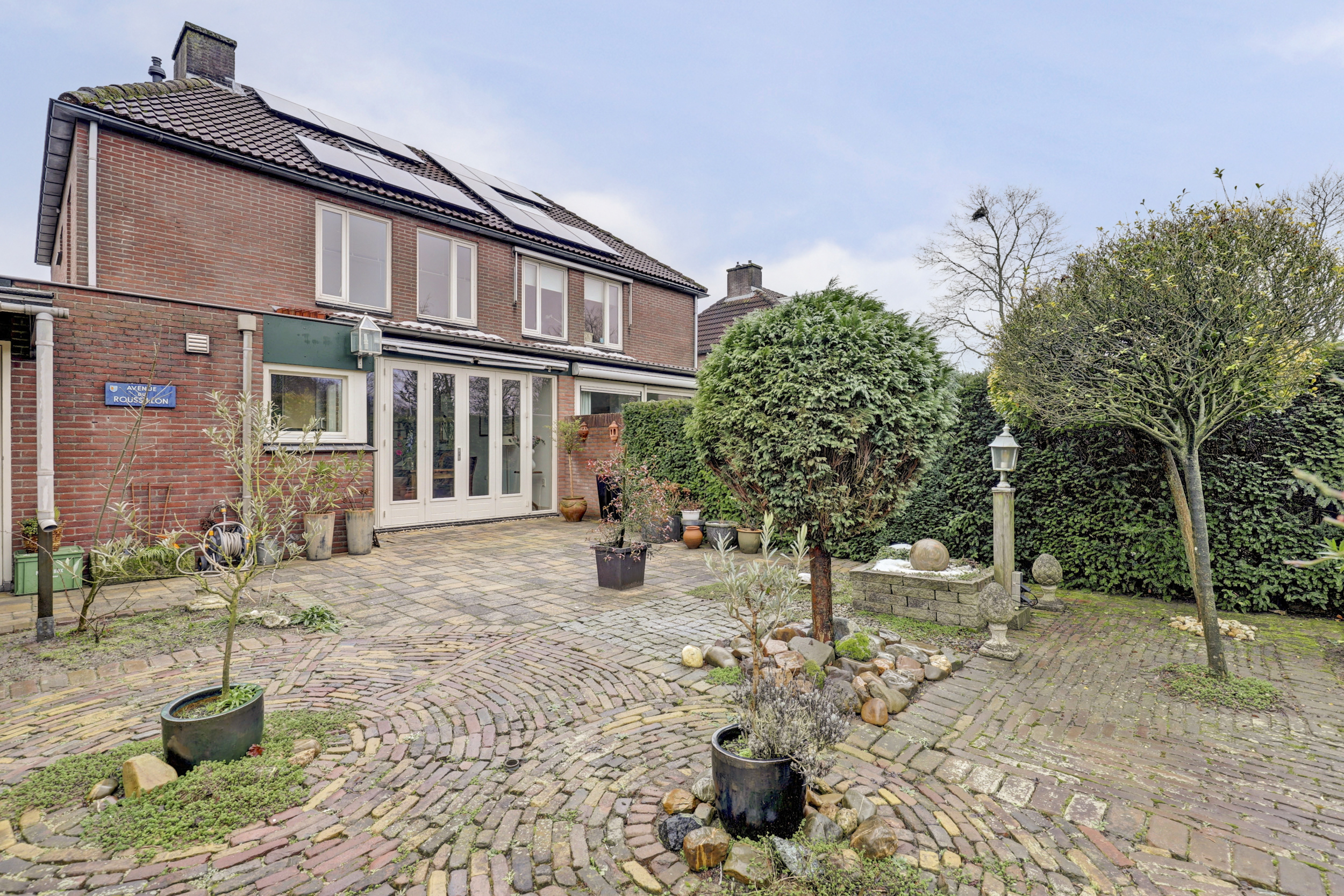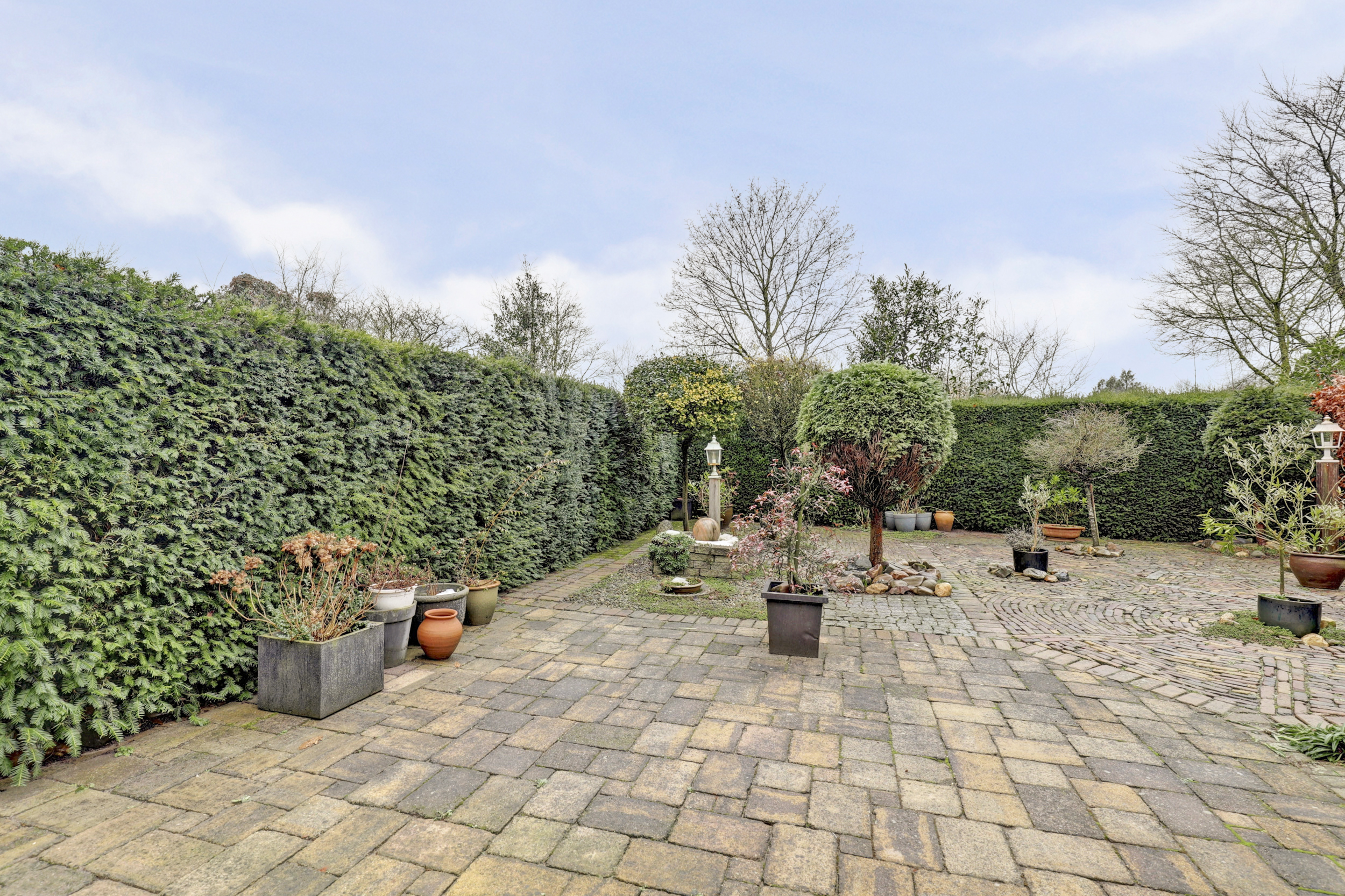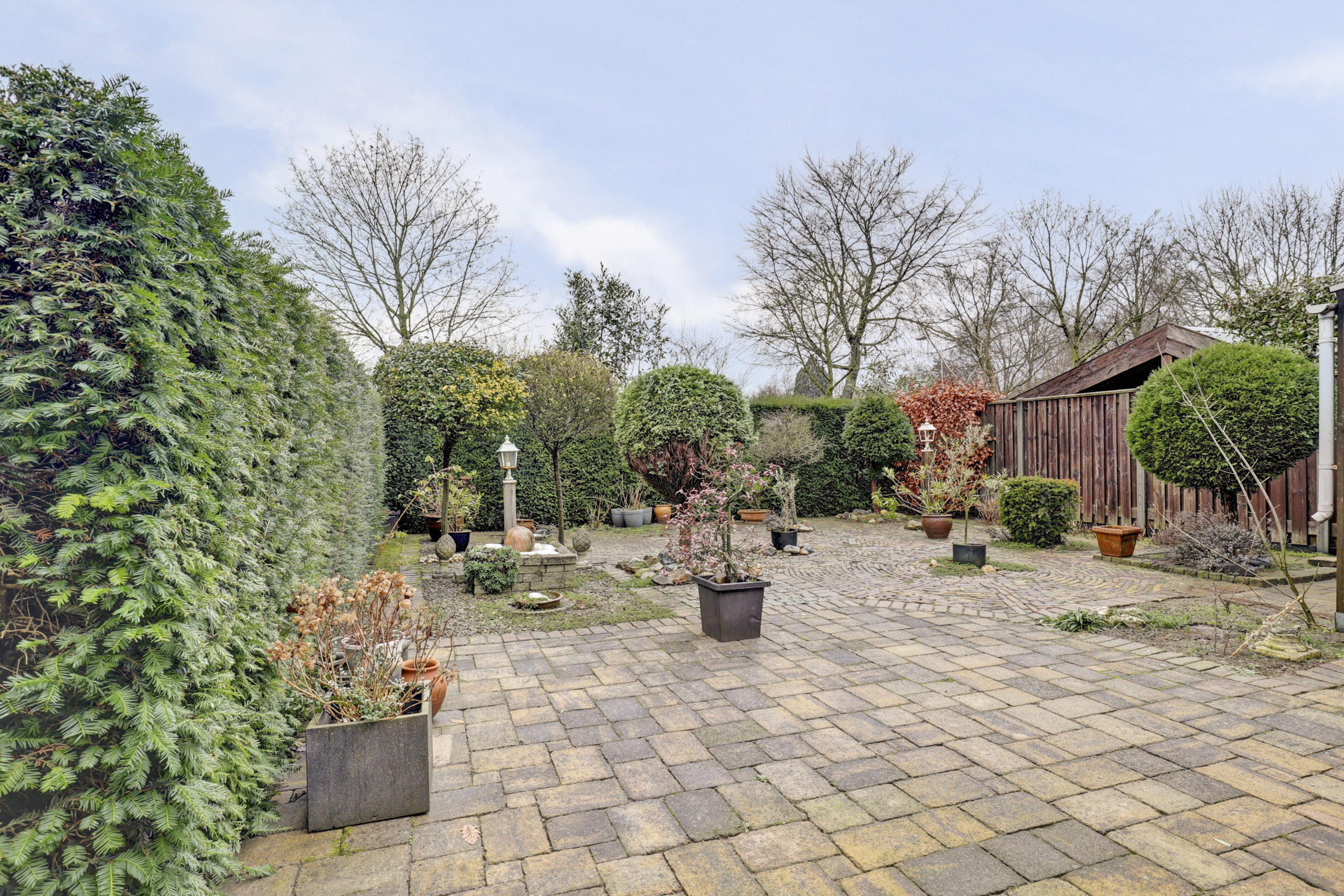 Openslaande deuren naar de verzorgde achtertuin op het westen