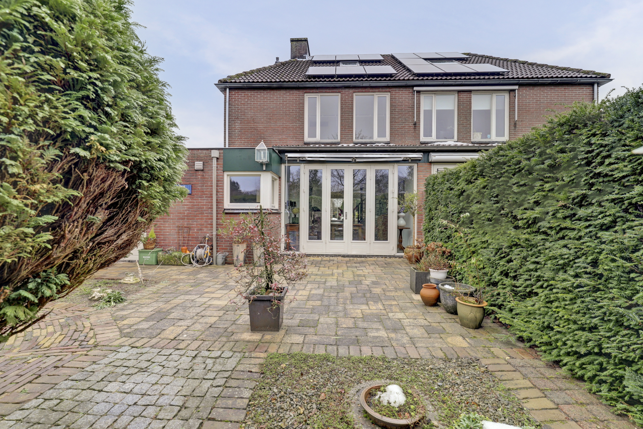 De achtertuin is verzorgd aangelegd en gelegen op het westen, waardoor je hier tot in de avond van de zon kunt genieten. Daarnaast is er een zonnescherm boven het terras, buitenkraan, elektrapunten en houten berging met elektra en kleine overkapping. Door de vrije ligging is er veel vrijheid en privacy in de tuin. Een heerlijke plek om rustig te kunnen genieten. De voortuin en oprit zorgen voor een nette uitstraling en parkeren op eigen terrein.