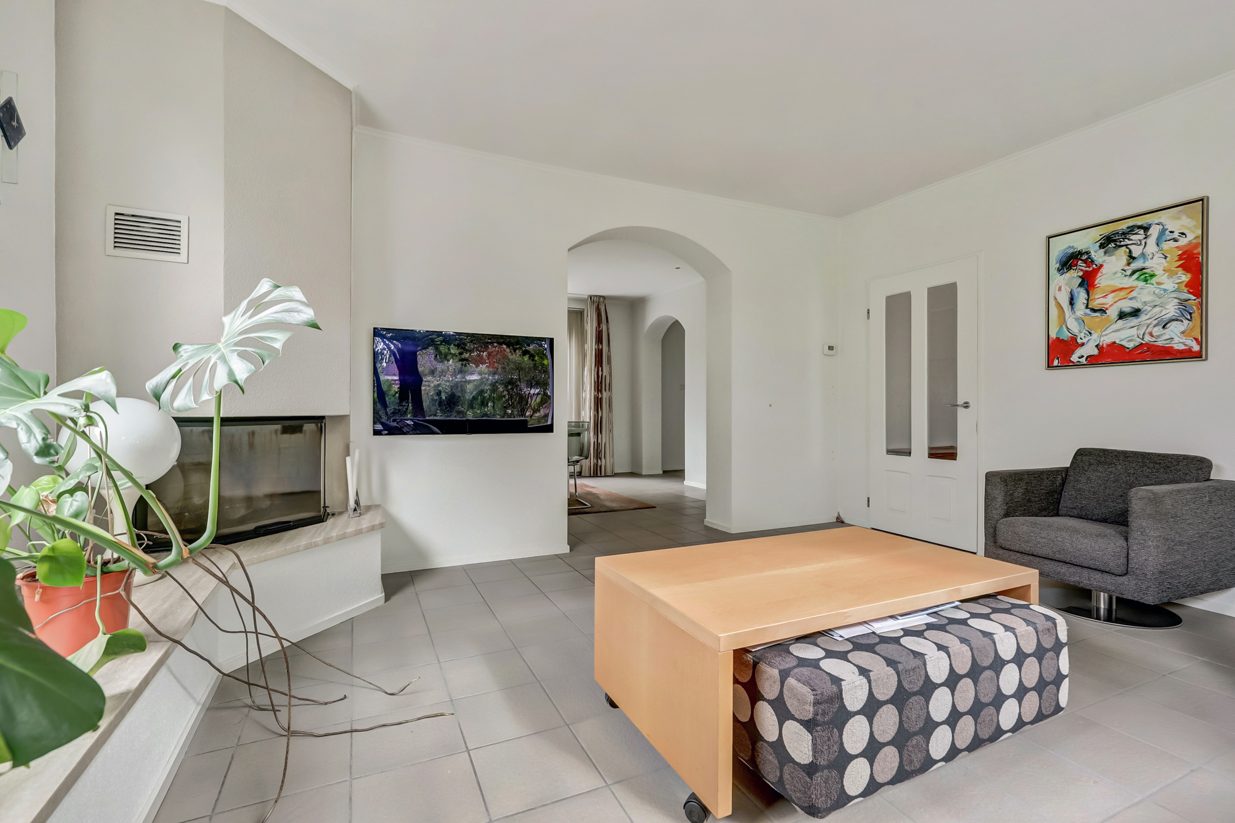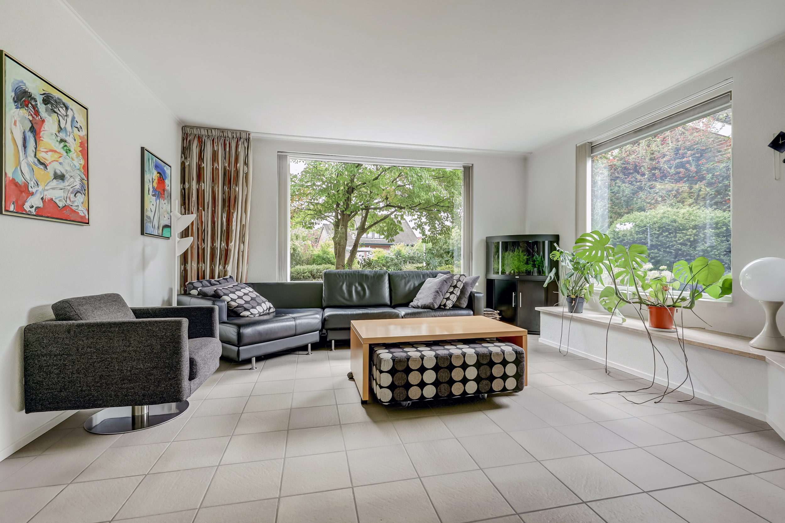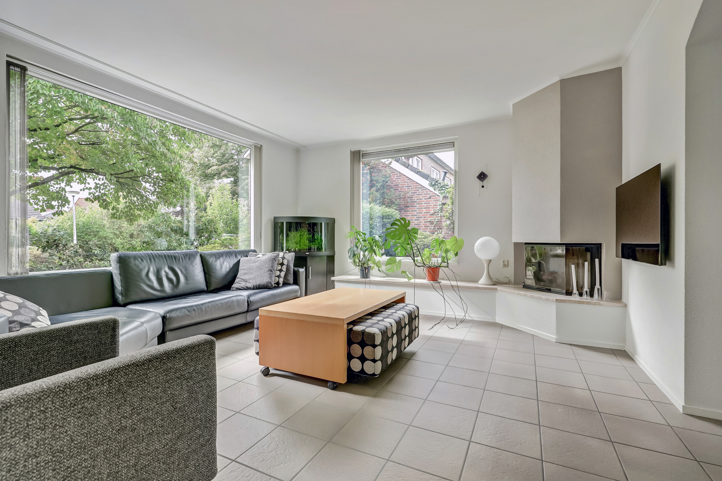 + Fijne woonkamer met veel lichtinval en openhaard;