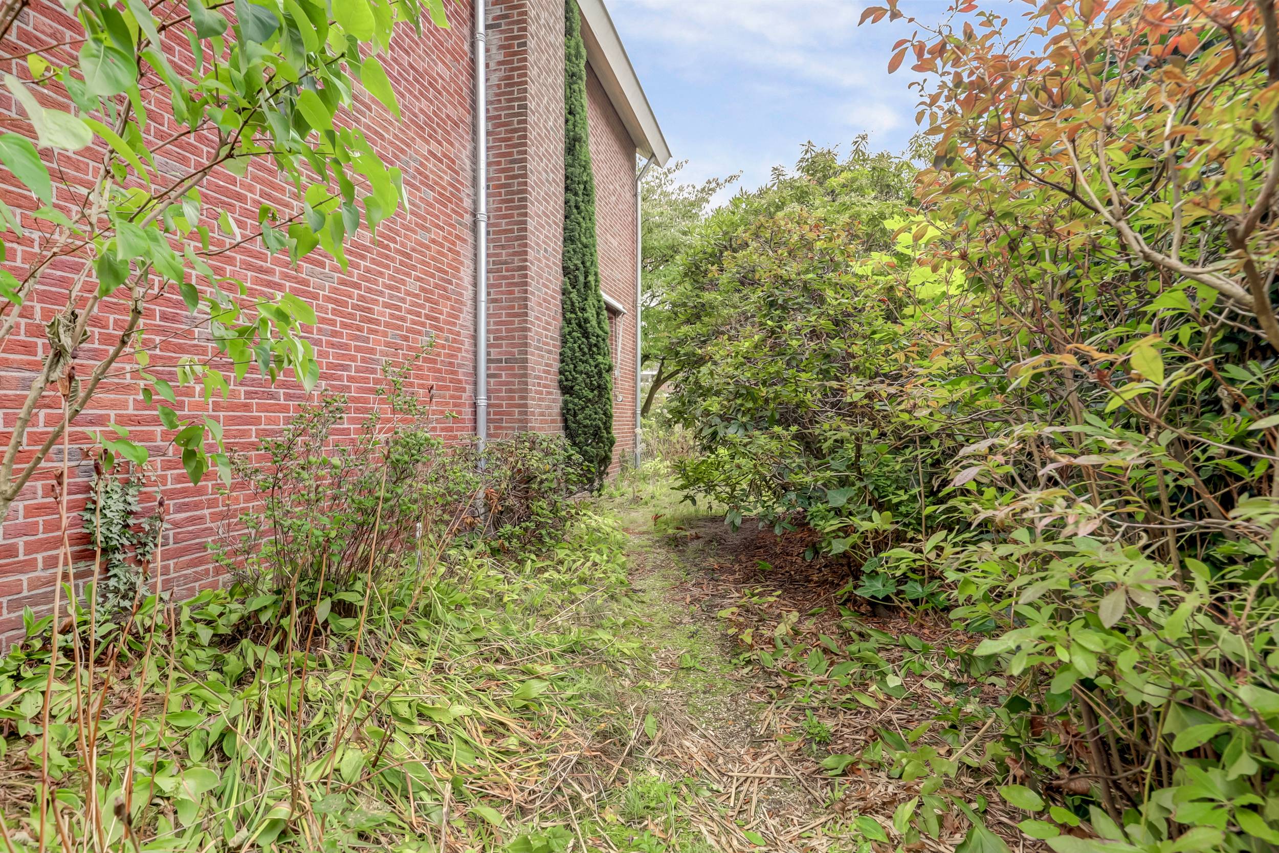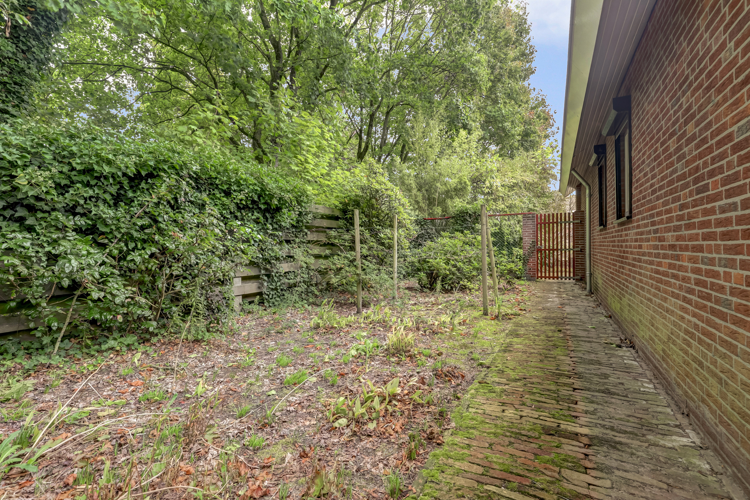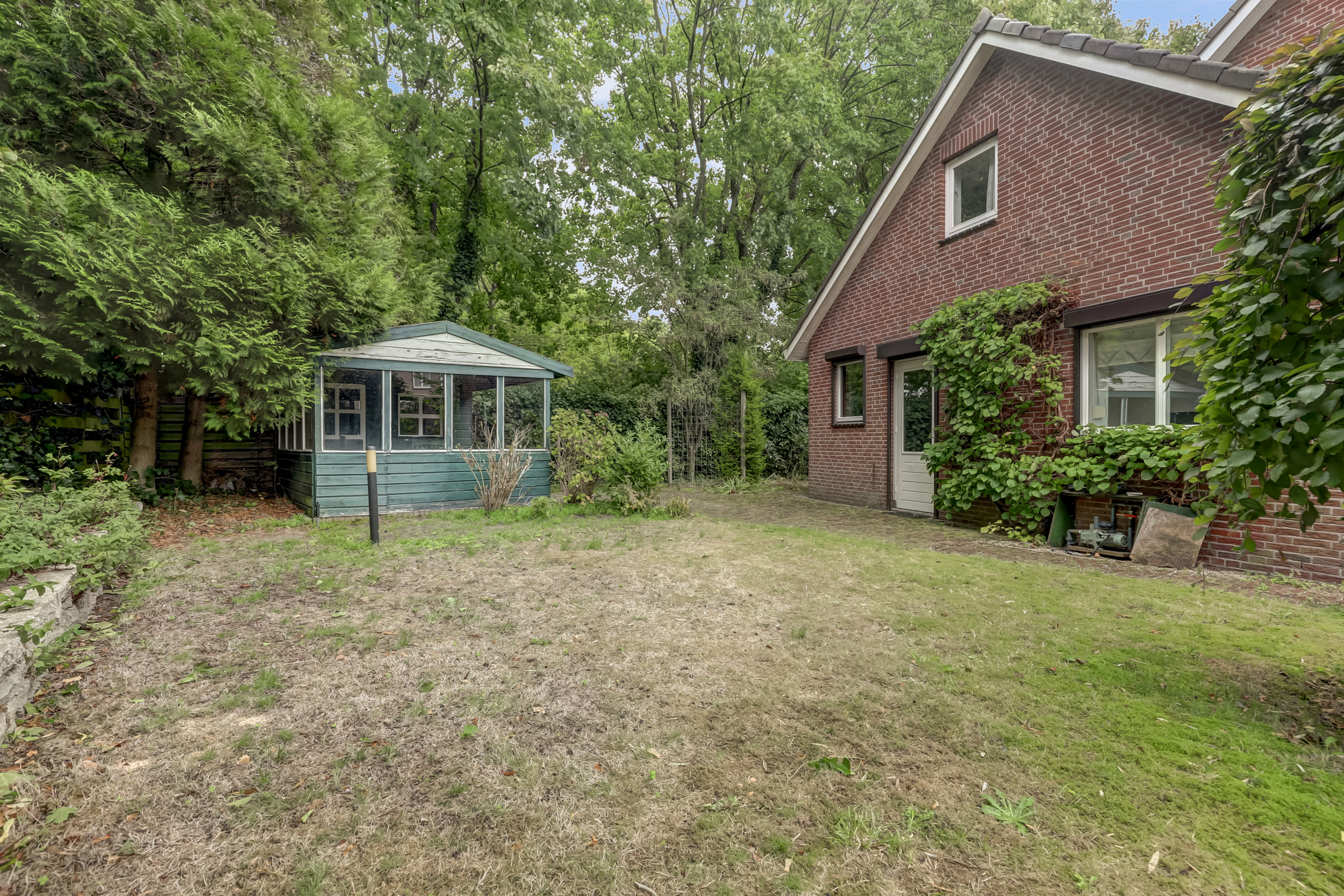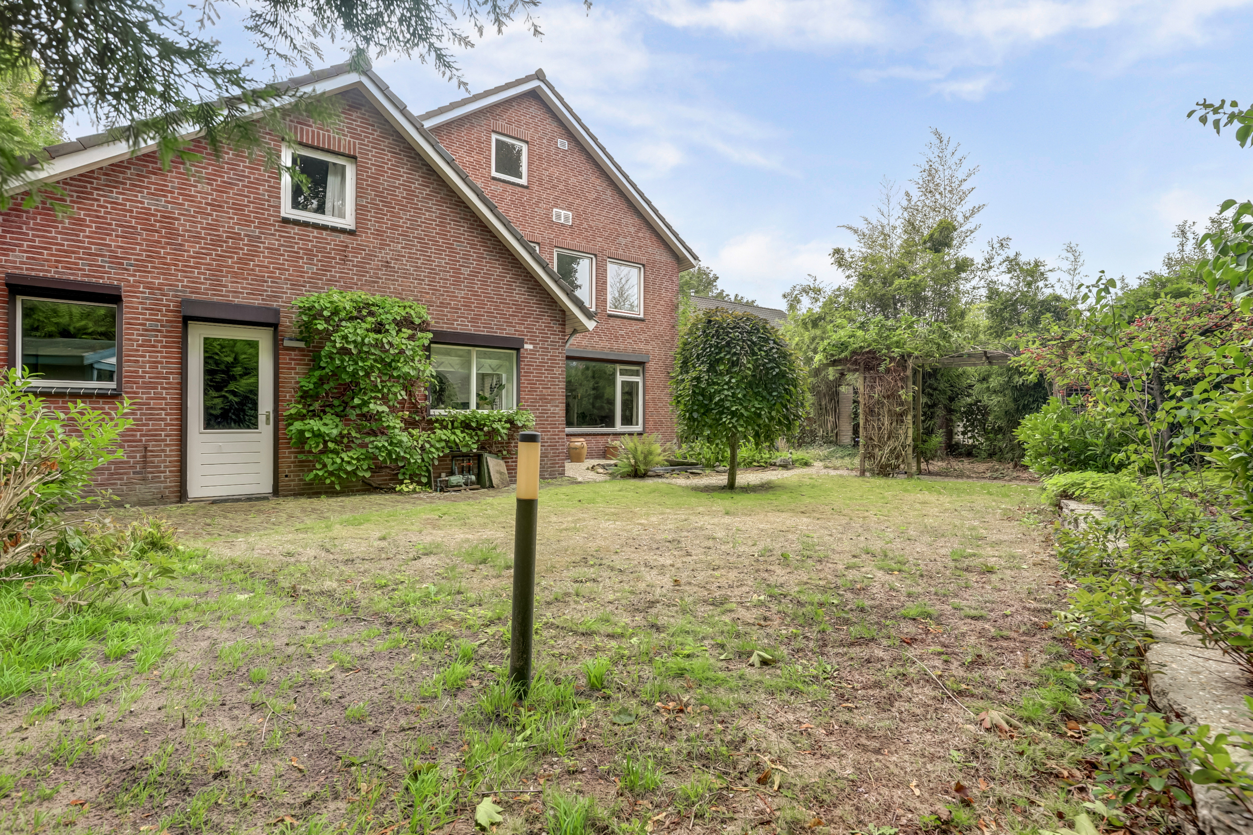 De tuin rondom het huis is groen en verzorgd aangelegd, met oude klinkerpaden, borders, een vijver, gazon en diverse zitjes waar je de hele dag door van zon en schaduw kunt genieten. Dankzij de vrije ligging van de achtertuin geniet je hier van optimale privacy. Naast de inpandige garage is er ook nog een vrijstaande houten berging (ca. 6 m²) met veranda, ideaal voor de fietsen of tuingereedschap en een natuurlijke pergola, waar je heerlijk onder kunt zitten. Parkeren kan eenvoudig op eigen terrein en/of in de ruime garage (geschikt voor 2 auto’s).