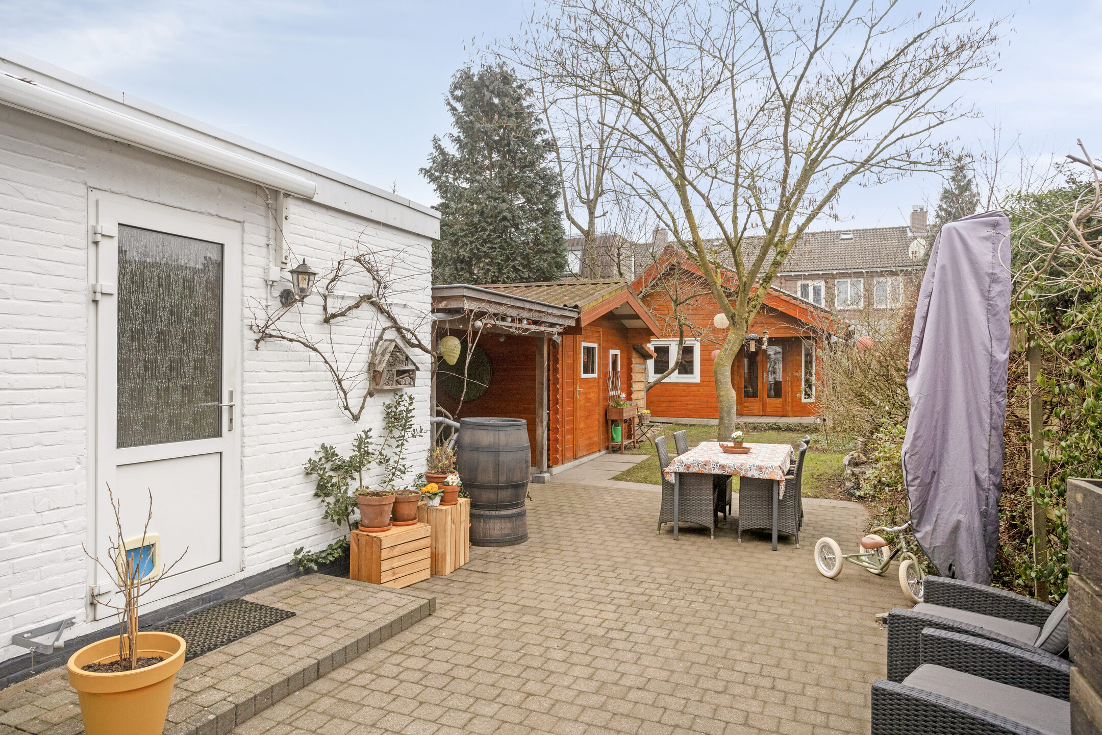De woning is gebouwd op een fijn perceel met ruimte aan de voor-, zij, en voornamelijk de achterzijde. Aan de voorkant een groene buffer naar de straat, aan de zijkant de eigen oprit voor parkeergemak en een diepe, groene achtertuin met een hoge mate van privacy.