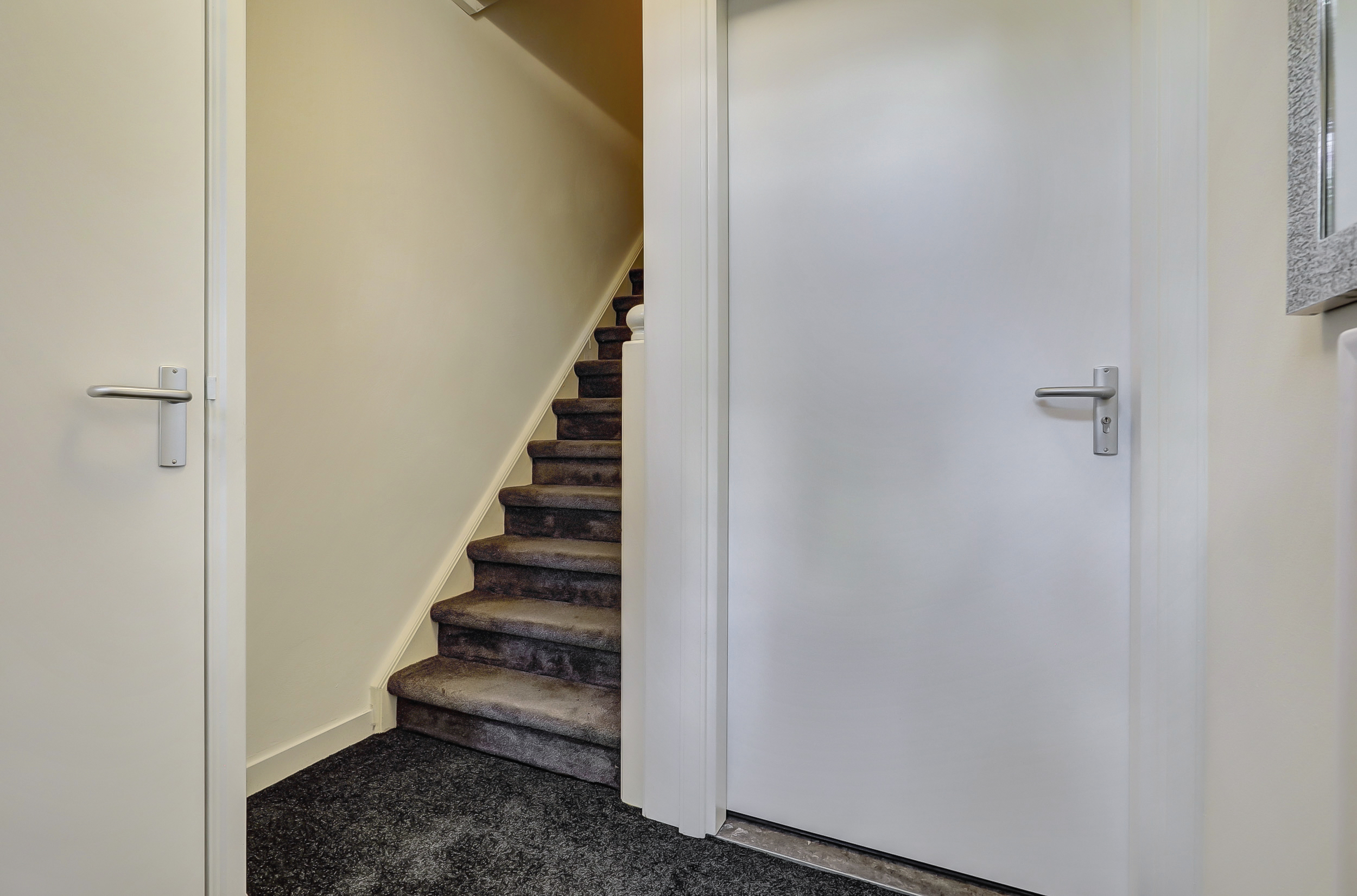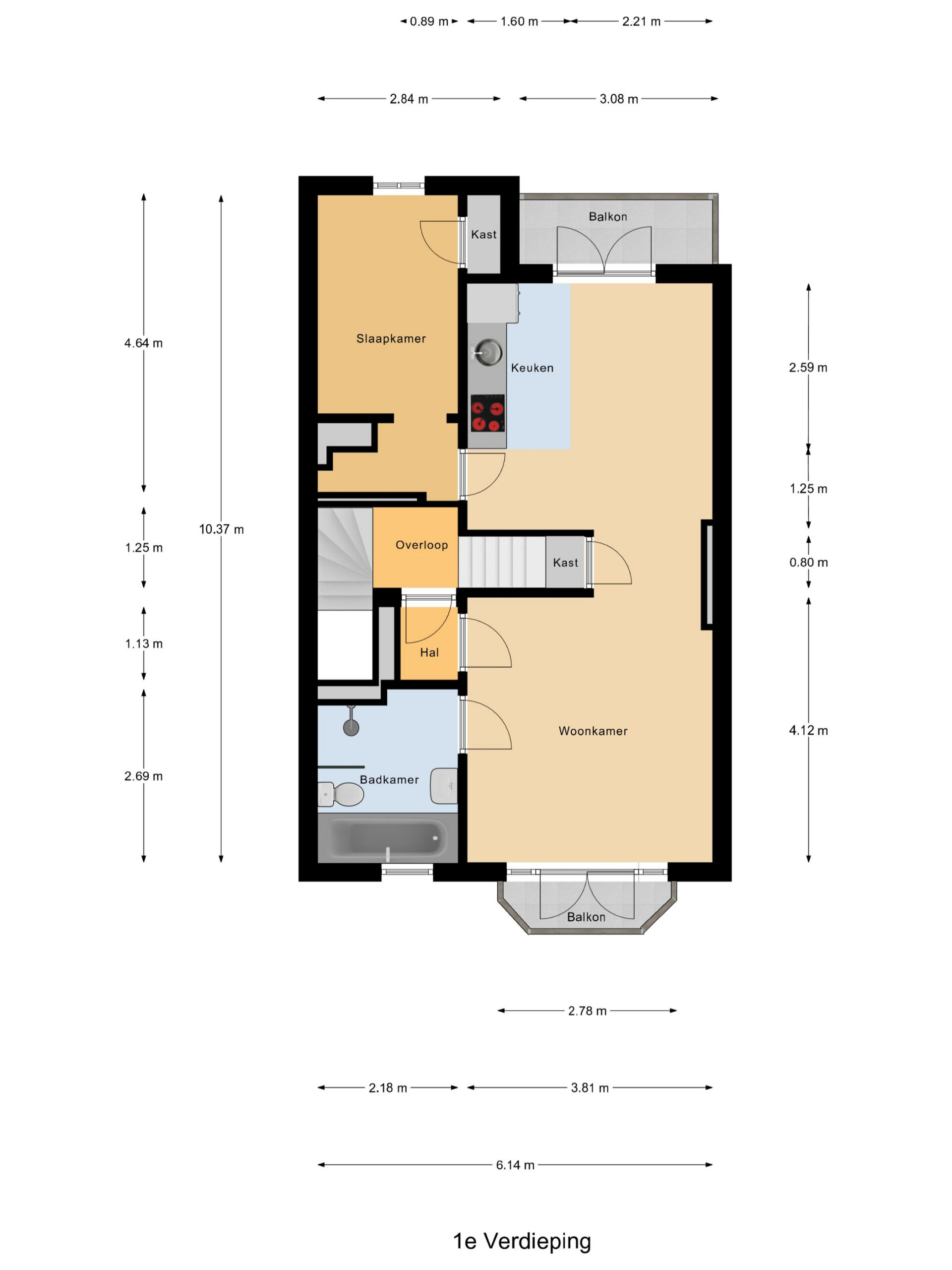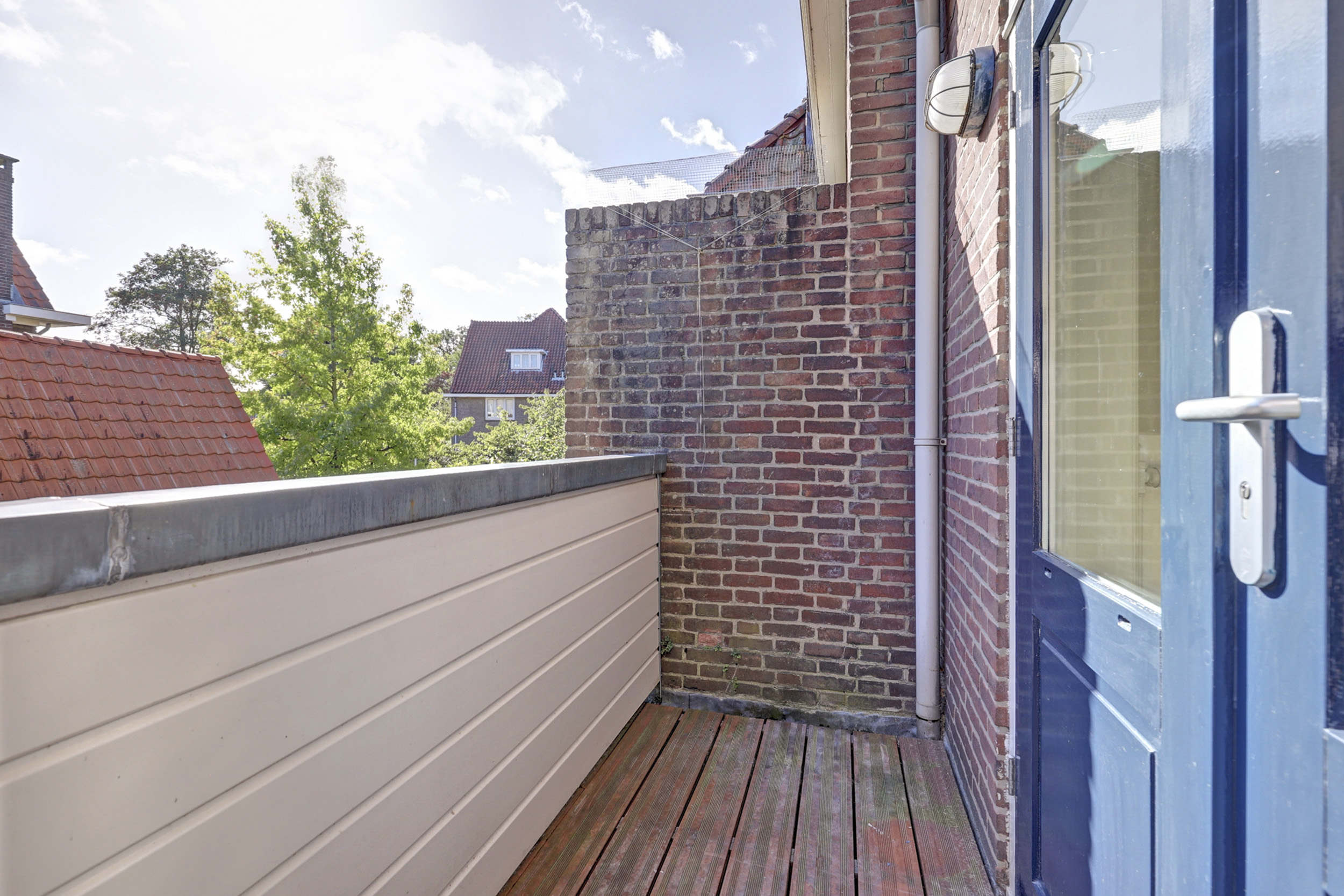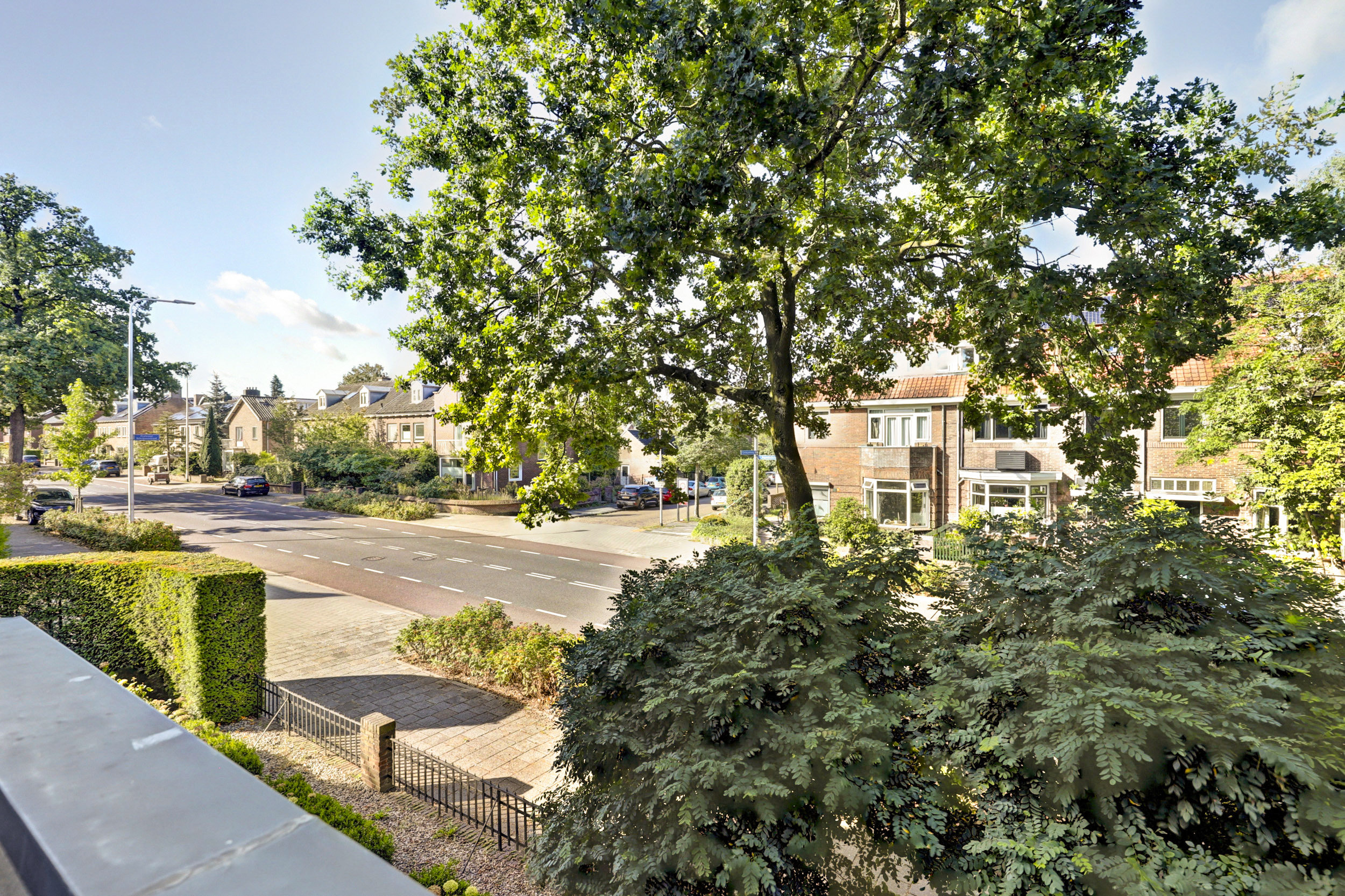 Je komt binnen via de gezamenlijke toegangsdeur en wordt meteen verrast door het imposante trappenhuis met prachtige glas-in-looddetails — echte jaren ’30-charme. Vanuit hier bereik je de eerste verdieping, waar het appartement is gelegen. Op de overloop krijg je toegang tot de royale woonkamer en suite. Dankzij de openslaande deuren naar de balkons aan zowel de voor- als achterzijde geniet je van een overvloed aan licht en een fijne, open sfeer. De woonkeuken is praktisch ingericht met een inductiekookplaat, spoelbak, koelkast met vriesvak en combioven, en biedt toegang tot het balkon aan de achterzijde. Tot slot beschikt de woning over een slaapkamer met vaste muurkast en een badkamer met ligbad, inloopdouche, wastafel en toilet.