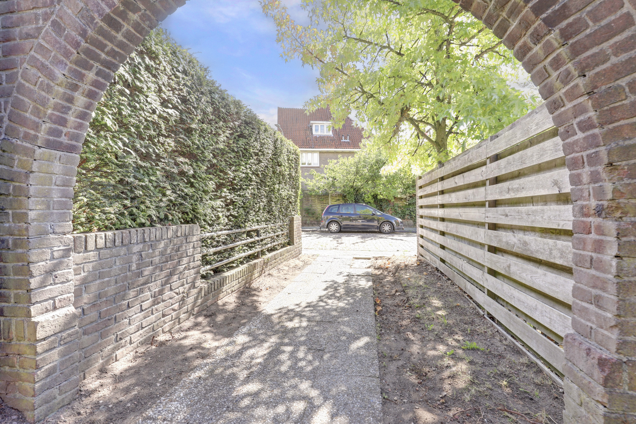 Aan de achterzijde van het perceel bevindt zich een strook ten behoeve van de tuin welke aan dit appartement toebehoort. Hierop is een recht van overpad gevestigd voor de appartementen op de huisnummers 55 en 55A.