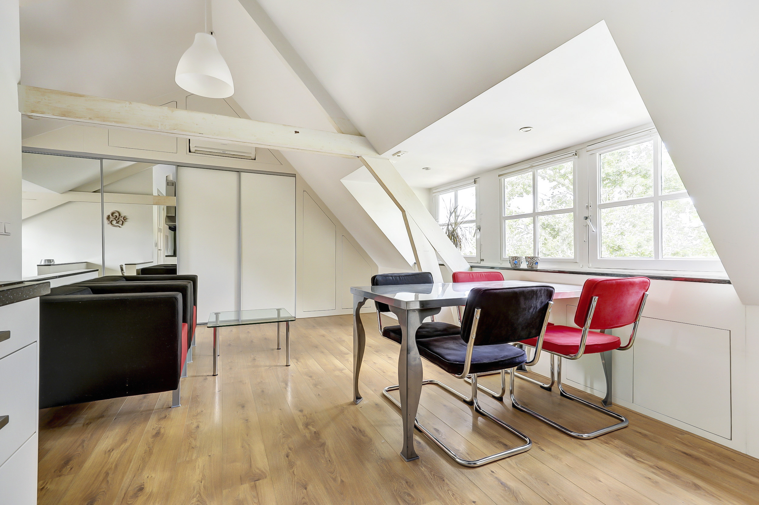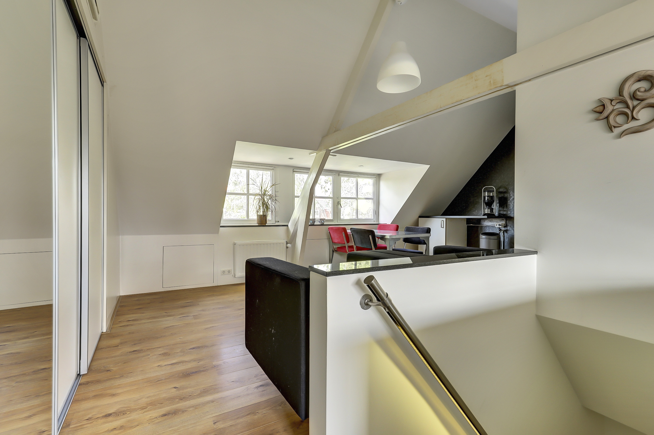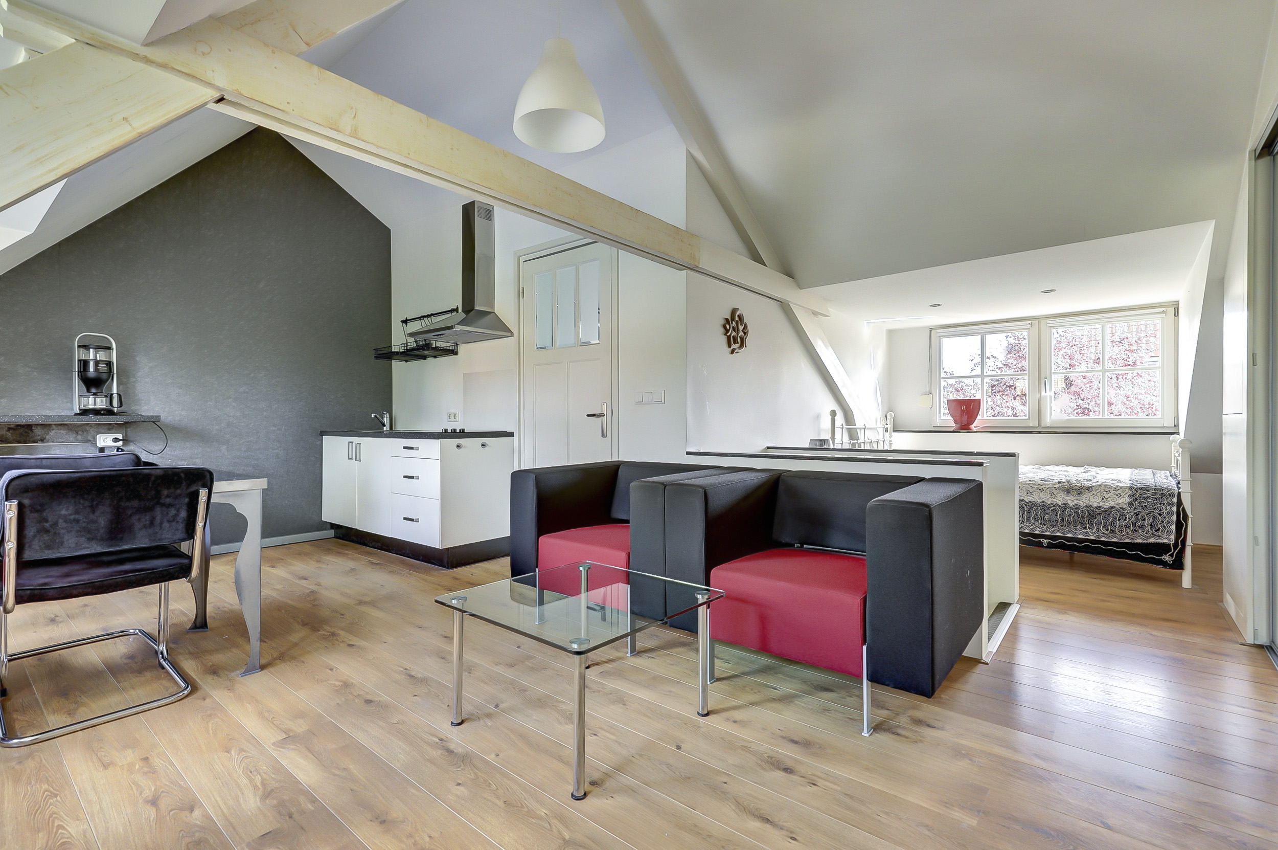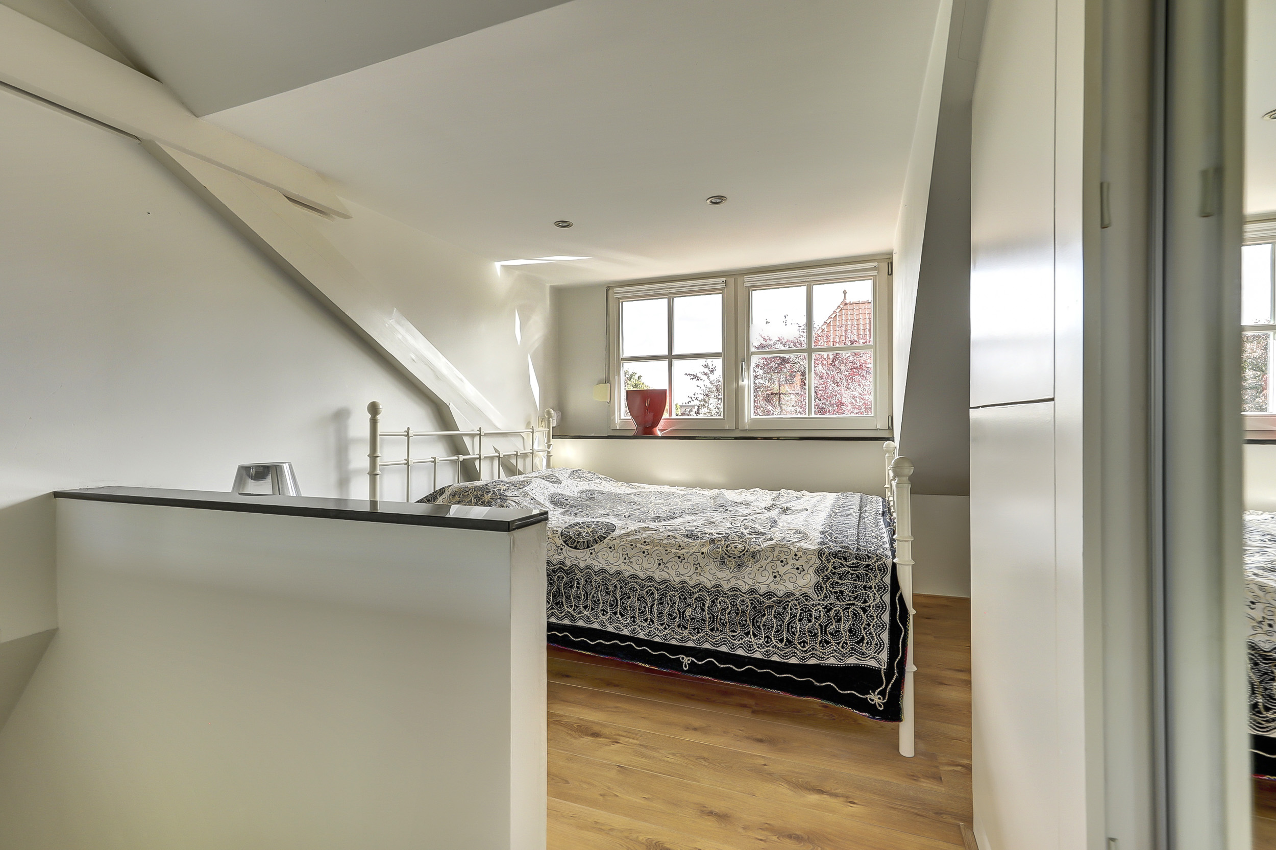 De studio maakt deel uit van een karakteristiek pand uit 1931, dat in 2025 is gesplitst in drie appartementsrechten. De bovenwoning is slim ingericht met dakkapellen aan zowel de voor- als achterzijde waardoor het daglicht rijkelijk binnenvalt en de ruimte verrassend licht aanvoelt.