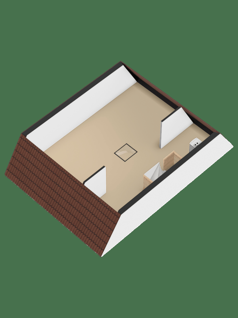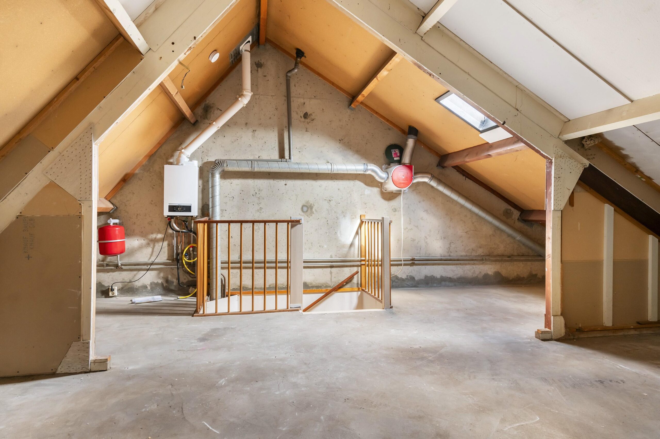 Via een vaste trap bereik je de tweede verdieping. Op dit moment is dit nog één grote open ruimte, maar door een wand te plaatsen is er op eenvoudige wijze een vierde (slaap)kamer te creëren. De cv-installatie (Nefit 2022) en mechanische ventilatie-unit hebben hier hun plekje en er is voldoende ruimte om een washoek in te richten.