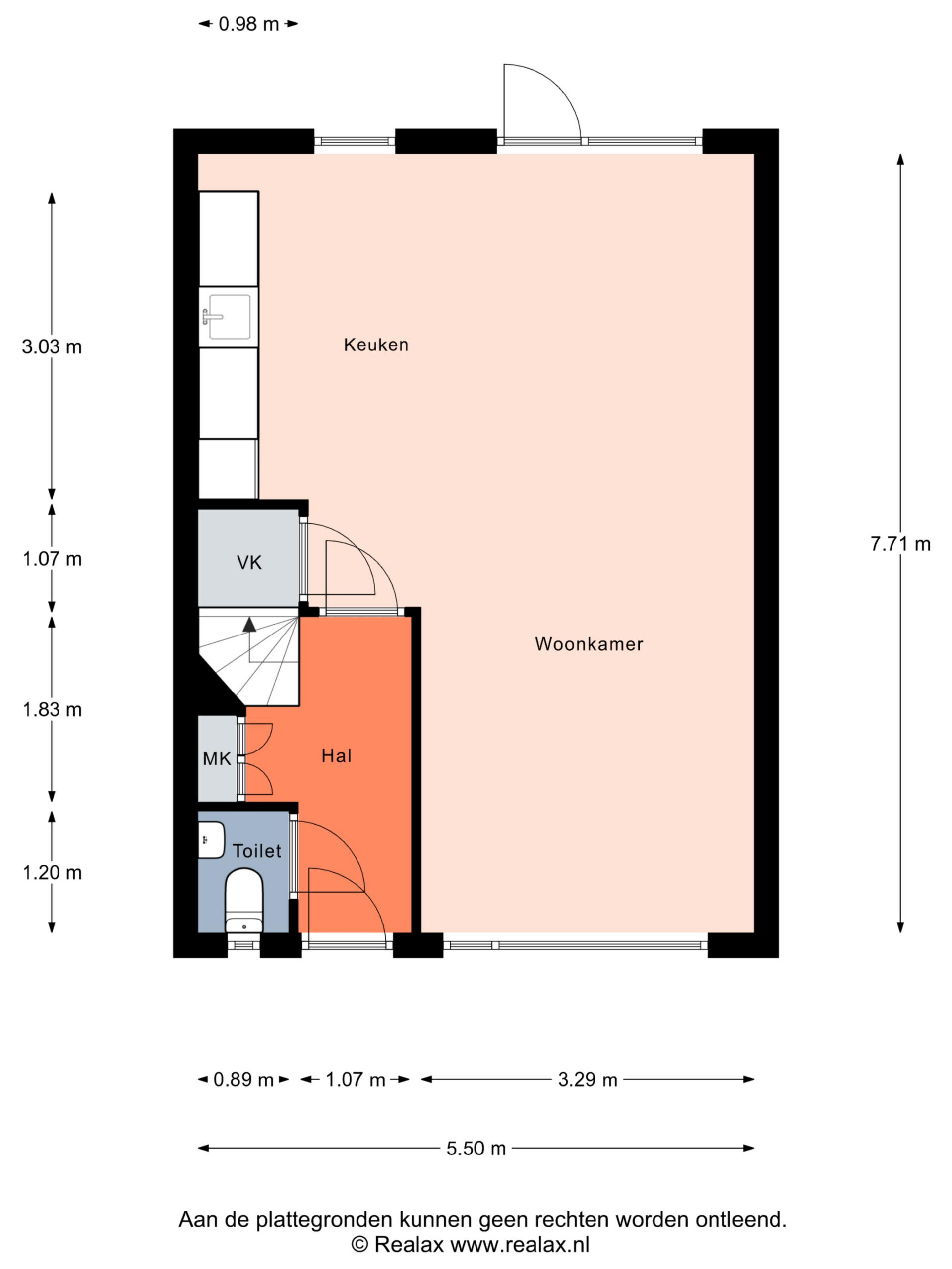 Bij binnenkomst in de hal vind je de meterkast, een toilet met fontein en de trap naar de eerste verdieping. Vanuit de hal loop je de lichte woonruimte in waar woonkamer en keuken al zijn samengevoegd. De eenvoudige keuken aan de achterzijde van de woning biedt de mogelijkheid om een compleet nieuwe, moderne keuken te plaatsen die volledig naar jouw wensen is. Vanuit deze ruimte krijg je direct toegang tot de achtertuin.