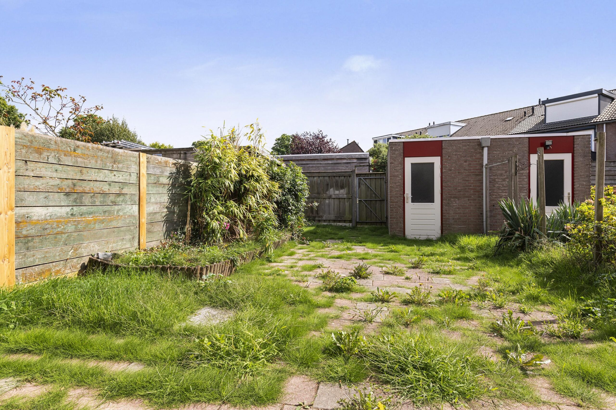 De royale achtertuin, gelegen op het zuidoosten, biedt volop ruimte voor spelende kinderen of om heerlijk in het zonnetje of in de schaduw te ontspannen. Verder beschikt de tuin over een praktische stenen berging voor fietsen en gereedschap, en is er een handige achterom voor extra toegankelijkheid.