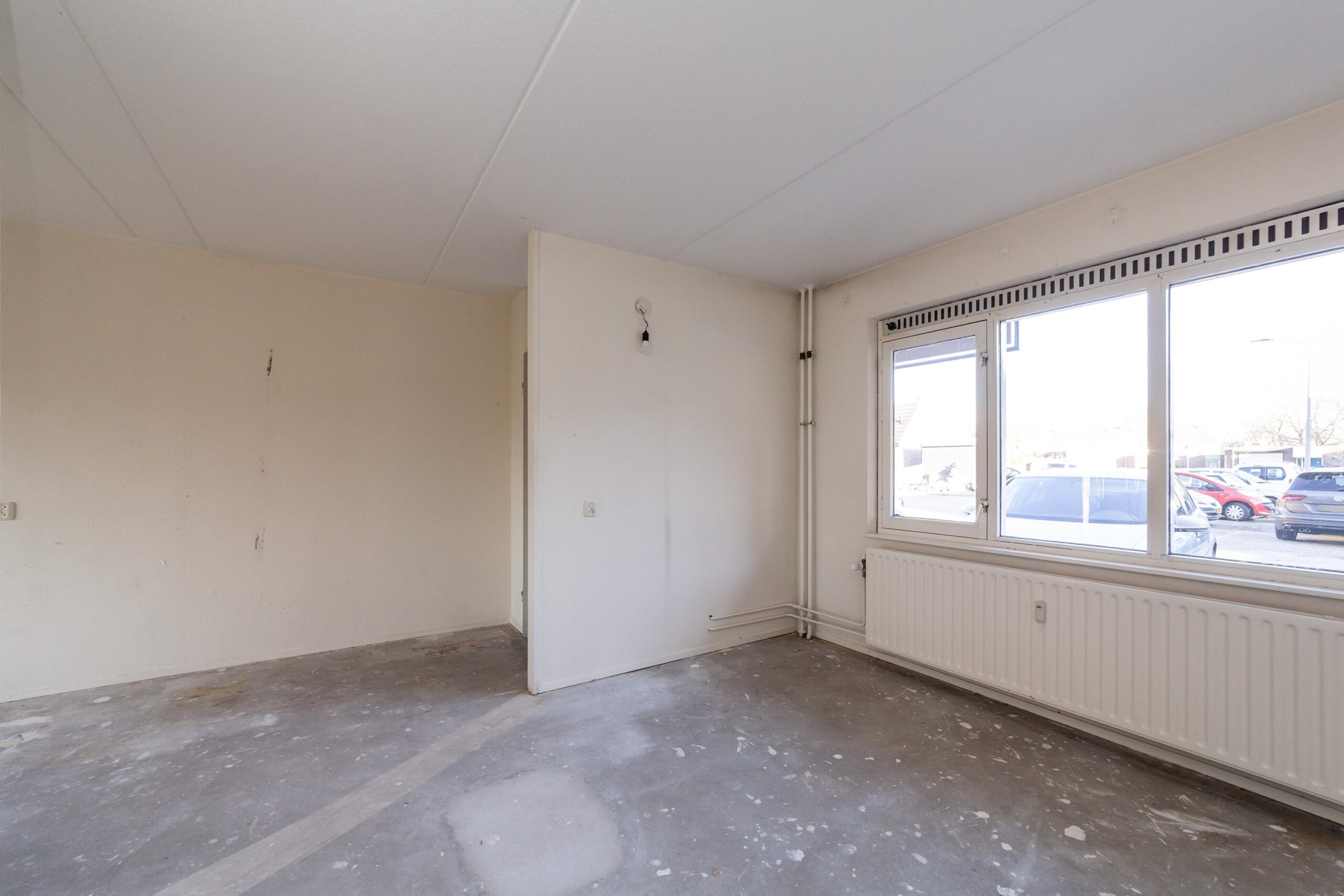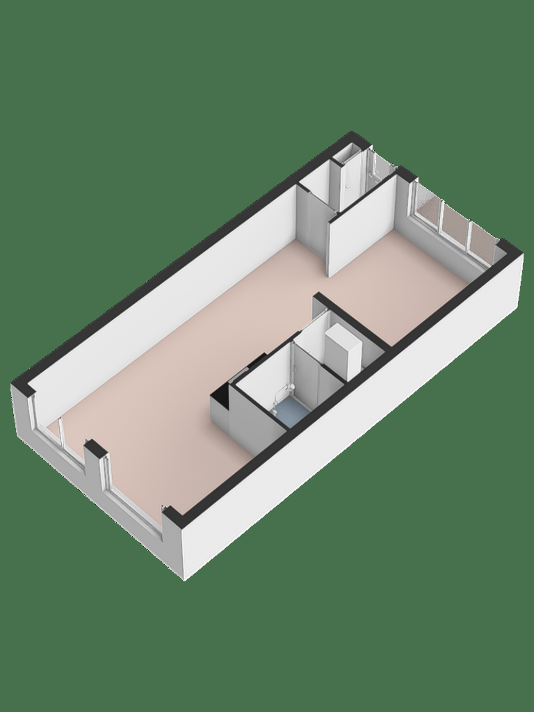 De (open) slaapkamer is gelegen aan de voorzijde van het appartement. Centraal in het midden is een keukenblok gesitueerd. . Via de woonruimte kom je in een kleine hal met een aansluiting voor de wasmachine (wasruimte) en toegang tot de eenvoudige badkamer met toilet, douche en wastafel.