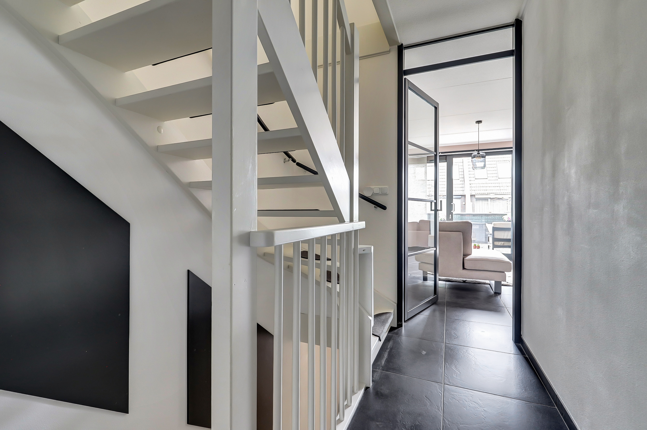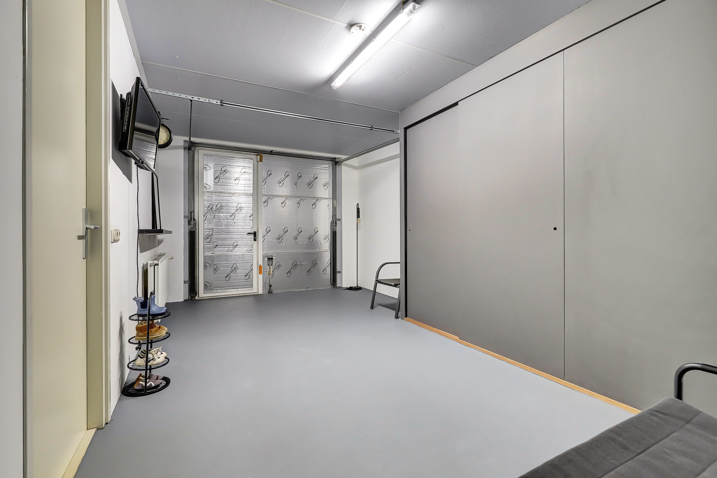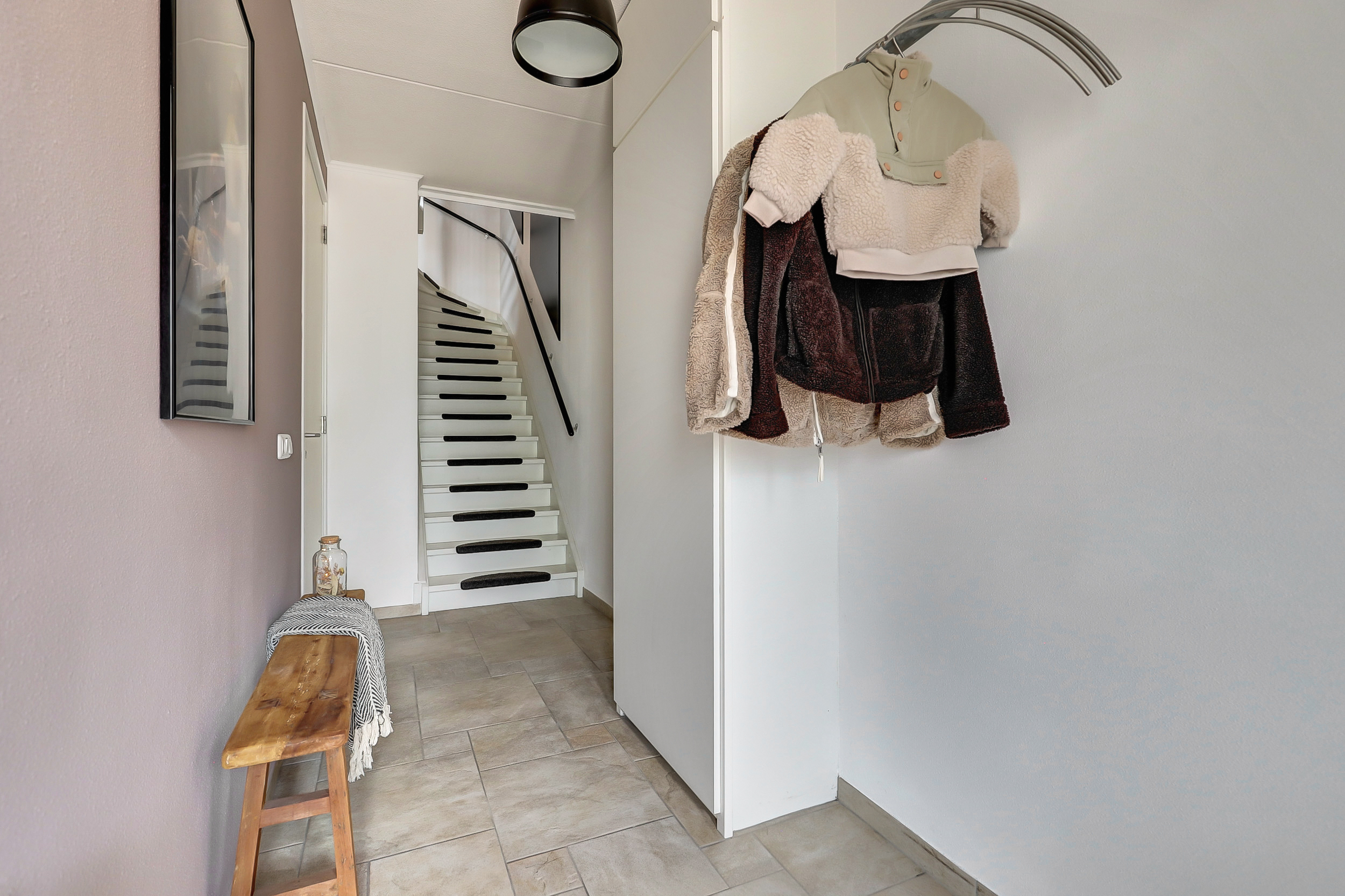 Je komt binnen in de hal met meterkast. Vanuit hier stap je door naar de garage of neem je de trap naar de woonverdieping. De garage bereik je ook via een buitendeur: ideaal voor fietsen en spullen die je snel wilt pakken.