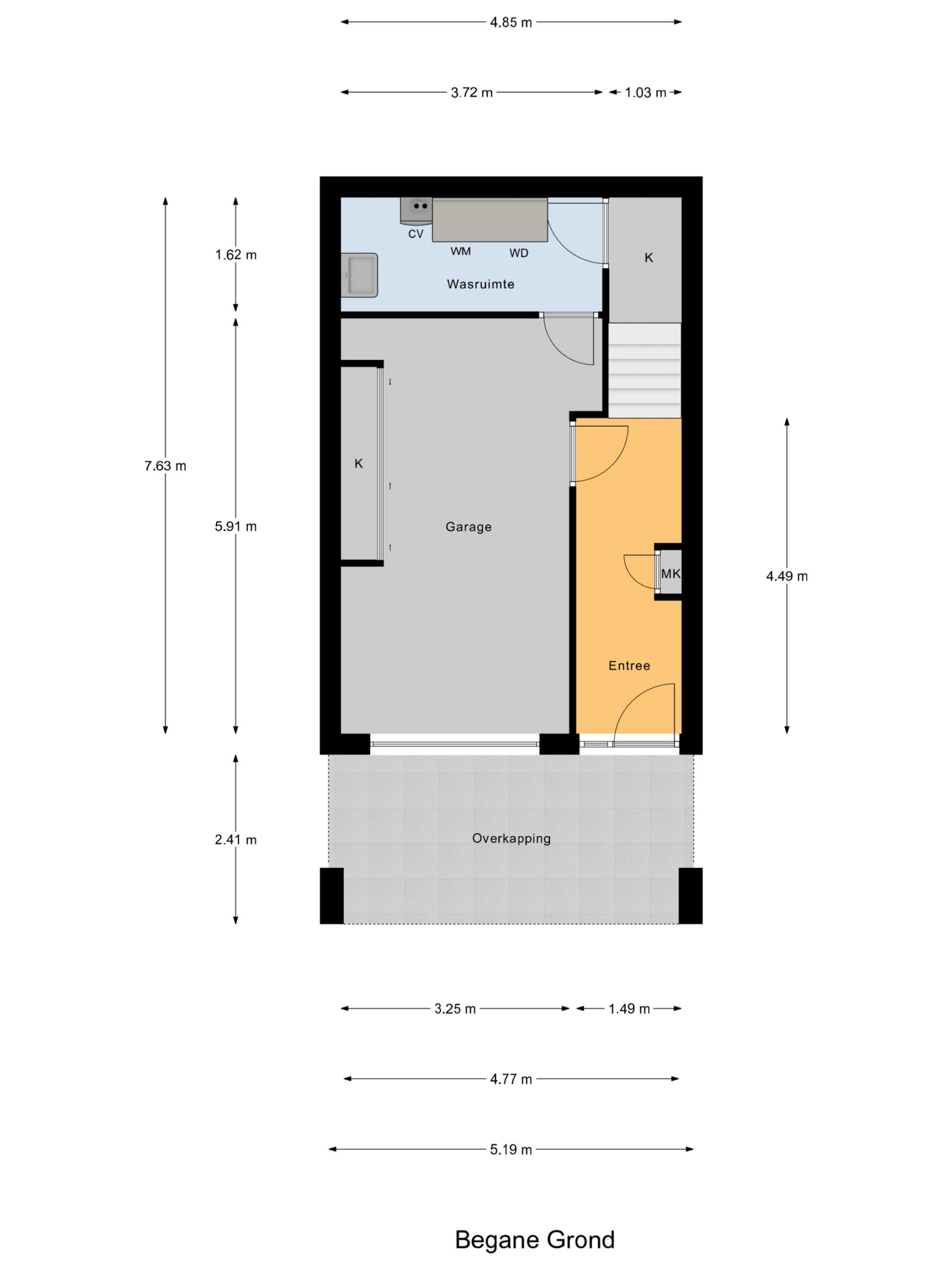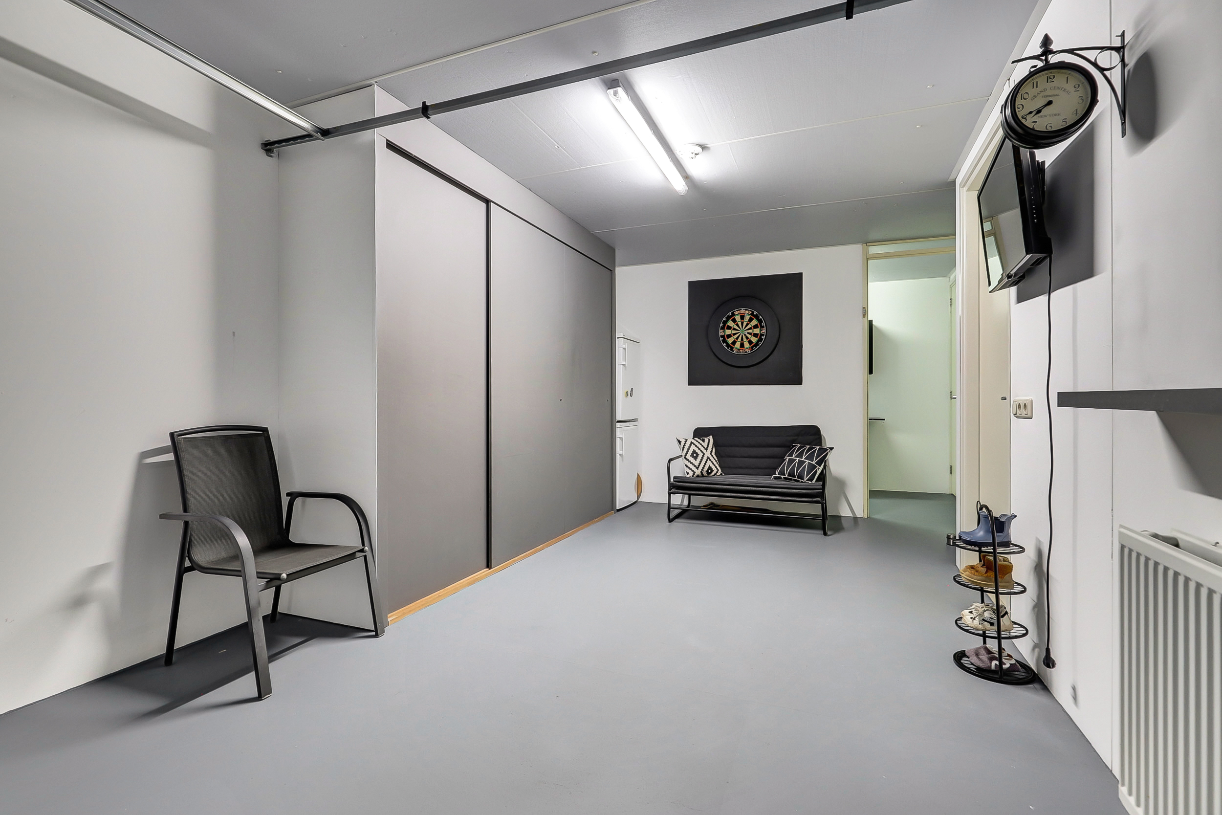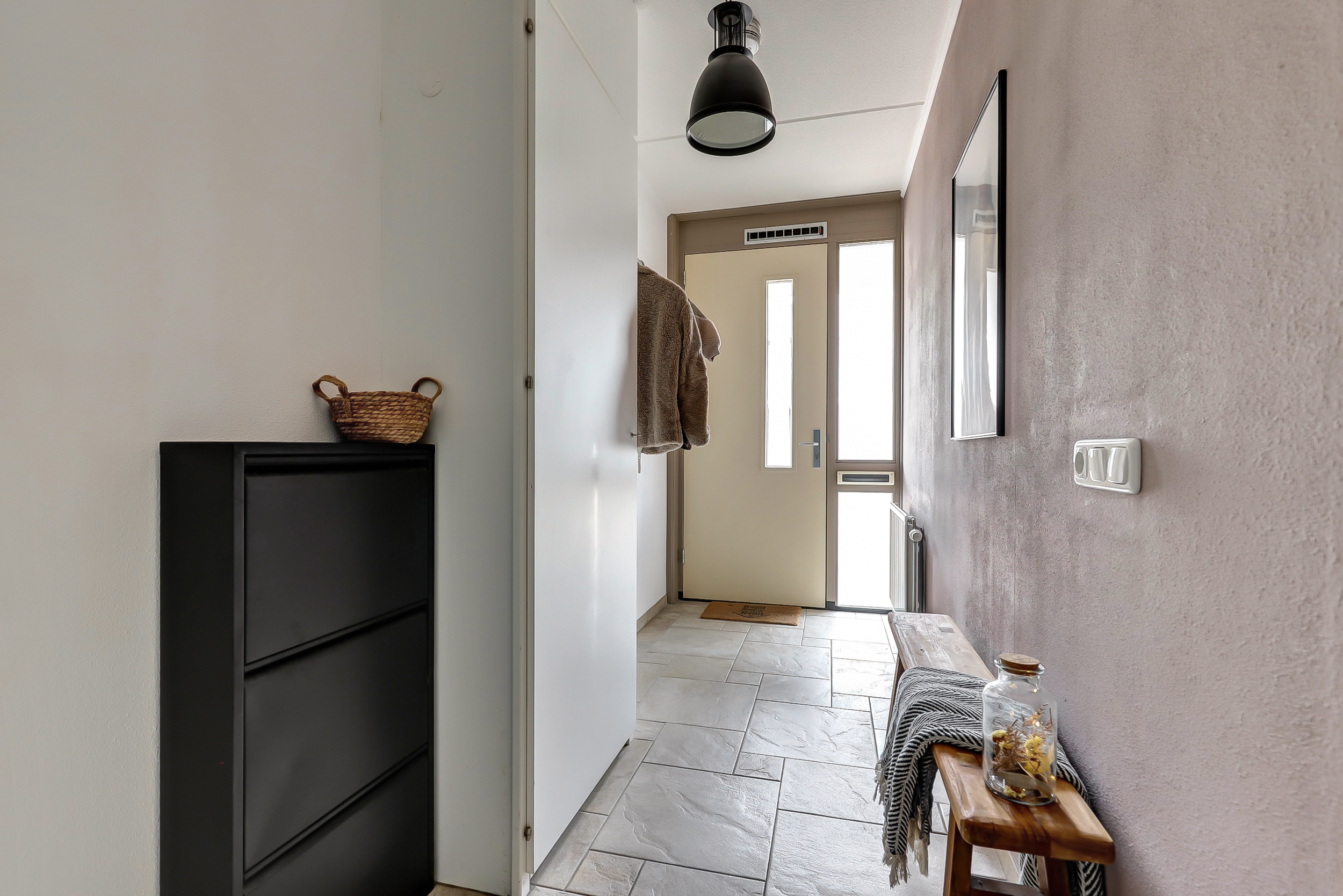 Je komt binnen in de hal met meterkast. Vanuit hier stap je door naar de garage of neem je de trap naar de woonverdieping. De garage bereik je ook via een buitendeur: ideaal voor fietsen en spullen die je snel wilt pakken.