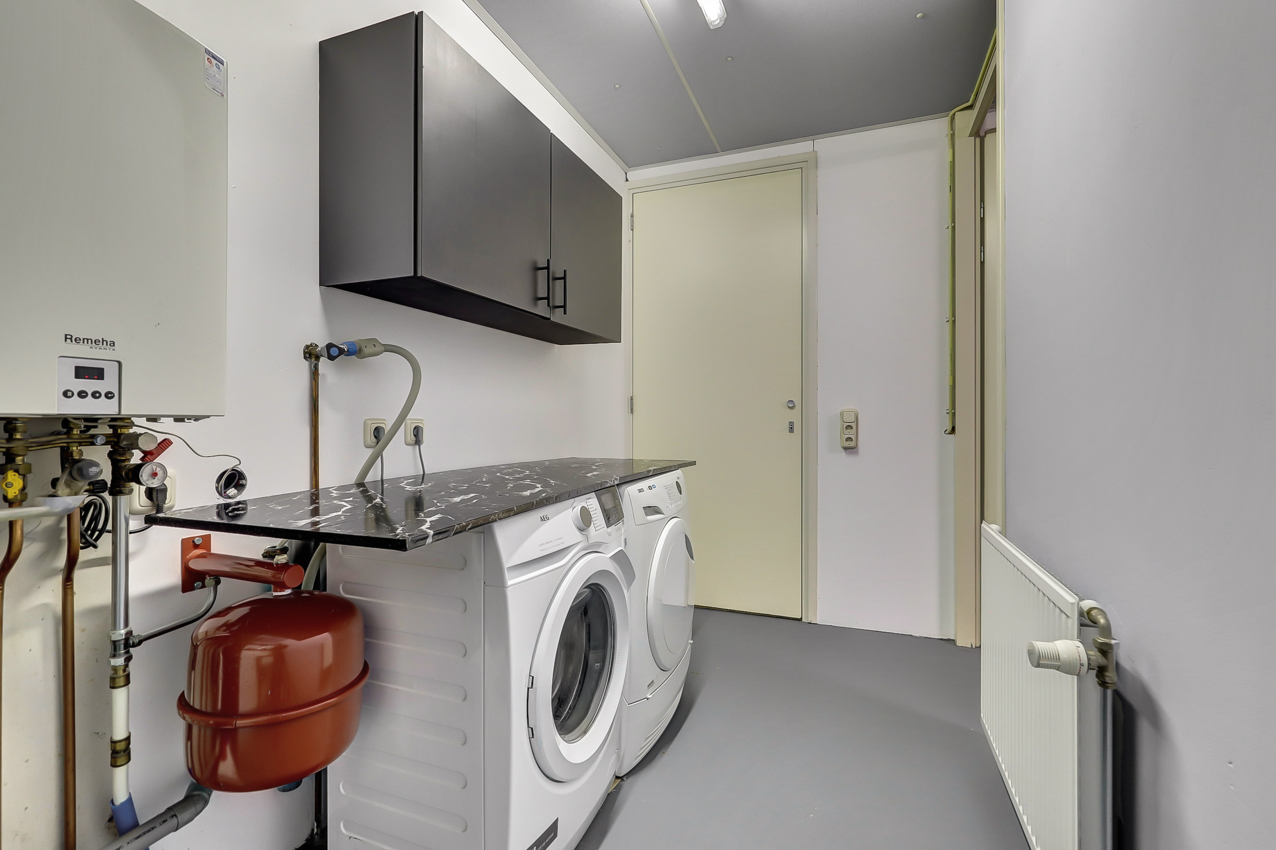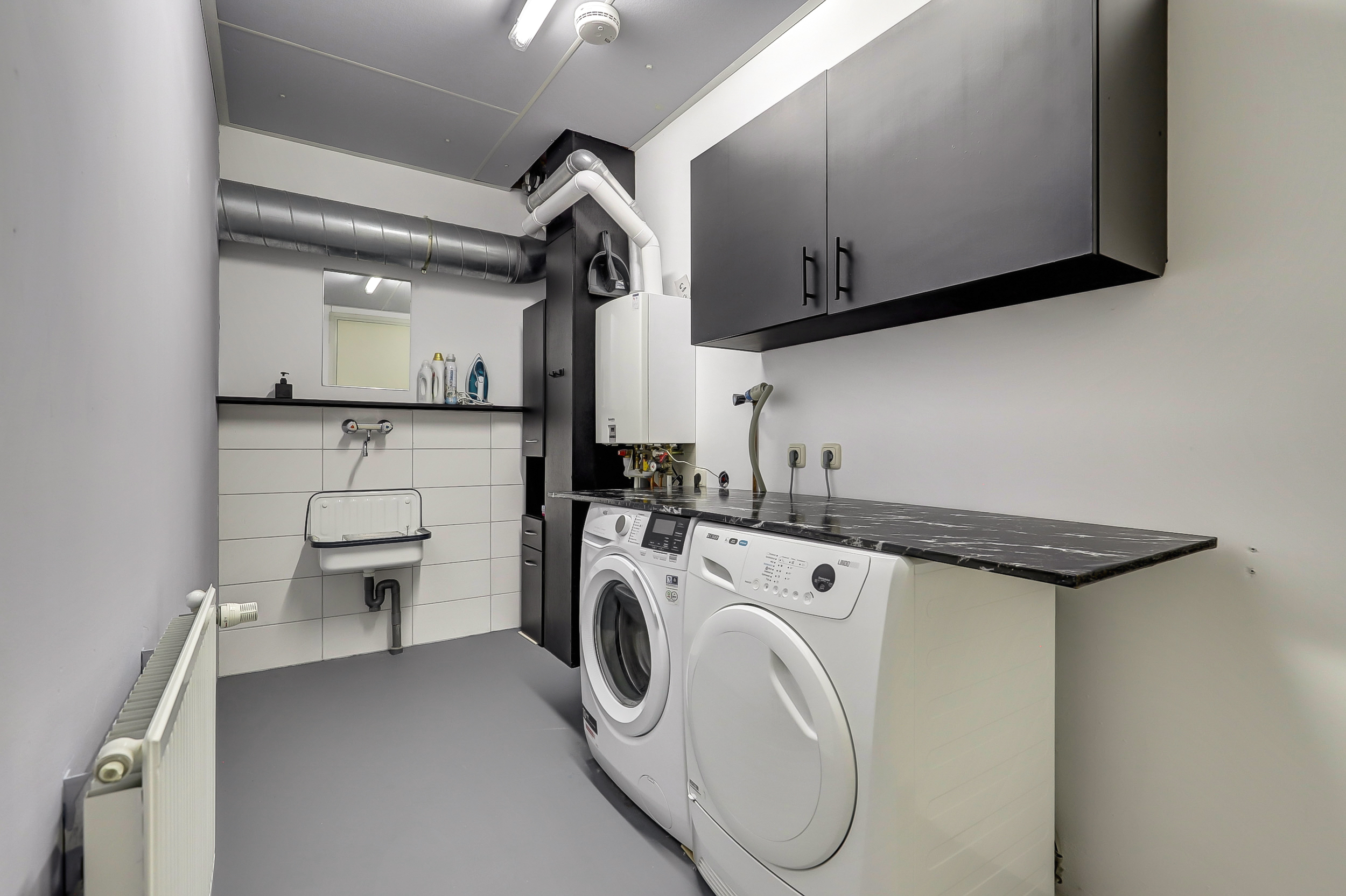 Aansluitend ligt de wasruimte met de cv-opstelling (2008), aansluitingen voor wasmachine en droger én extra kastruimte.