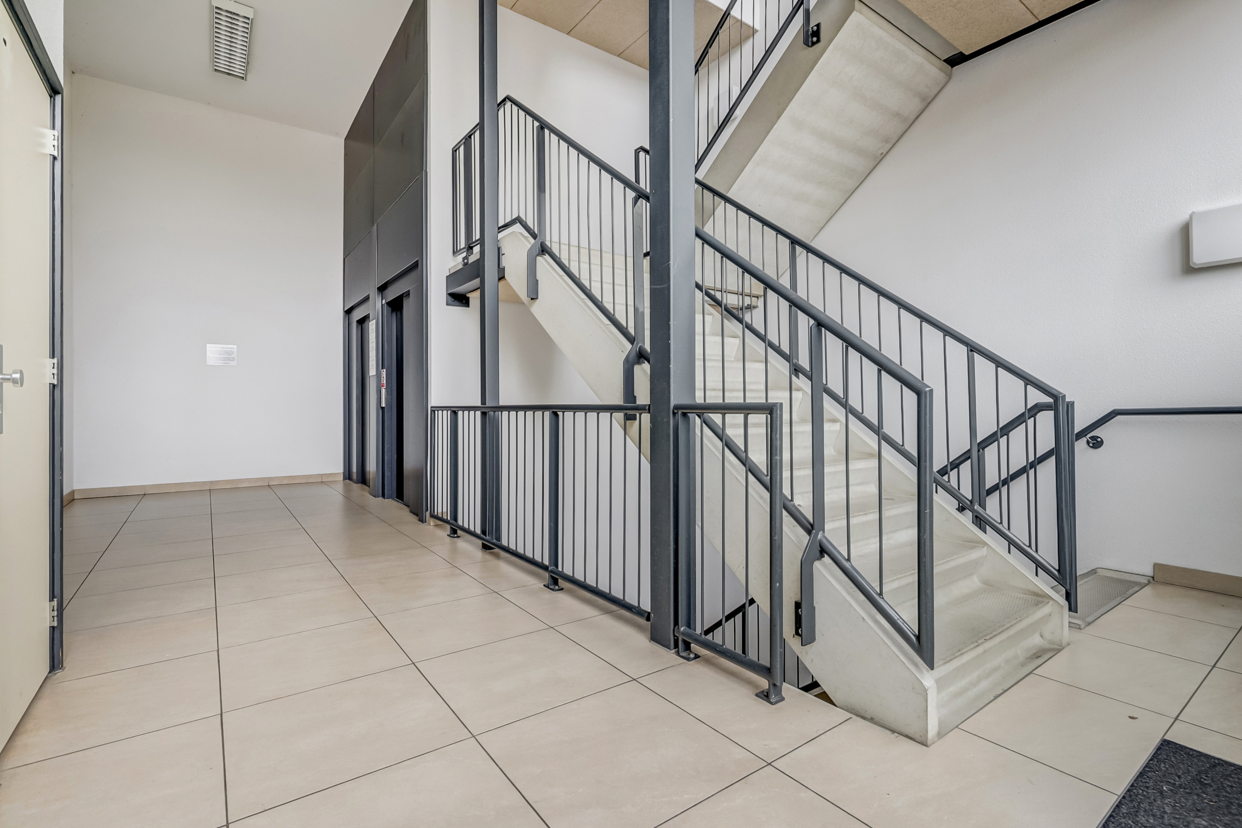 Het bellentableau en de brievenbussen bevinden zich aan de buitenzijde van de elektrische toegangsdeur, zodat alleen bewoners het complex kunnen betreden. In de centrale hal is het mogelijk om de trap of een van de 2 liften te kiezen.