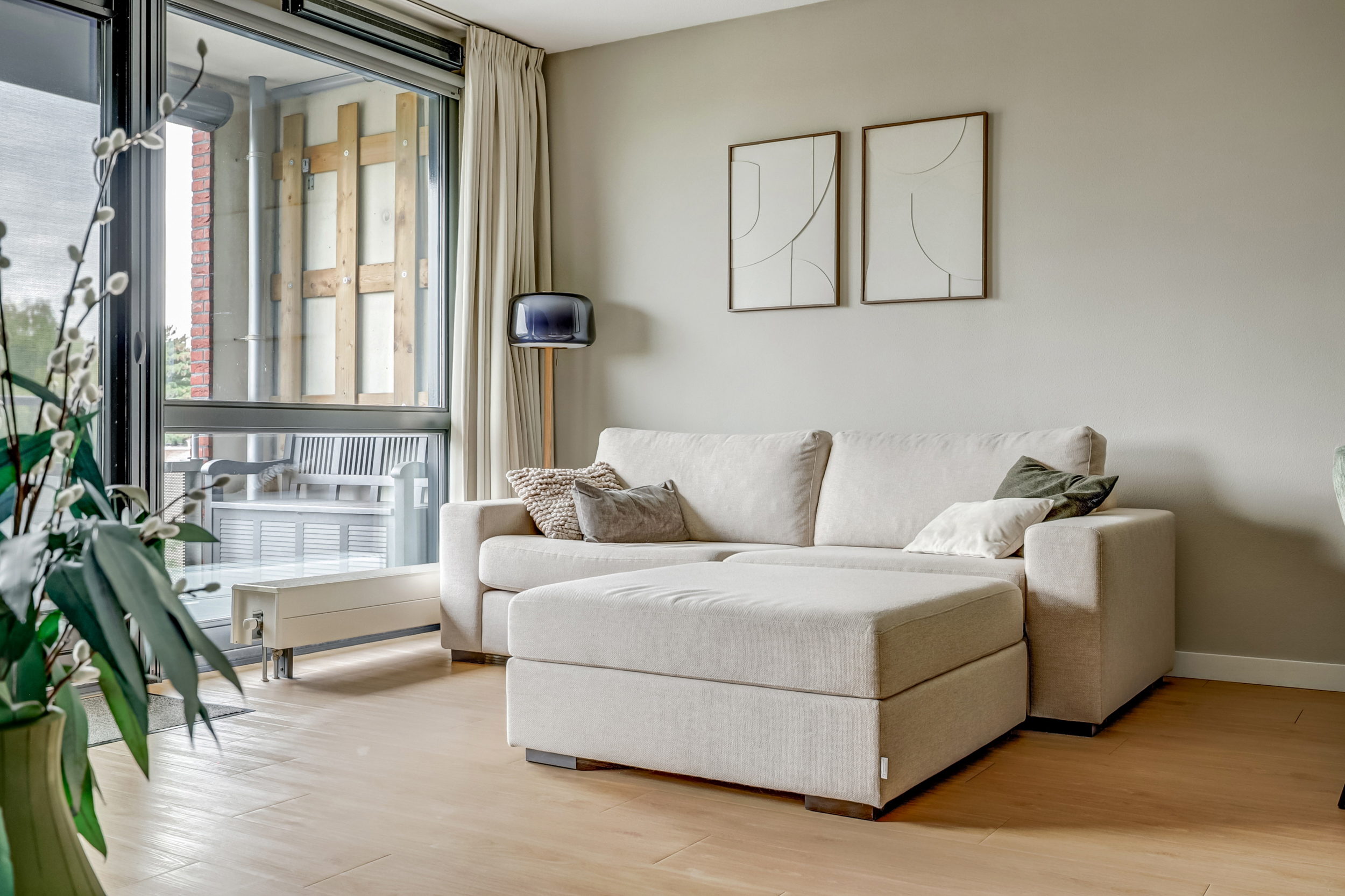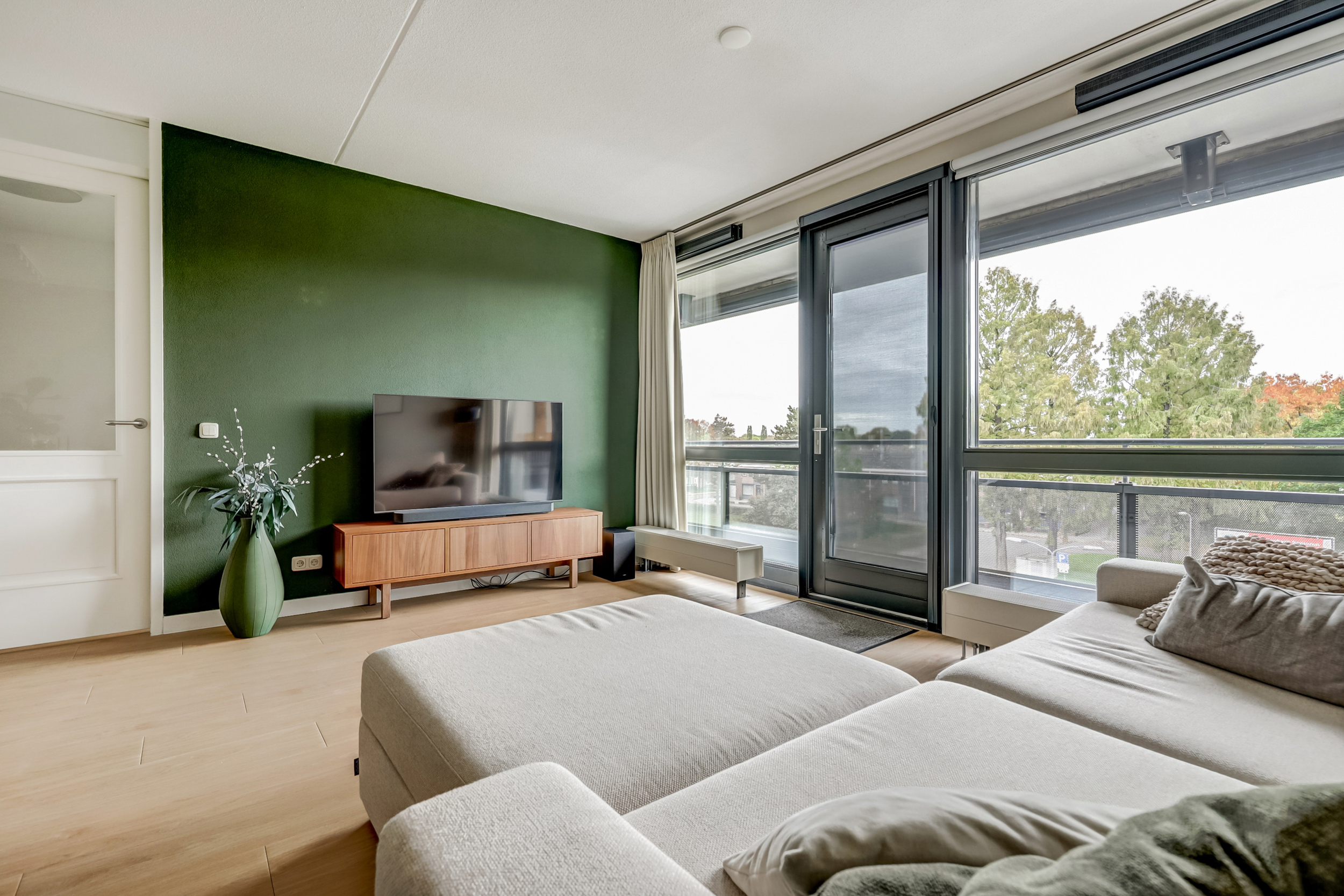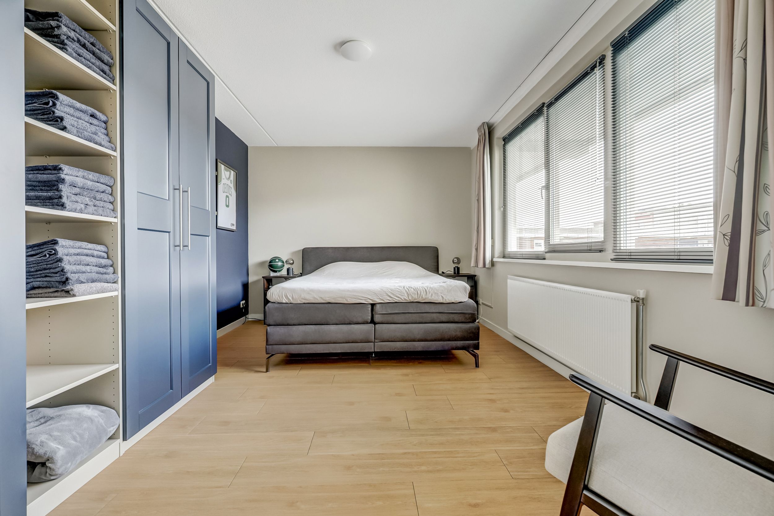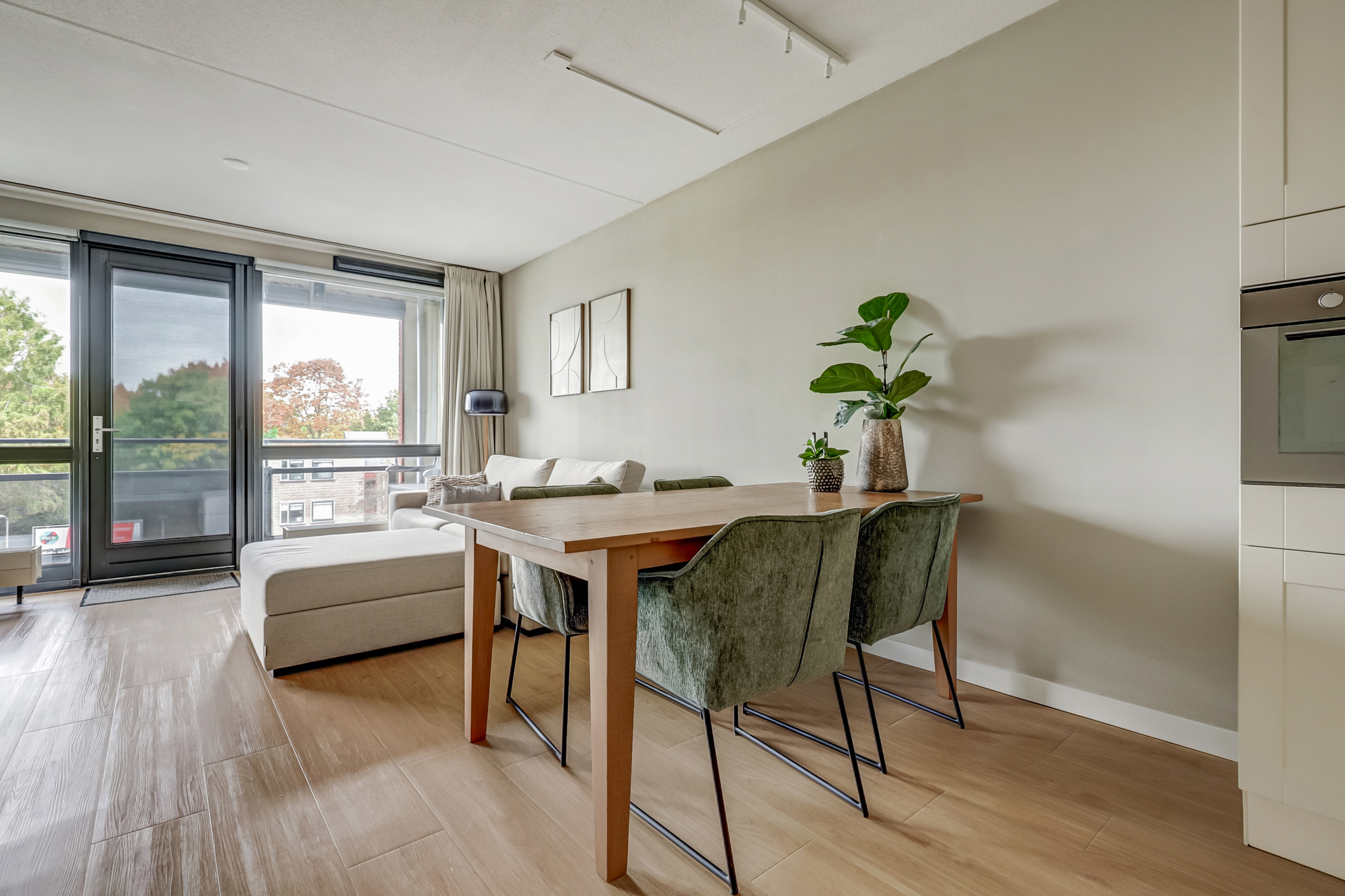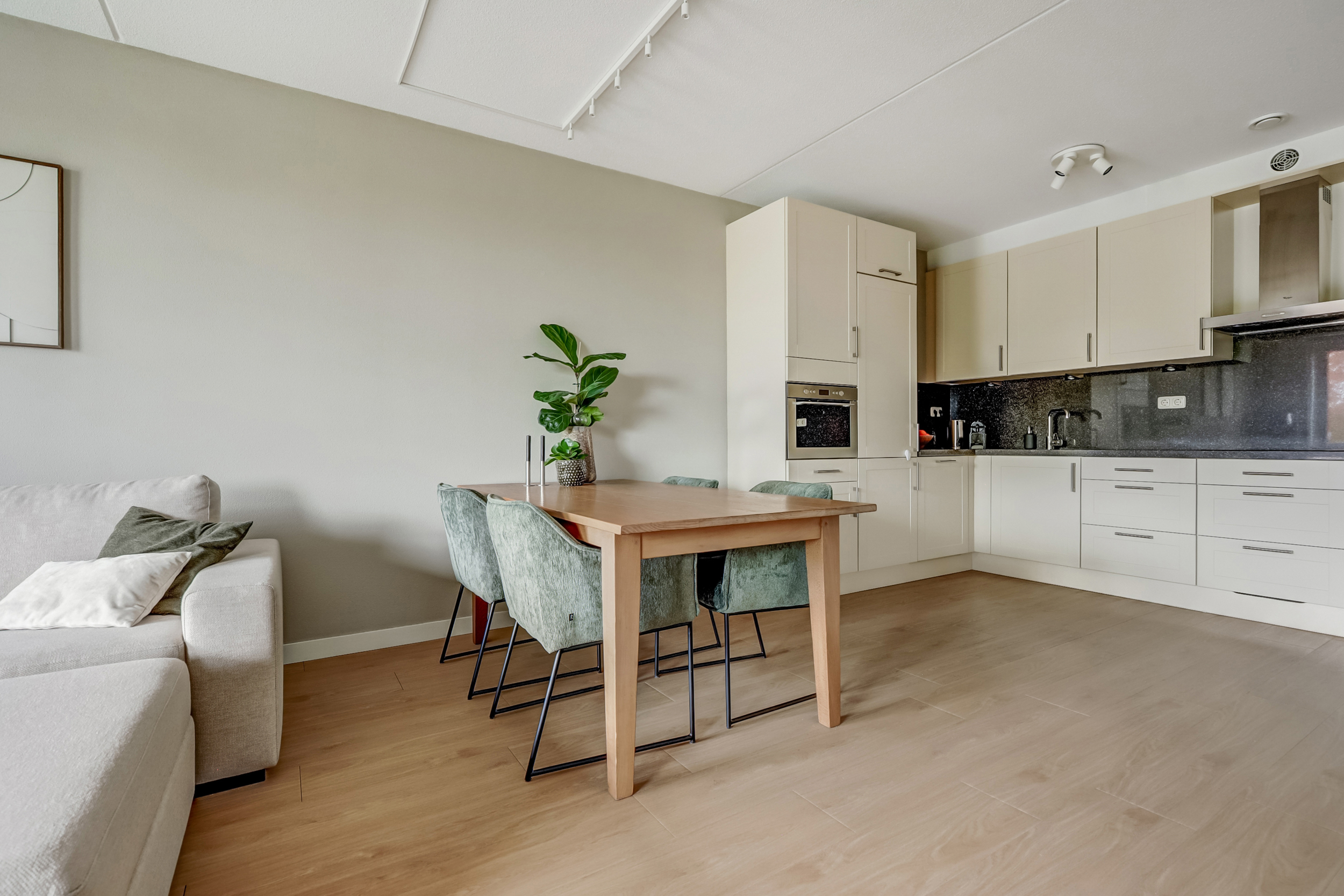 Entree/hal met meterkast, welke toegang geeft tot alle ruimten in het appartement. Lichte woonkamer met deur naar het ruime balkon, elektrische screens en zonnescherm. De open keuken heeft een L-vormige keukenopstelling en is van alle gemakken voorzien, o.a. veel kastruimte/lades en diverse inbouwapparatuur, o.a. vaatwasser, combioven, 4-pits inductiekookplaat, koelkast en 3-vriesladen. Vanuit de keuken is de praktische bijkeuken/berging met witgoedaansluitingen te bereiken. 2 slaapkamers welke zijn voorzien van draaikiepramen. De royale master bedroom ligt aan de voorzijde en beschikt over grote garderobekast en een elektrisch screen. De tweede slaapkamer ligt aan de achterzijde van het appartement en heeft zicht op het balkon en is voorzien van elektrische screen. De nette en moderne badkamer is in 2024 vernieuwd heeft een grote inloopdouche met hand- en regendouche en glazenwand, wastafelmeubel, spiegel, verwarming en is volledig betegeld. De separate toiletruimte is ook in 2024 vernieuwd en is voorzien van wandcloset, fontein en in lichte kleur betegeld. Praktische bergkast waarin de cv-ketel (Intergas, 2011) en de mechanische box (2019) zijn opgesteld. Het hele appartement is voorzien van een pvc vloerafwerking zonder dorpels, spuitwerk plafondafwerking en spachthelputz wandafwerking.