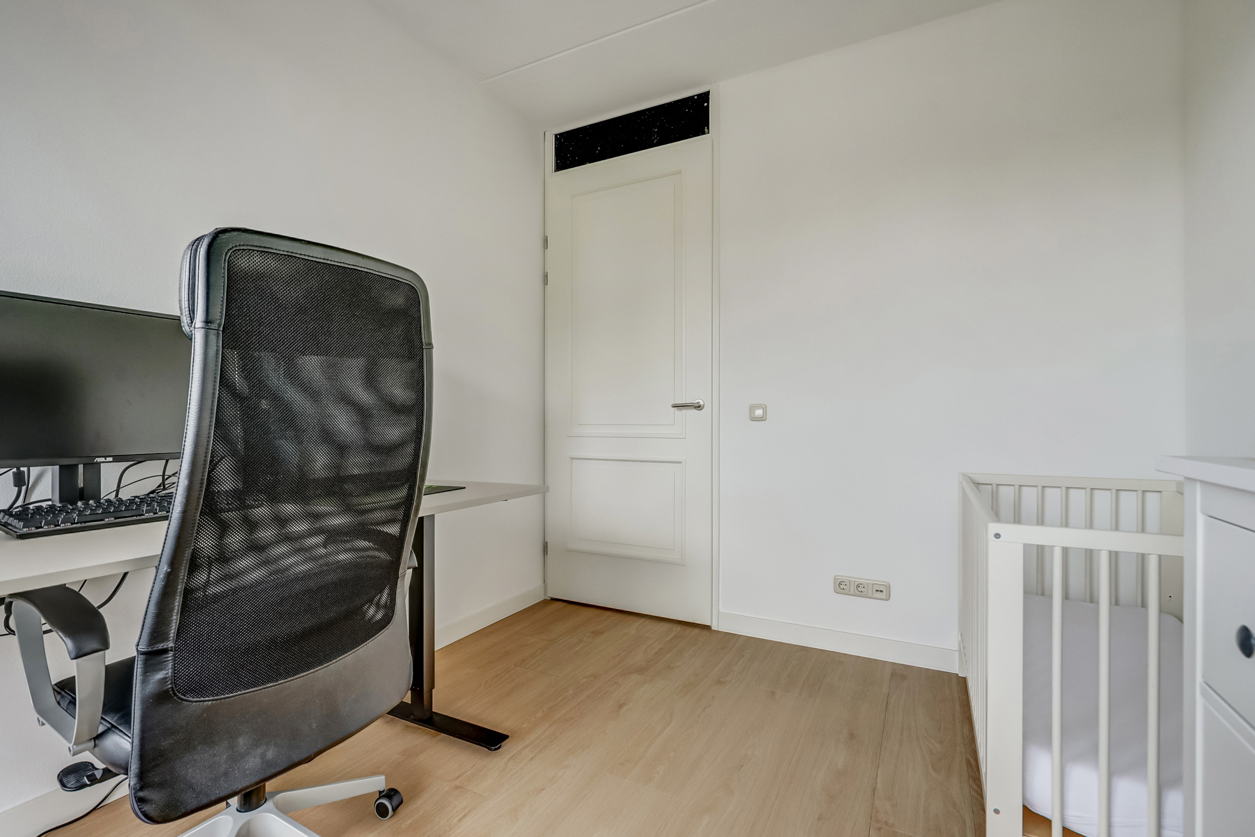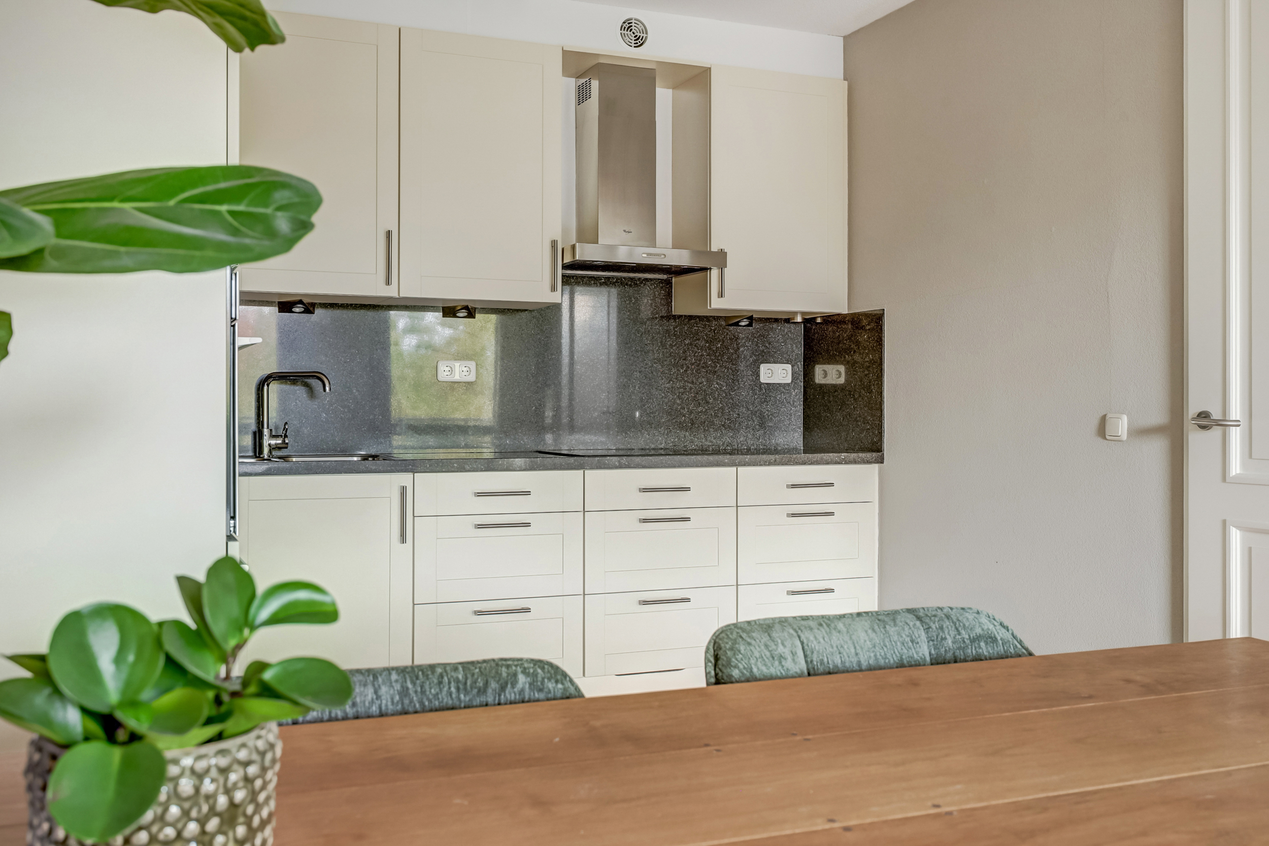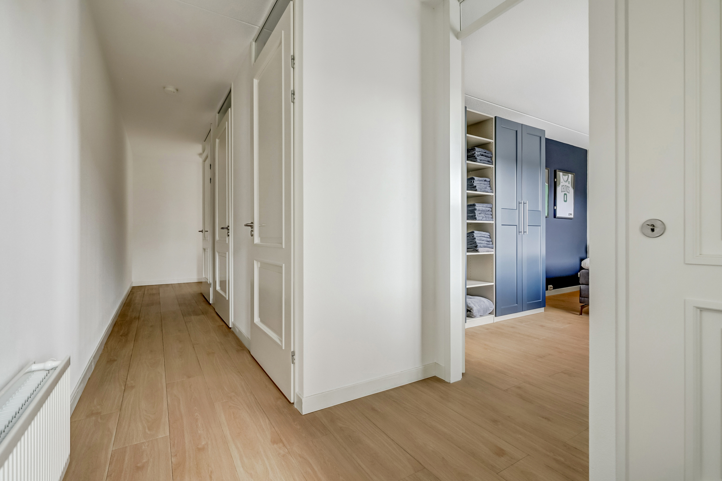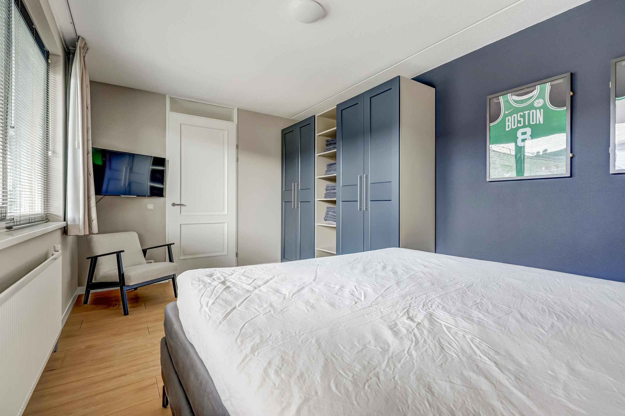 Entree/hal met meterkast, welke toegang geeft tot alle ruimten in het appartement. Lichte woonkamer met deur naar het ruime balkon, elektrische screens en zonnescherm. De open keuken heeft een L-vormige keukenopstelling en is van alle gemakken voorzien, o.a. veel kastruimte/lades en diverse inbouwapparatuur, o.a. vaatwasser, combioven, 4-pits inductiekookplaat, koelkast en 3-vriesladen. Vanuit de keuken is de praktische bijkeuken/berging met witgoedaansluitingen te bereiken. 2 slaapkamers welke zijn voorzien van draaikiepramen. De royale master bedroom ligt aan de voorzijde en beschikt over grote garderobekast en een elektrisch screen. De tweede slaapkamer ligt aan de achterzijde van het appartement en heeft zicht op het balkon en is voorzien van elektrische screen. De nette en moderne badkamer is in 2024 vernieuwd heeft een grote inloopdouche met hand- en regendouche en glazenwand, wastafelmeubel, spiegel, verwarming en is volledig betegeld. De separate toiletruimte is ook in 2024 vernieuwd en is voorzien van wandcloset, fontein en in lichte kleur betegeld. Praktische bergkast waarin de cv-ketel (Intergas, 2011) en de mechanische box (2019) zijn opgesteld. Het hele appartement is voorzien van een pvc vloerafwerking zonder dorpels, spuitwerk plafondafwerking en spachthelputz wandafwerking.