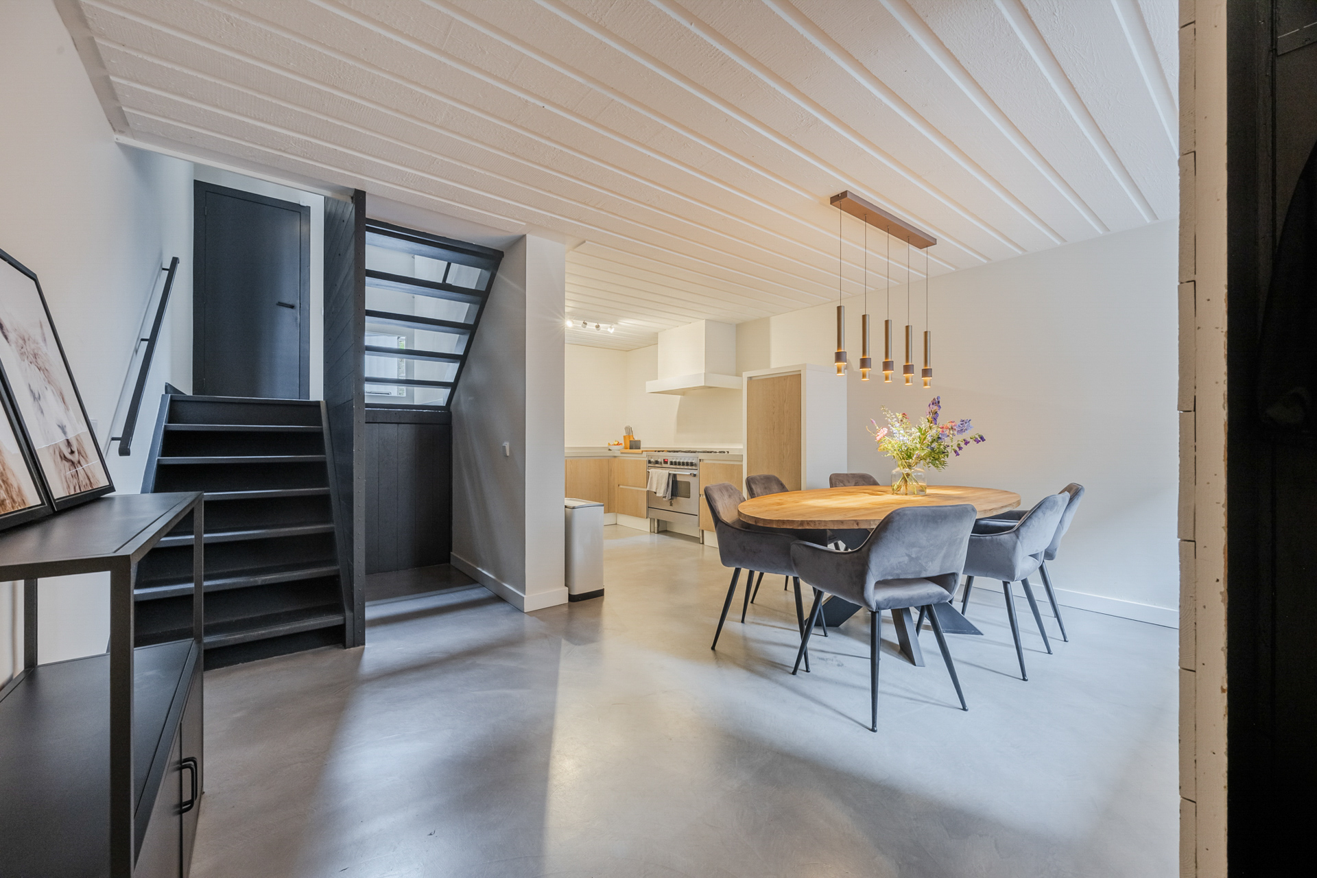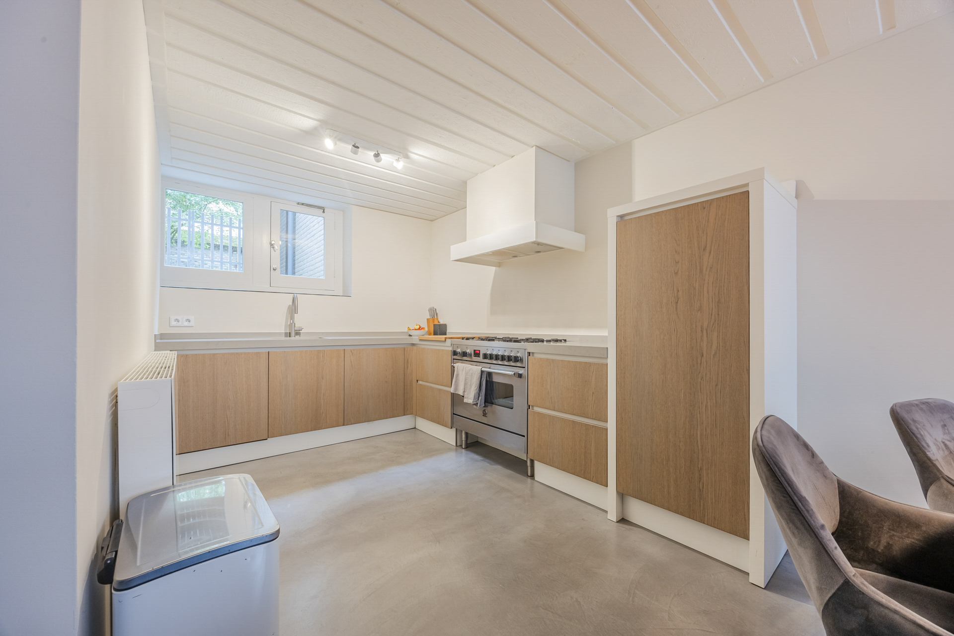 Souterrain: entree, woonkeuken (ca. 30 m2) voorzien van alle wenselijke inbouwapparatuur, een gietvloer en provisieruimte.