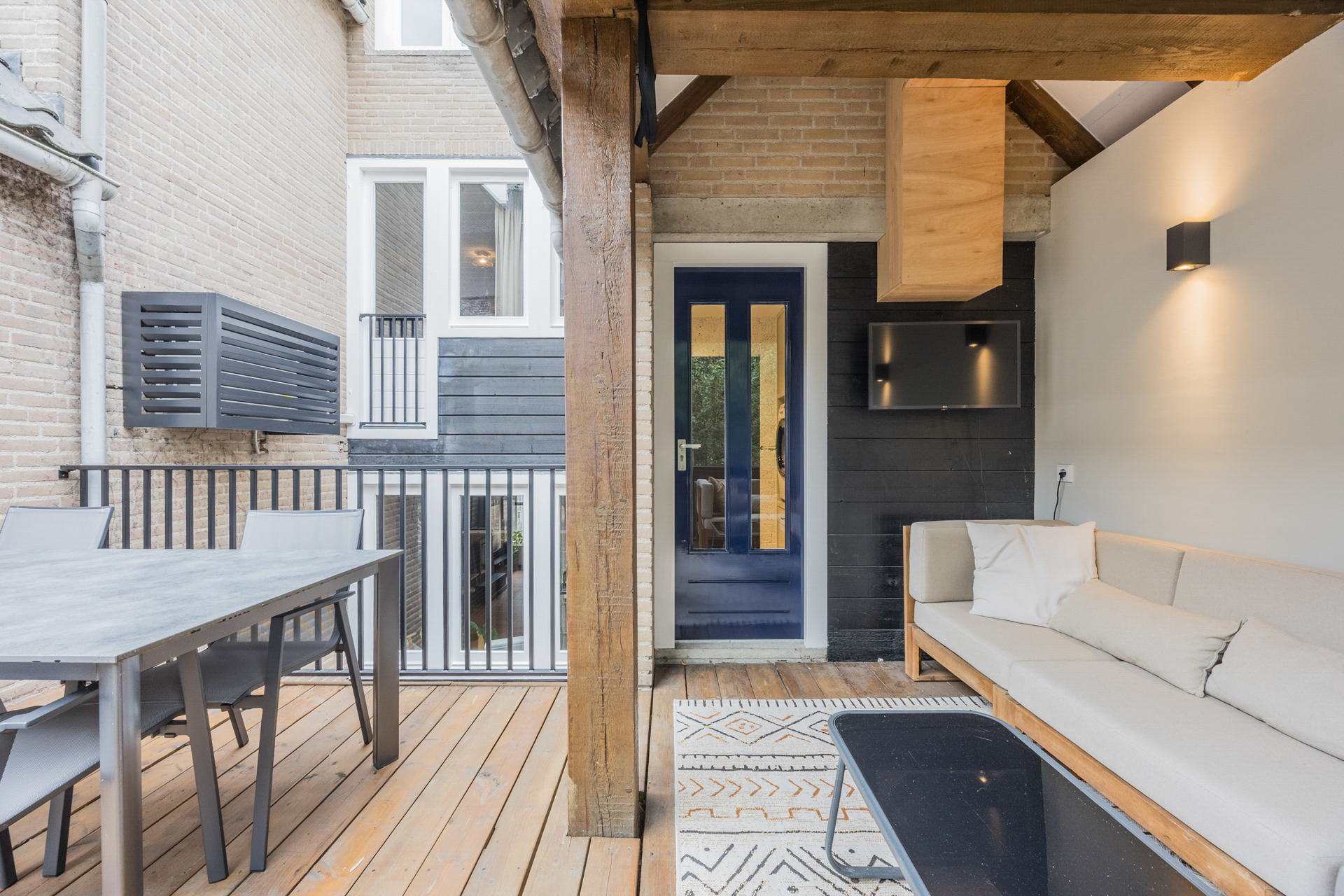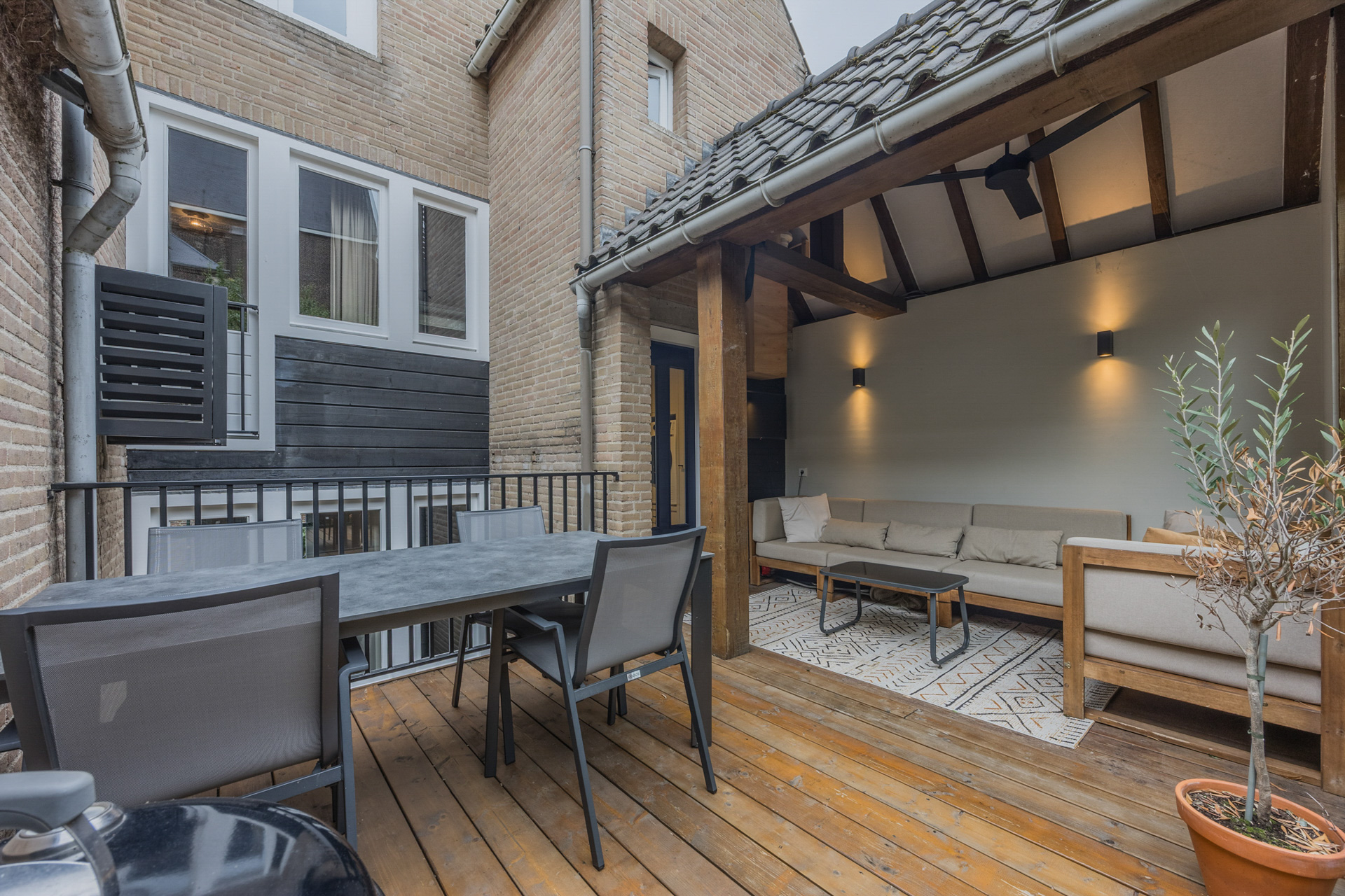 De besloten binnenplaats met terras vormt een oase van rust en privacy midden in de stad; een plek waar je de dag ontspannen afsluit met bijvoorbeeld een goed glas wijn. De winkels, restaurants en de jachthaven aan de Maas liggen hier letterlijk om de hoek.
