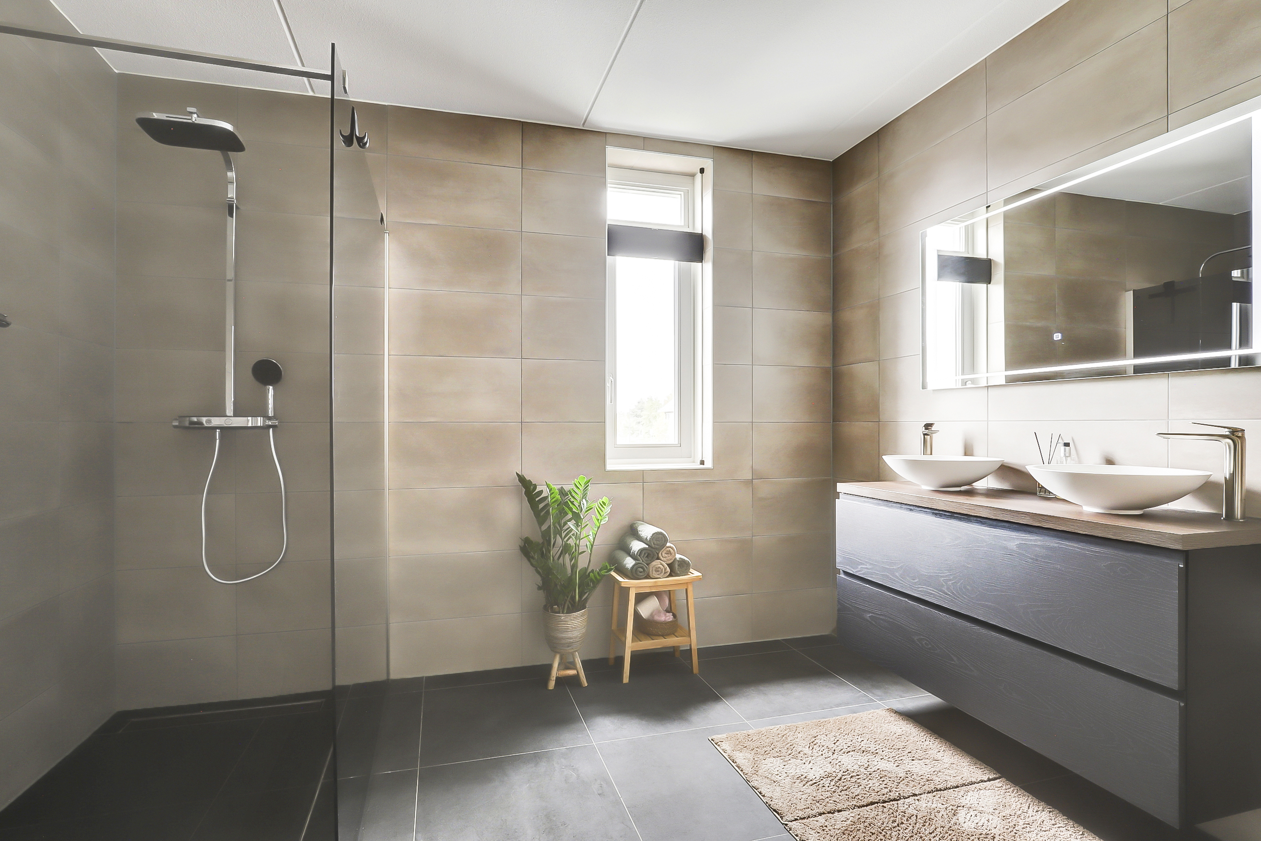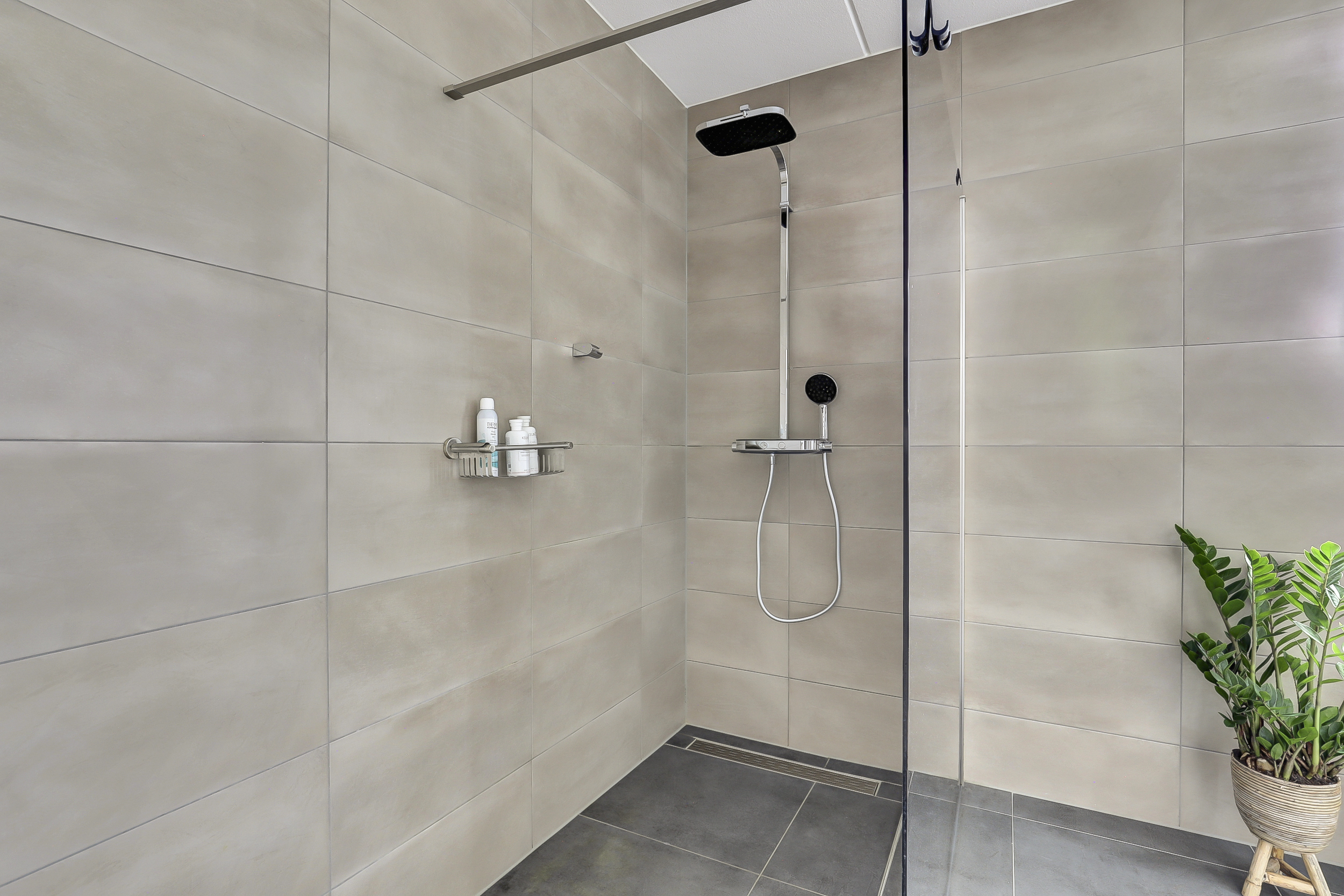 Ruime overloop met een apart toilet. Drie royale slaapkamers en een moderne badkamer. De ouderslaapkamer is voorzien van een inloopkast. De badkamer is fraai uitgevoerd met een inloopdouche en een stijlvol wastafelmeubel. Dankzij de vloerverwarming én vloerkoeling is het hier in elk seizoen comfortabel.