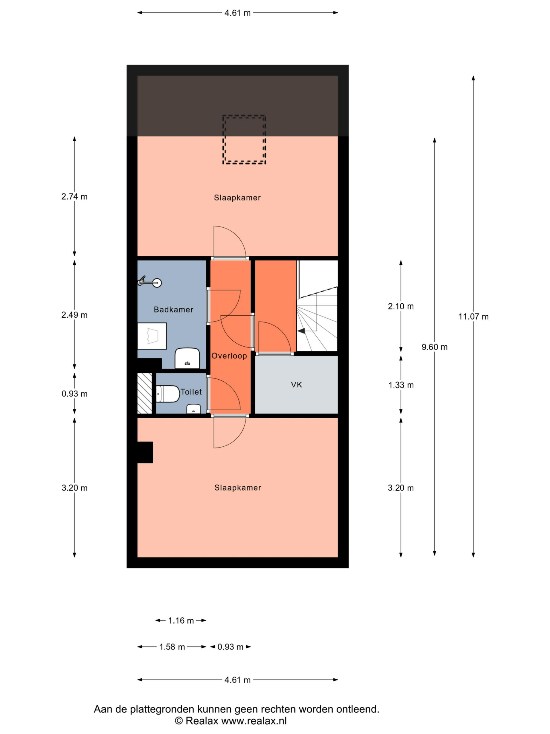 Indeling 2e woonlaag van het appartement gelegen op 3e verdieping: