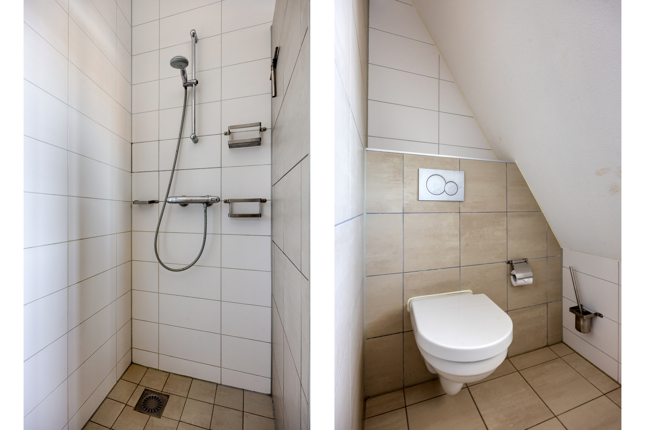 • Badkamer met douche, wastafel en toilet