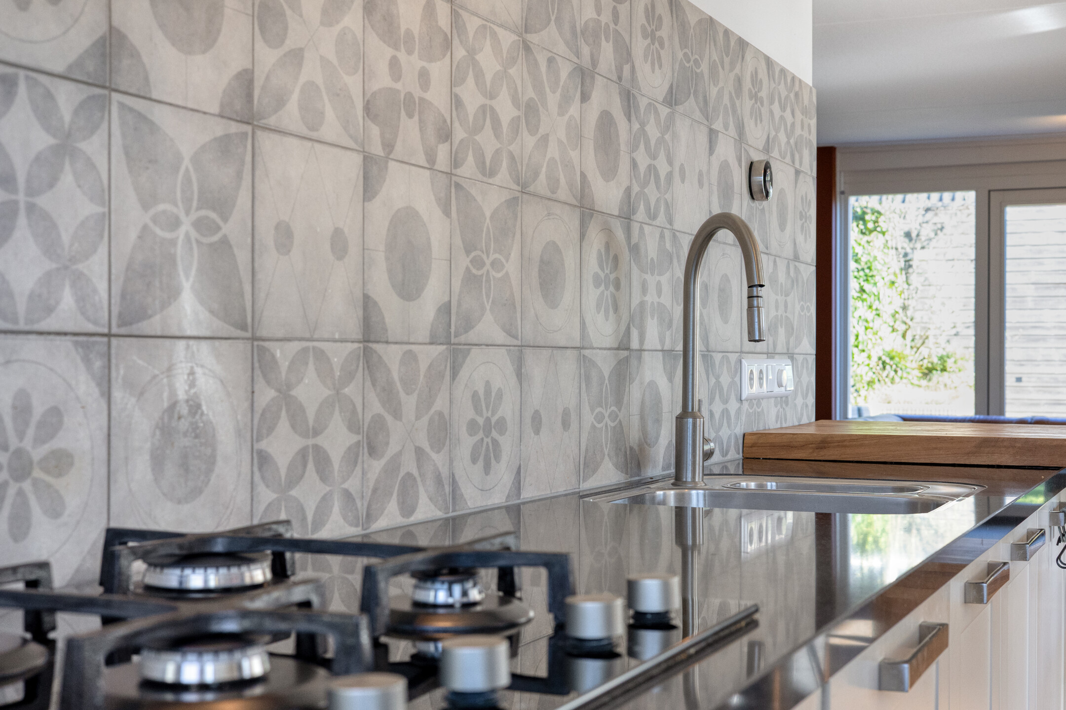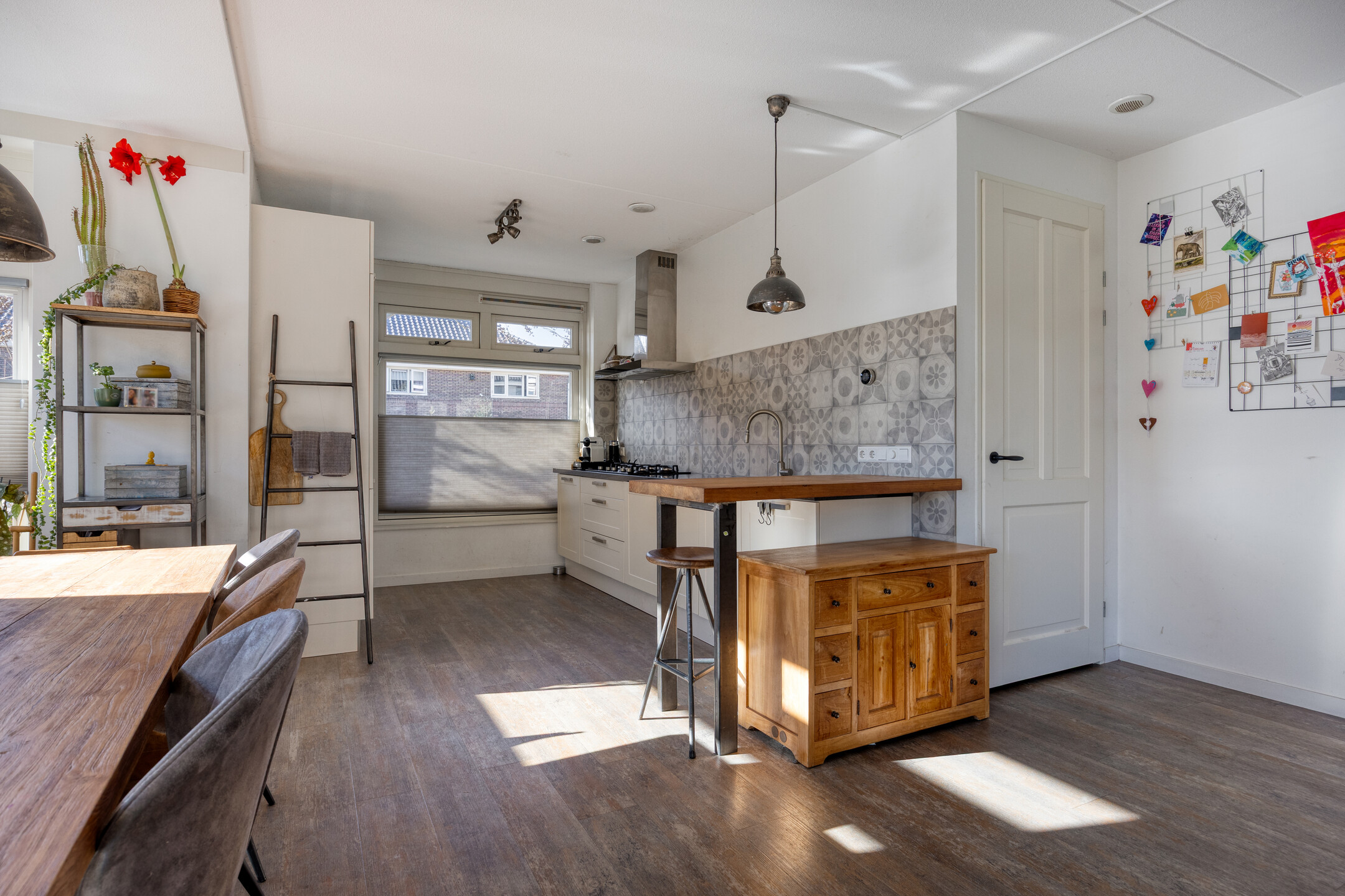 De moderne keuken is compleet uitgevoerd en voorzien van alle gemakken. Koken, tafelen en samenzijn lopen hier vanzelf in elkaar over.